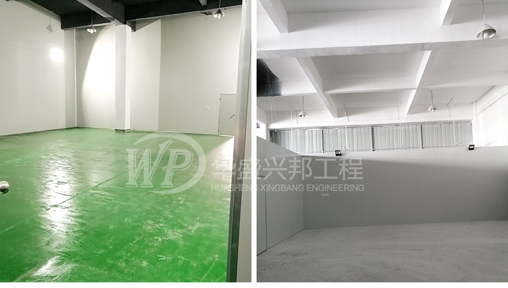 華盛興邦承接四川鑫億和食品有限公司全部生產車間設計、廠房裝修工程,該廠房車間總裝修建筑面積約2400㎡。該項目主要生產火鍋底料,分固態調味料車間和半固態調味料、液體調味料、調味油共用車間。該工程地面采用金剛砂耐磨地面、環氧薄涂地面二種方案,部分房間地面抬高并做防水處理且做有排水溝、隔墻采用防火等級為A2及的凈化彩鋼硅巖板。