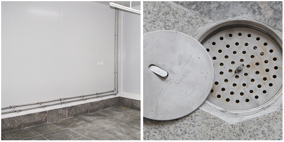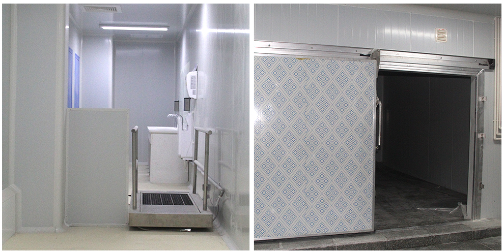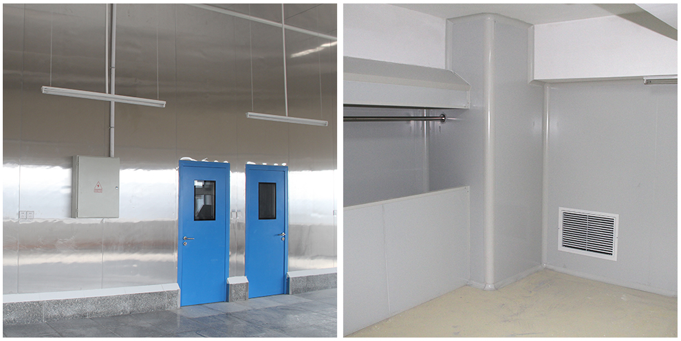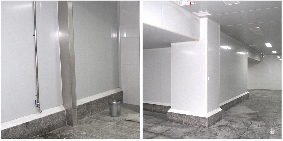 四川品品食品有限公司車間為華盛興邦設計、裝修,車間裝修建筑面積2800平方米,主要生產肉制品。華盛興邦承接的是其四號牛板筋生產車間,該工程地面采用金剛砂耐磨+固化地坪、花崗石地坪、PVC地坪三種方案,隔墻采用凈化彩鋼硅巖板、凈化不銹鋼硅巖板兩種材質,門窗均采用鋼質門潔凈門、不銹鋼潔凈門、潔凈窗,以及臭氧消毒、通風、制冷、排煙工程。