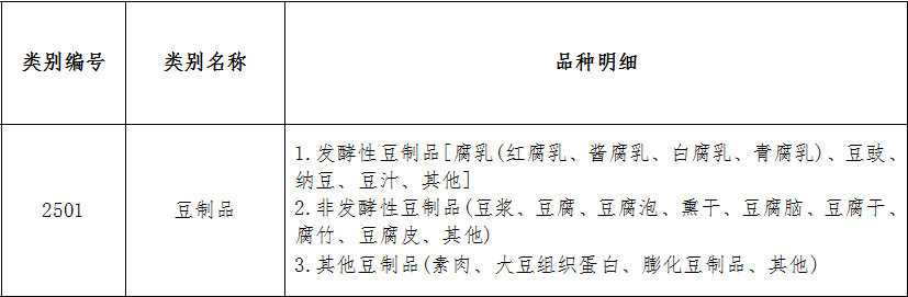 豆制品類別編號(hào)及類別名稱:2501豆制品