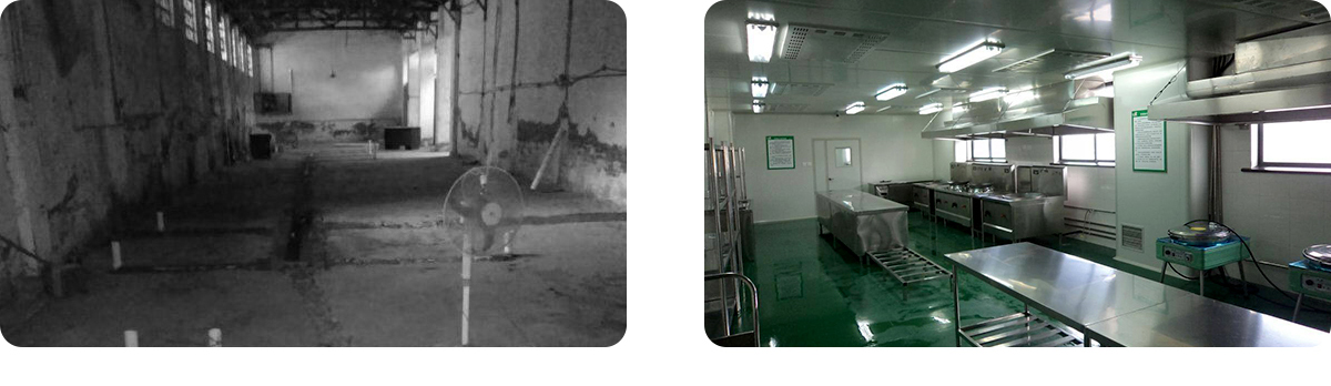 裝修后:工廠更正規化,完全能夠滿足生產需求,滿足HACCP認證以及質量體系(ISO)認證要求,操作更規范流暢,高效生產,工位條理清晰,節約人工成本。