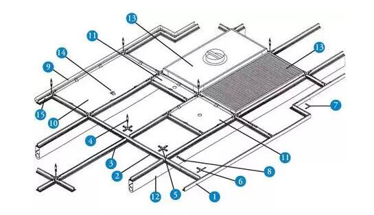 當(dāng)龍骨安裝一定區(qū)域后,需進(jìn)行臨時(shí)定位,用重錘矯正吊頂?shù)闹行呐c十字基準(zhǔn)線,偏差需在一毫米范圍內(nèi)??蛇x擇柱子或土建鋼構(gòu)和墻為定位點(diǎn)。