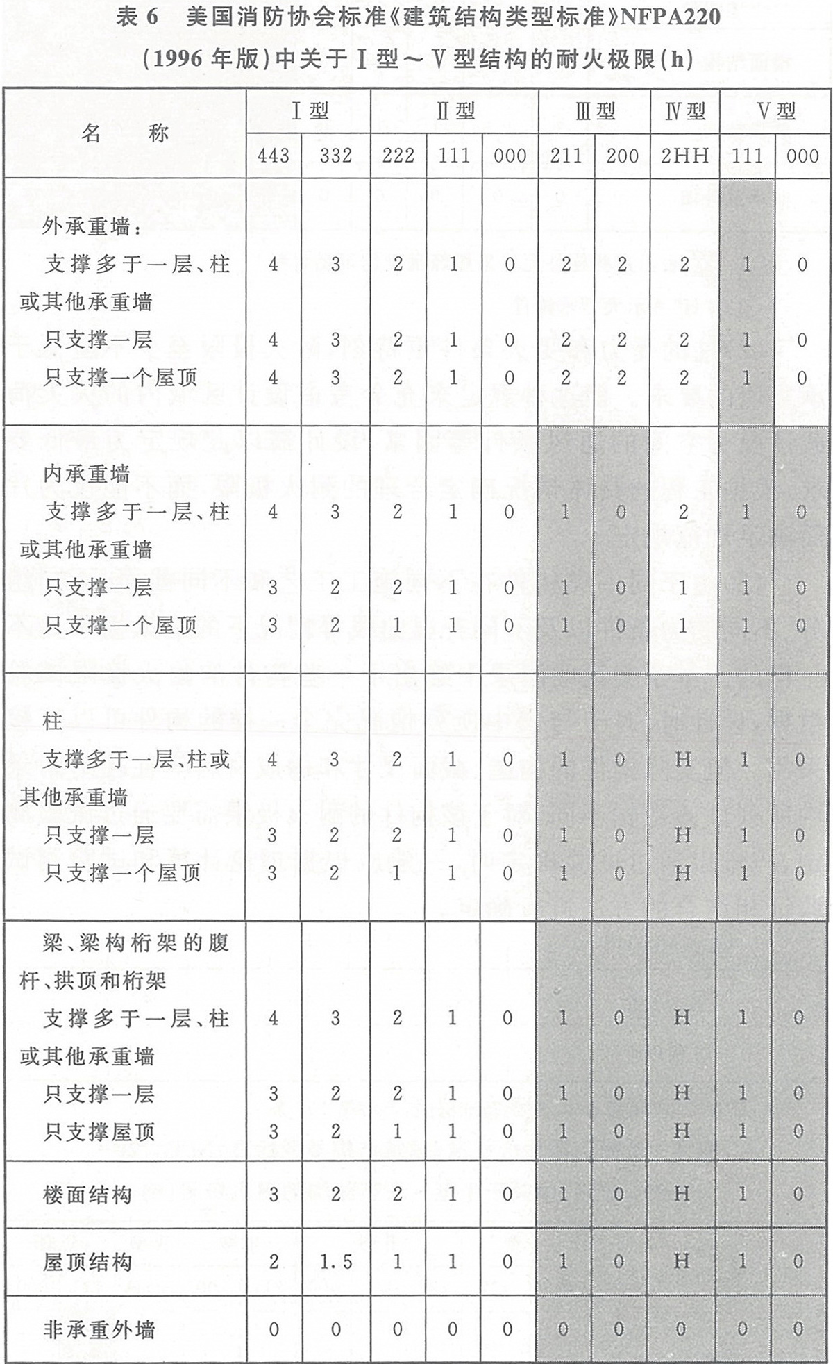 (1) 本規(guī)范第3.2.1條表3.2.1中有關(guān)建筑構(gòu)件的燃燒性能和耐火極限的確定,參考了蘇聯(lián)、日本、美國(guó)等國(guó)建筑規(guī)范和相關(guān)消防標(biāo)準(zhǔn)的規(guī)定,詳見表4~表6。