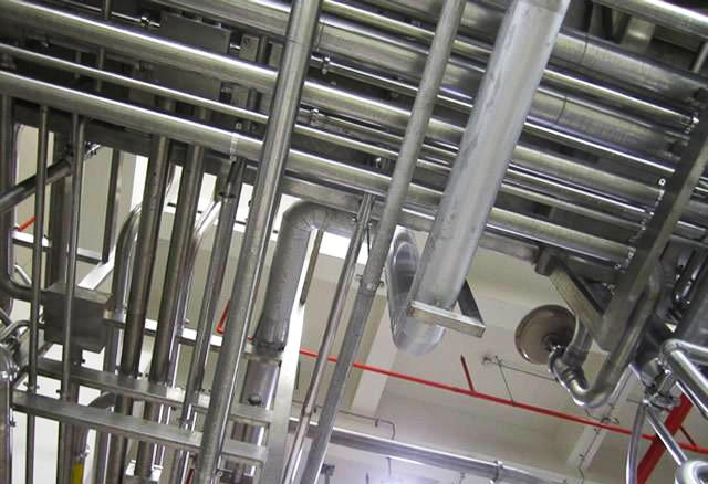為滿足一定的生產(chǎn)工藝而連接起來的管道,工業(yè)廠房里包括給排水管道、消防管道、雨排水管道等,比如生產(chǎn)循環(huán)水、壓縮空氣、蒸汽、氮?dú)狻⒚簹狻⒘蛩帷A液、氨水、氨氣等等。 原則上施工程序先地下、后地上,先室外、后室內(nèi),先預(yù)制、后安裝。