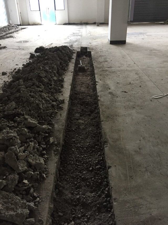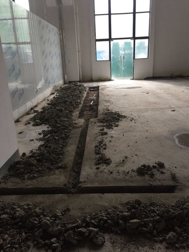 四川憨憨豆匠食品有限公司二期廠房裝修現場,線管施工,地坪開始施工中