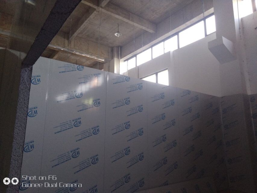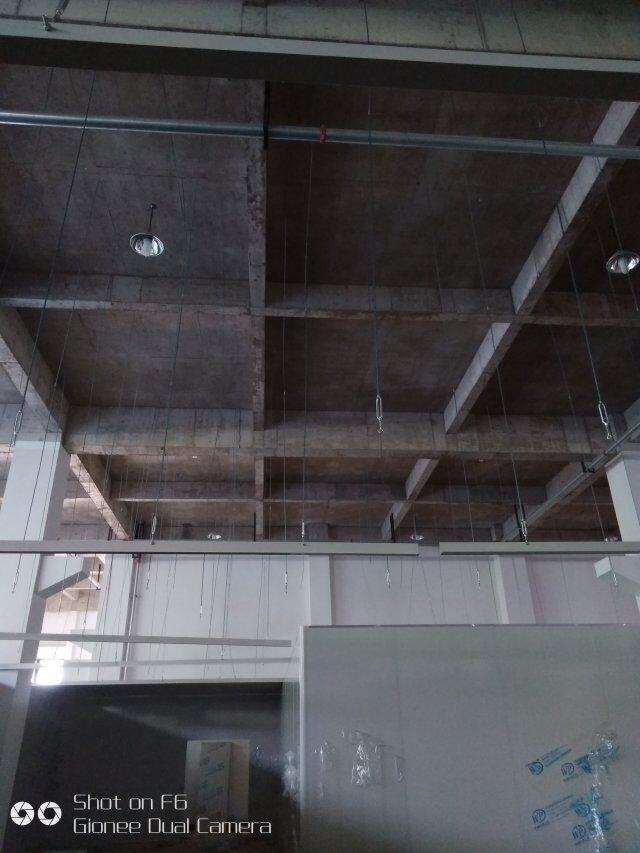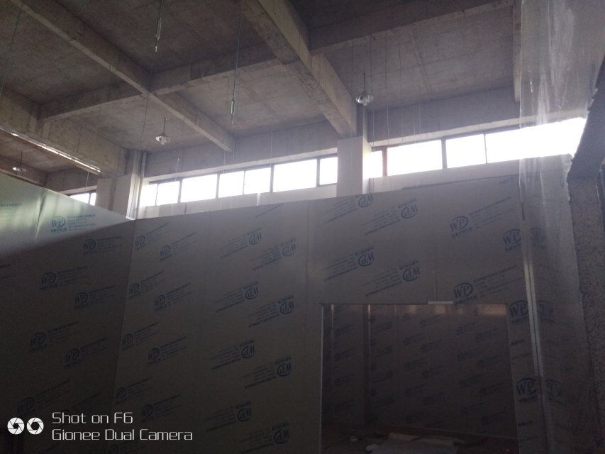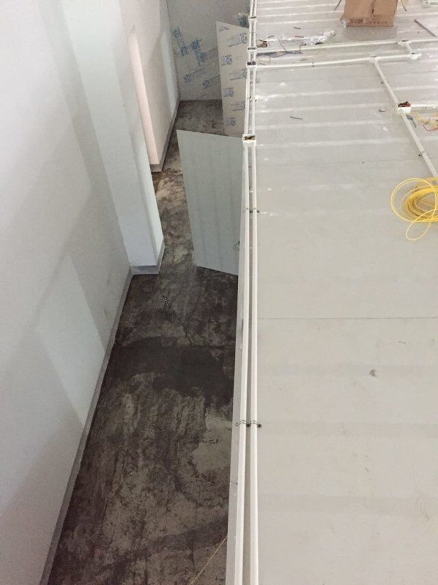 四川憨憨豆匠食品有限公司二期廠房裝修現場:掉頂板,開關插座開孔