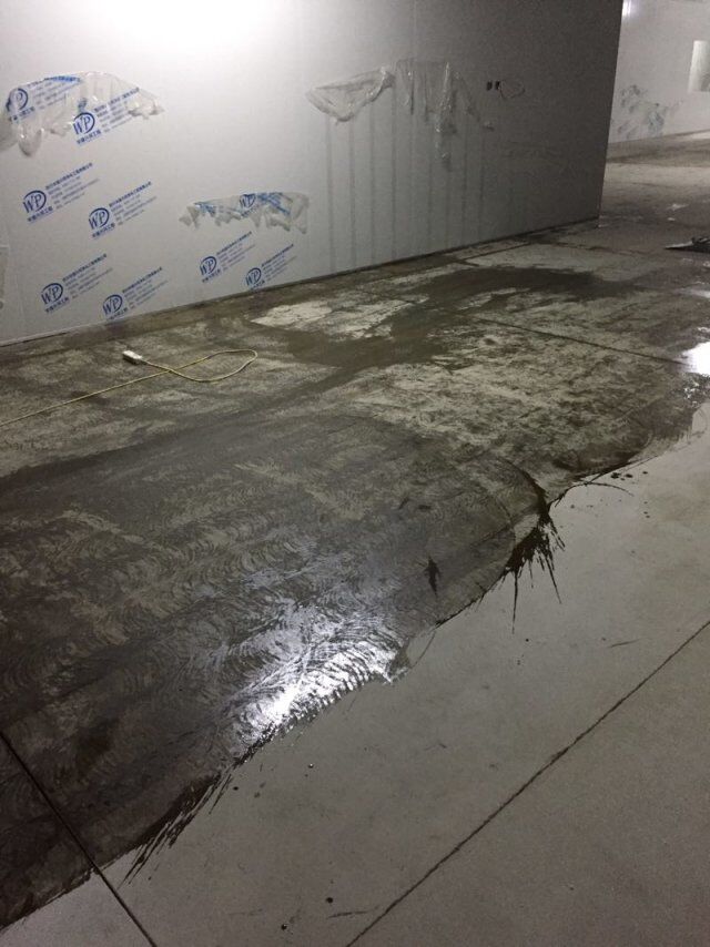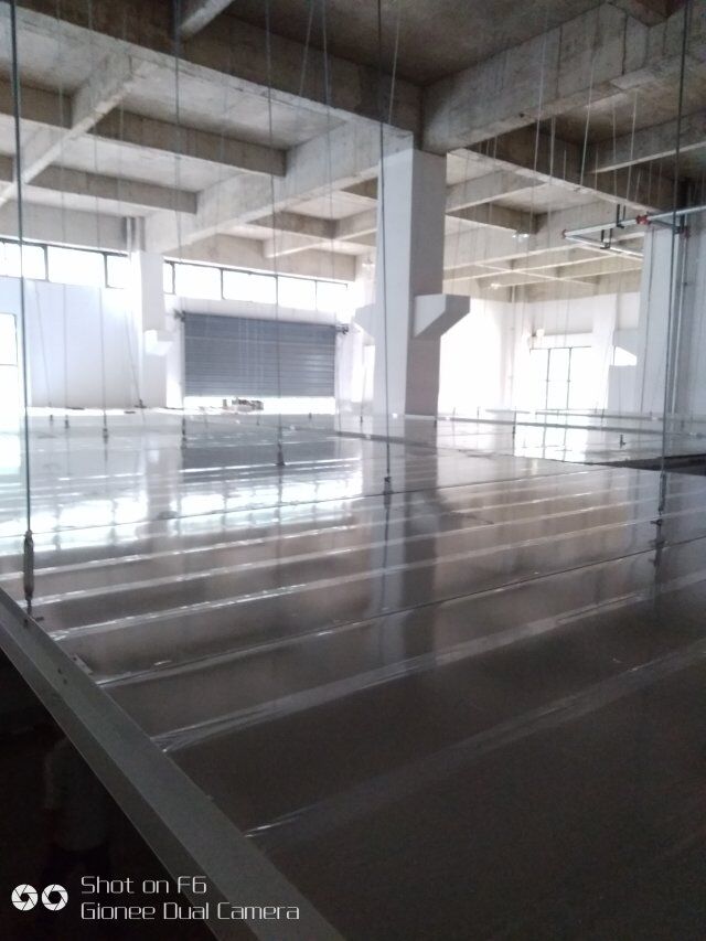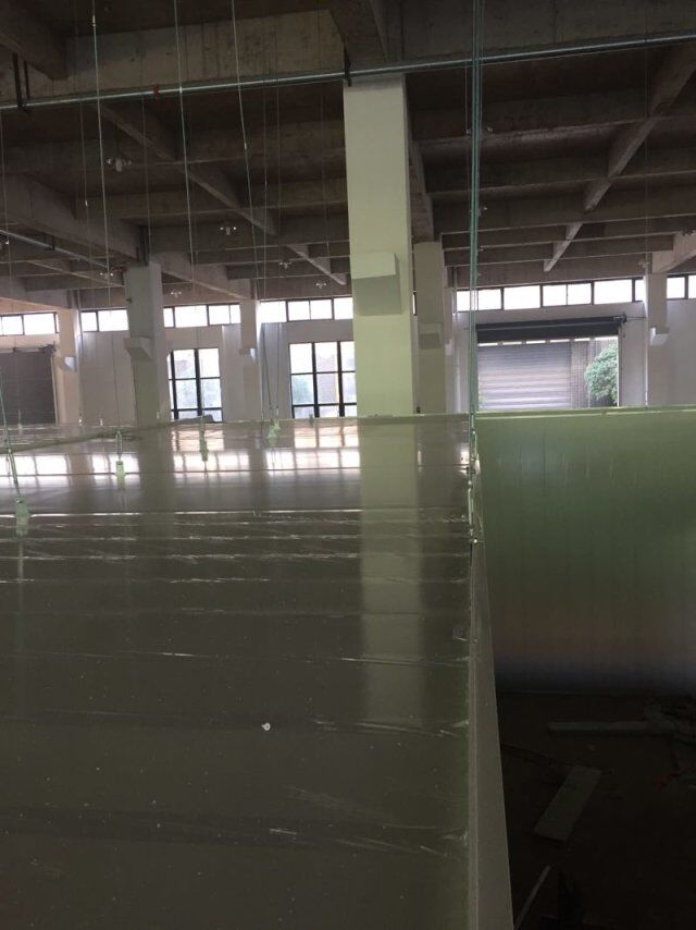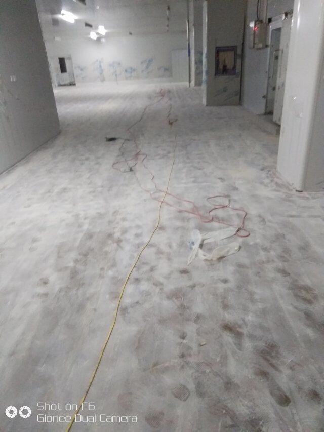四川憨憨豆匠食品有限公司二期廠房裝修現場,撕保護膜,地坪施工
