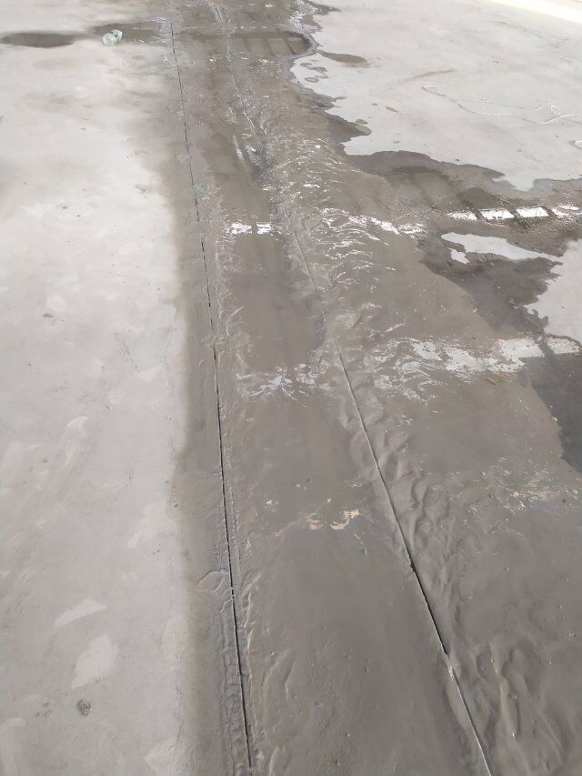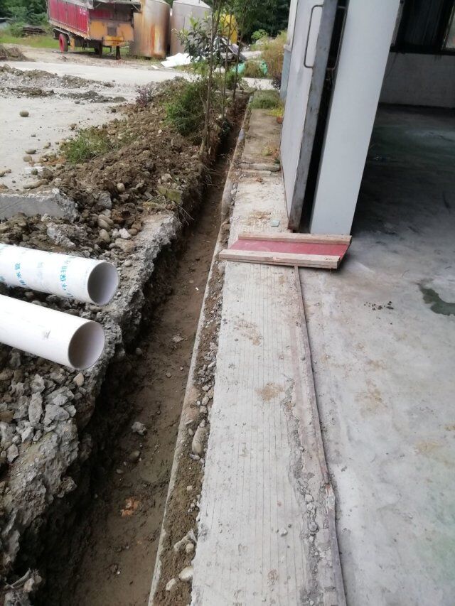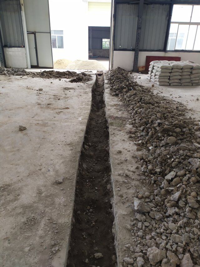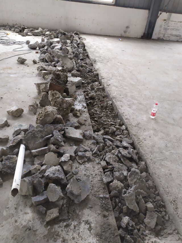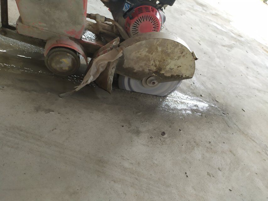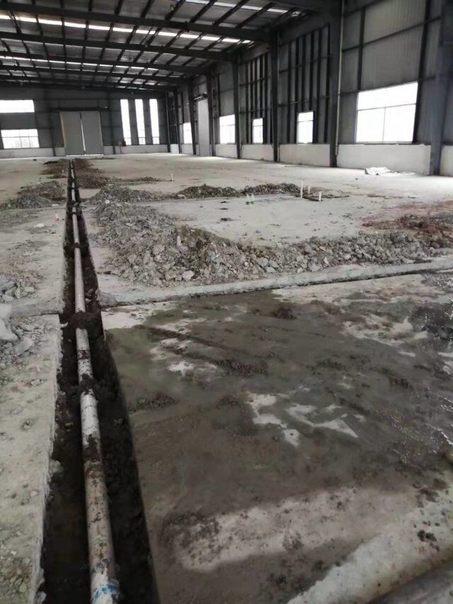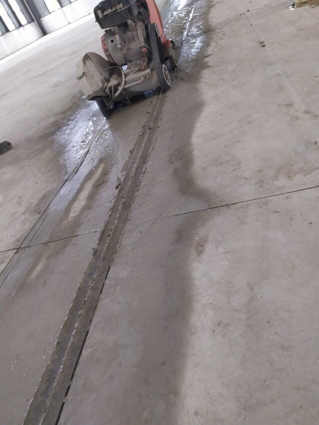 向陽川島食品廠房裝修現(xiàn)場,現(xiàn)場放線,排水溝切縫完成。