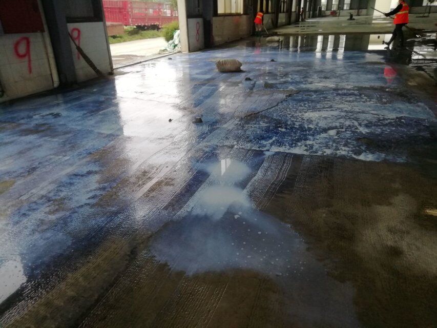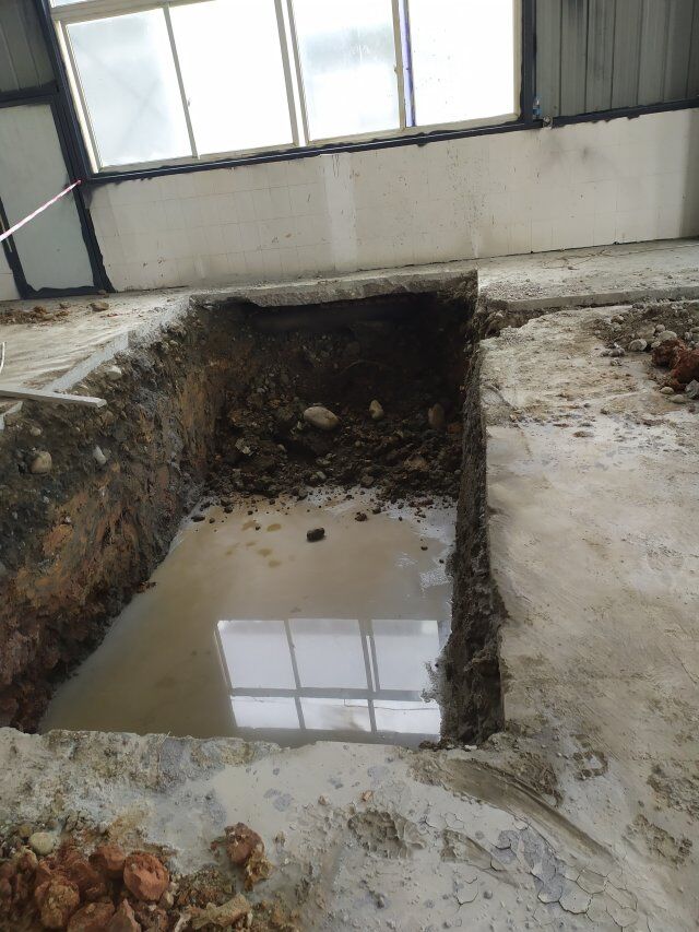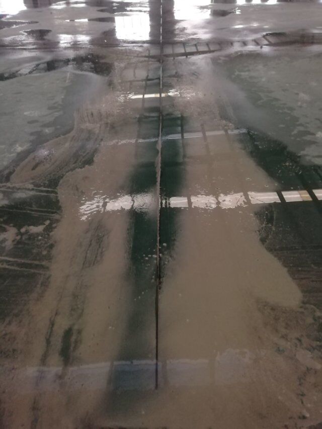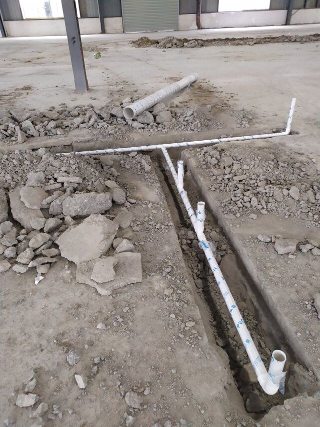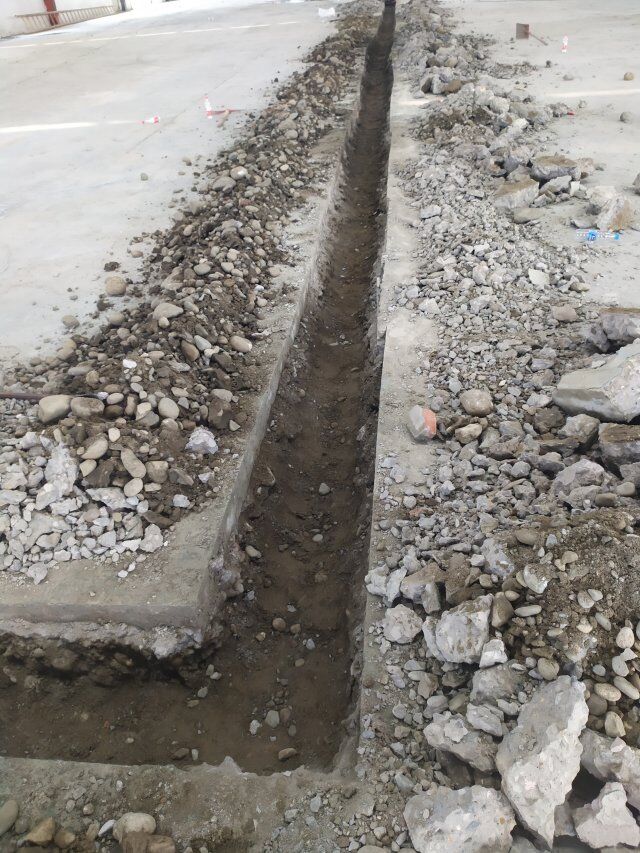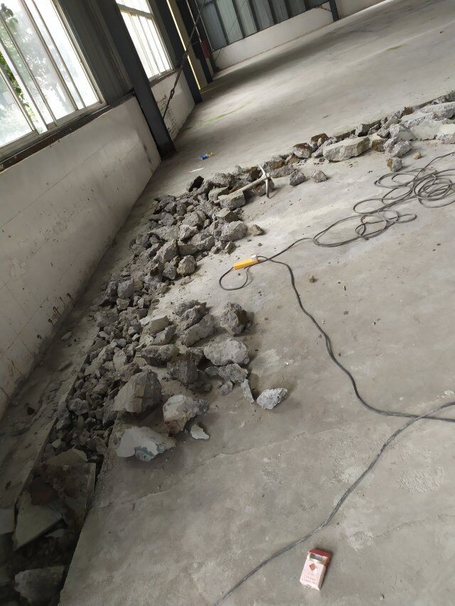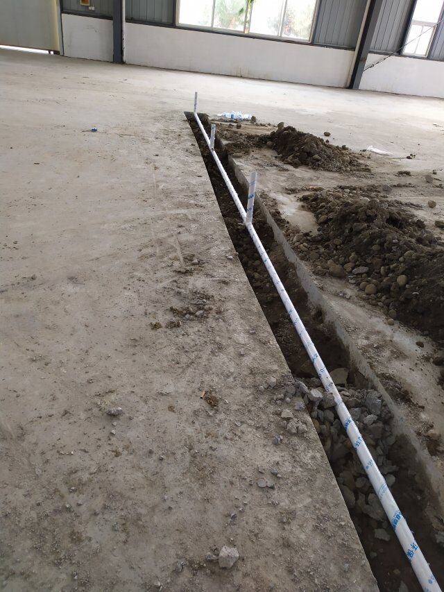 向陽川島食品廠房裝修現(xiàn)場,現(xiàn)場放線,排水溝切縫完成。