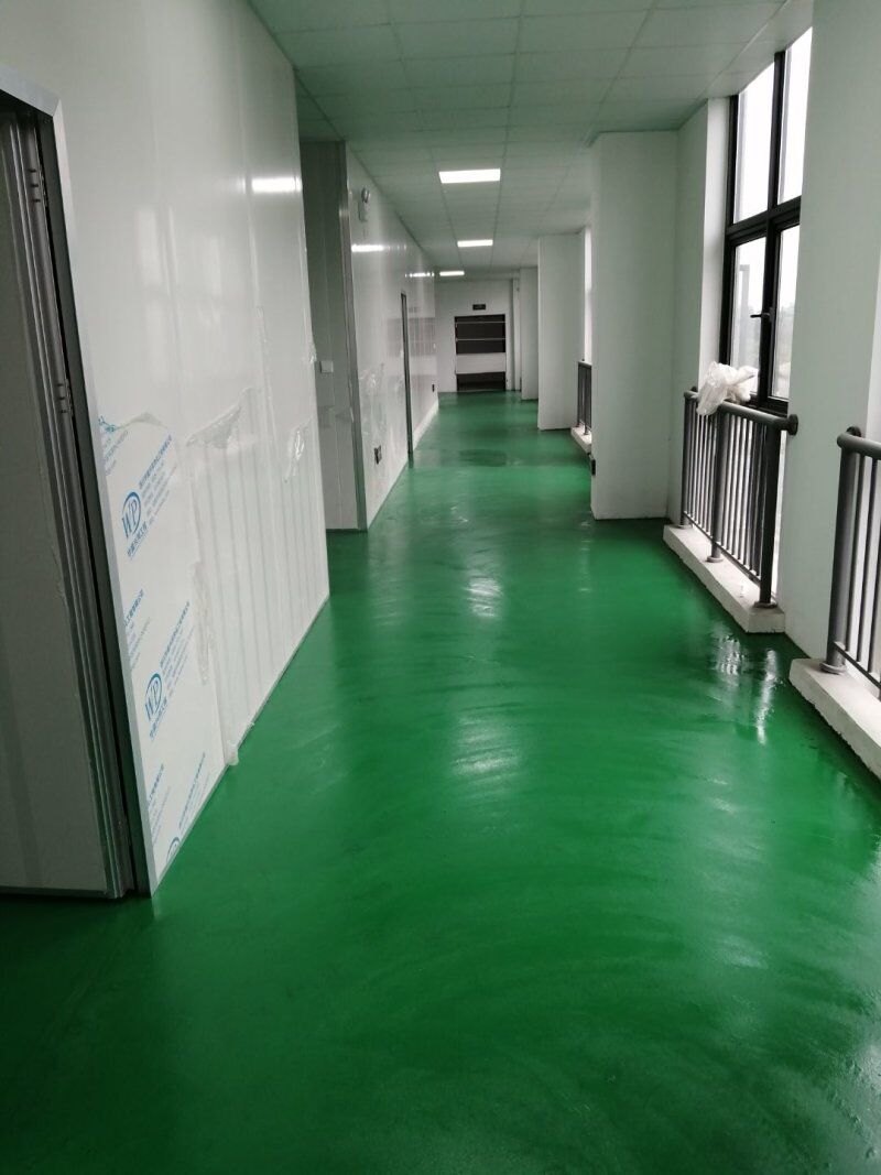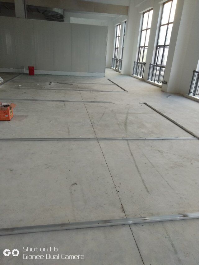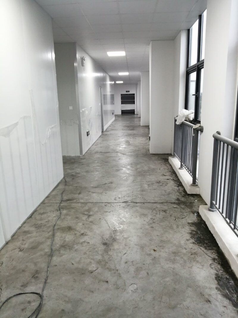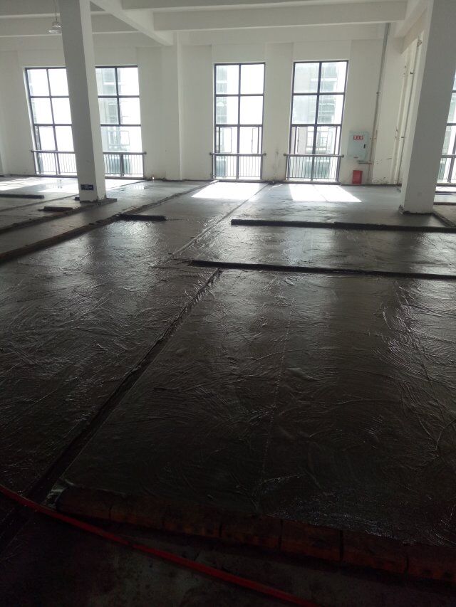 成都王老鴨食品有限公司廠房裝修現場,放線完成,隔斷擋水施工