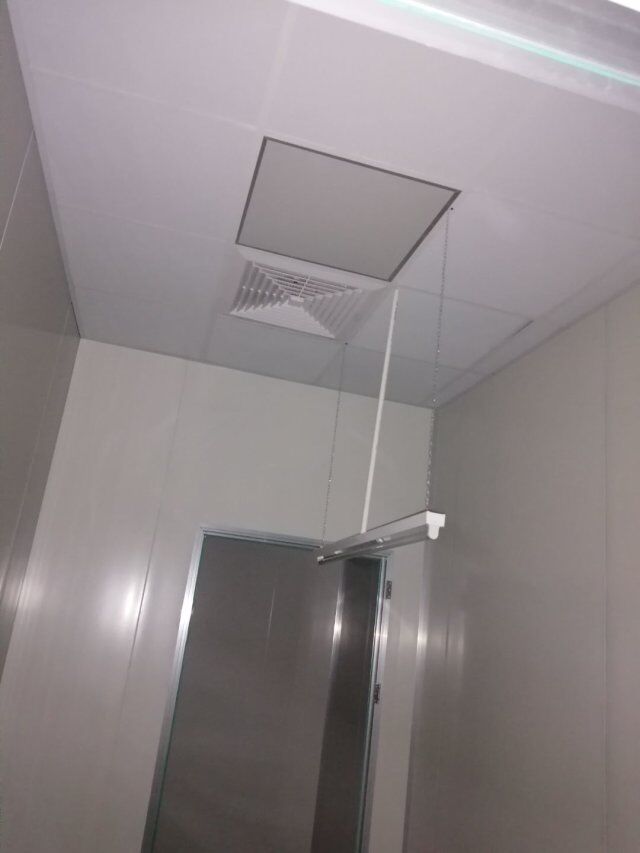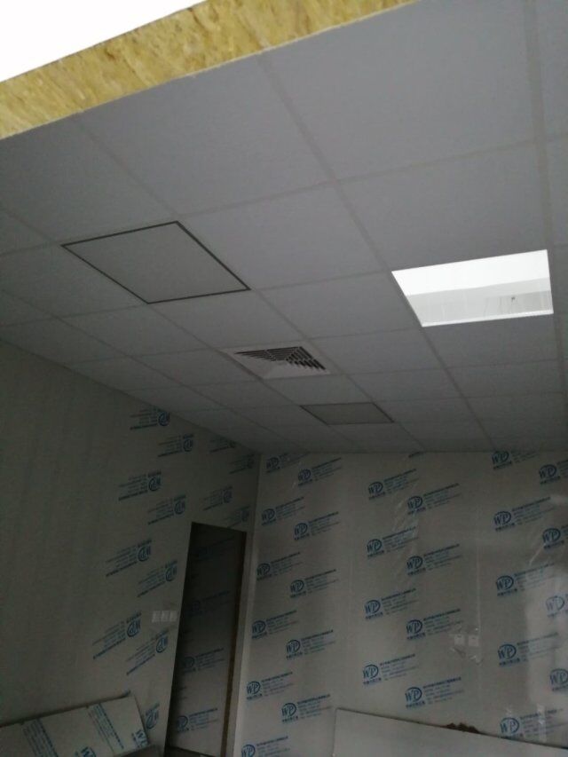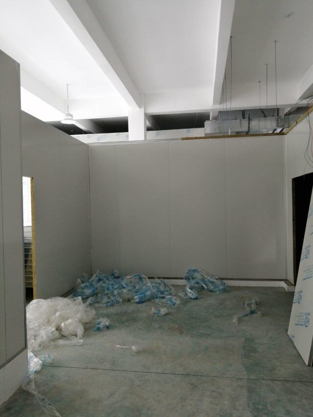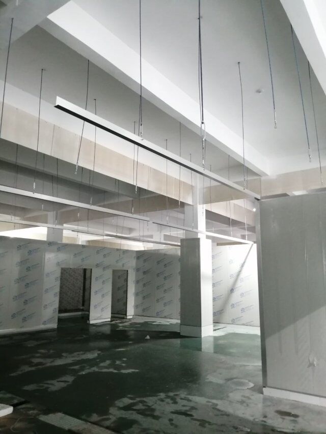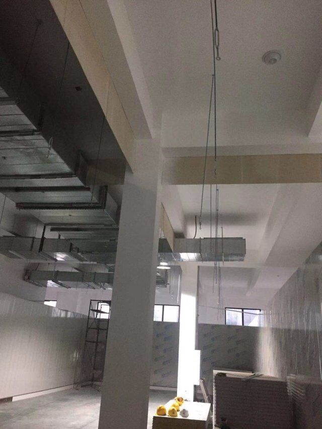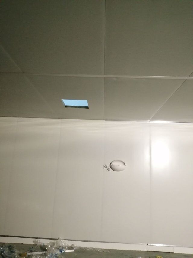 1.墻板完成百分之八十 2.吊頂吊筋安裝完成,3.門料下料切角施工