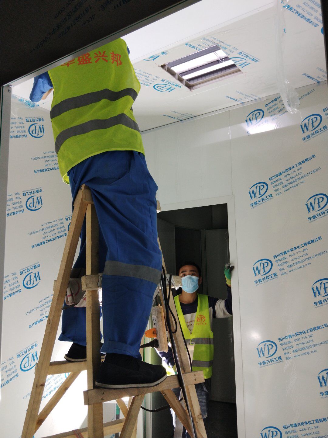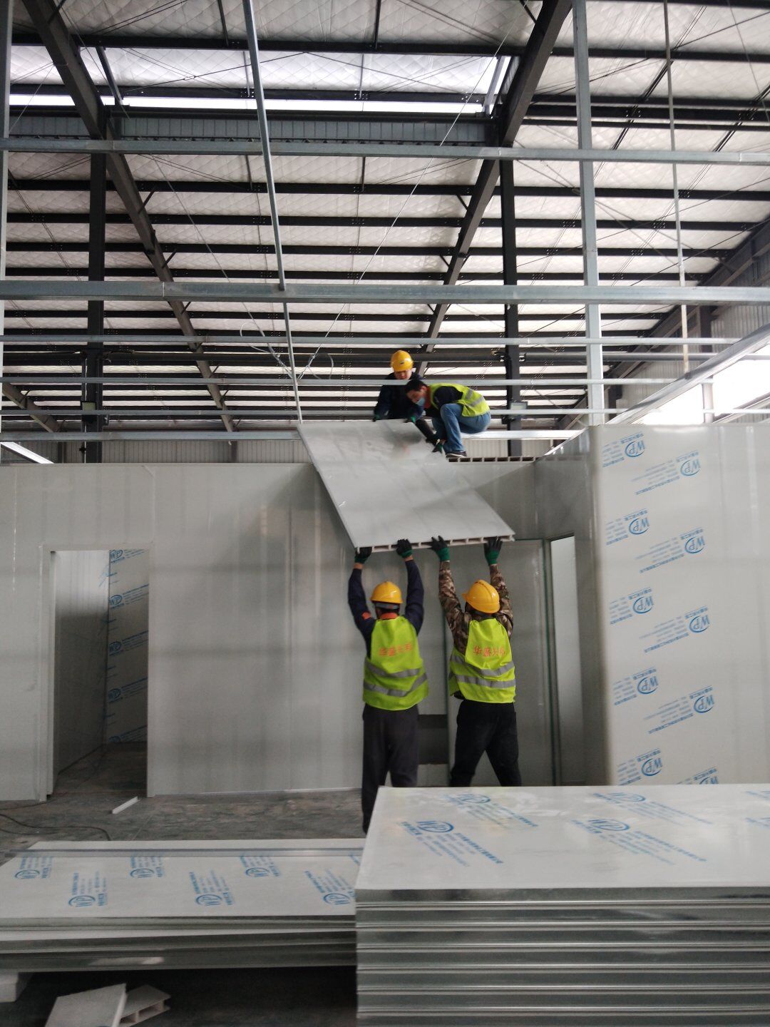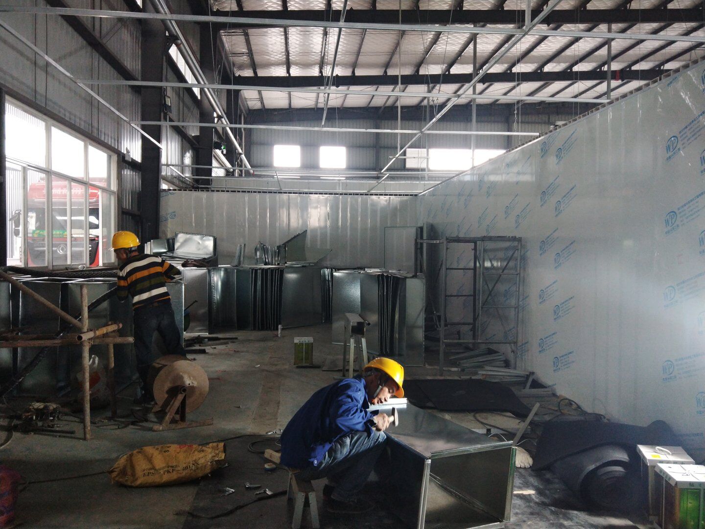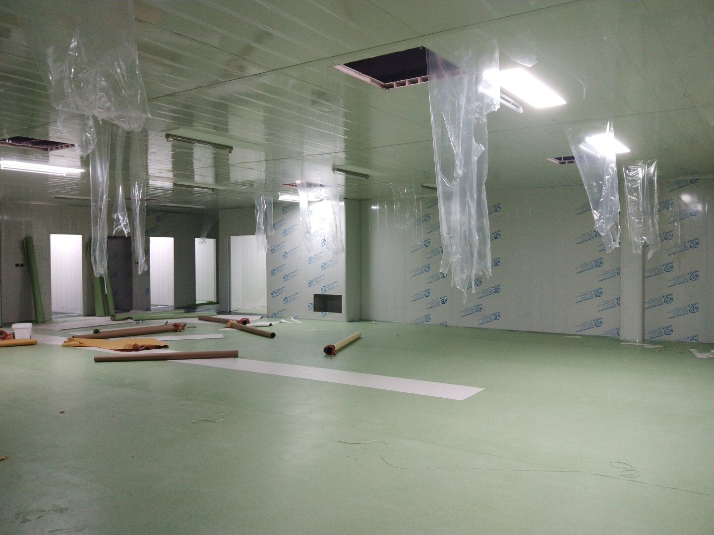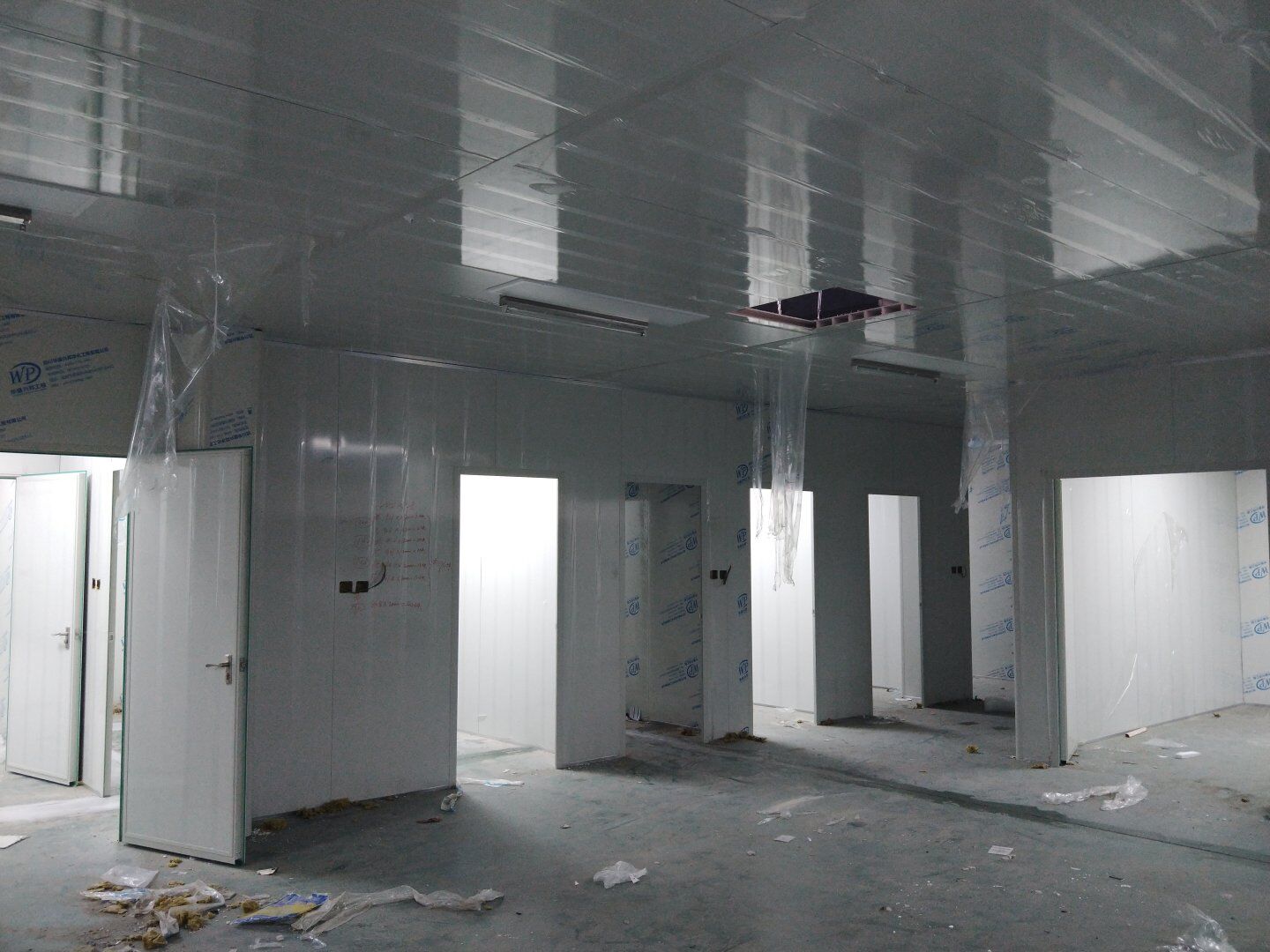 2020.4.20?濕巾廠門板安裝完成80%,回風夾道安裝完成40%.