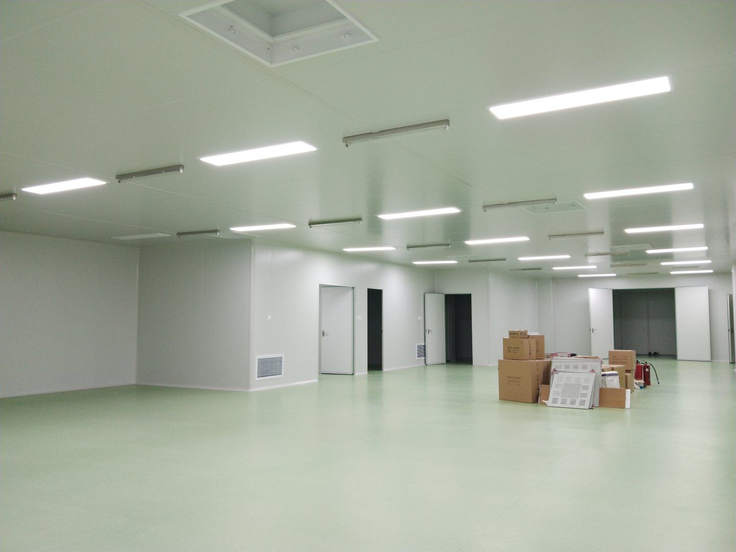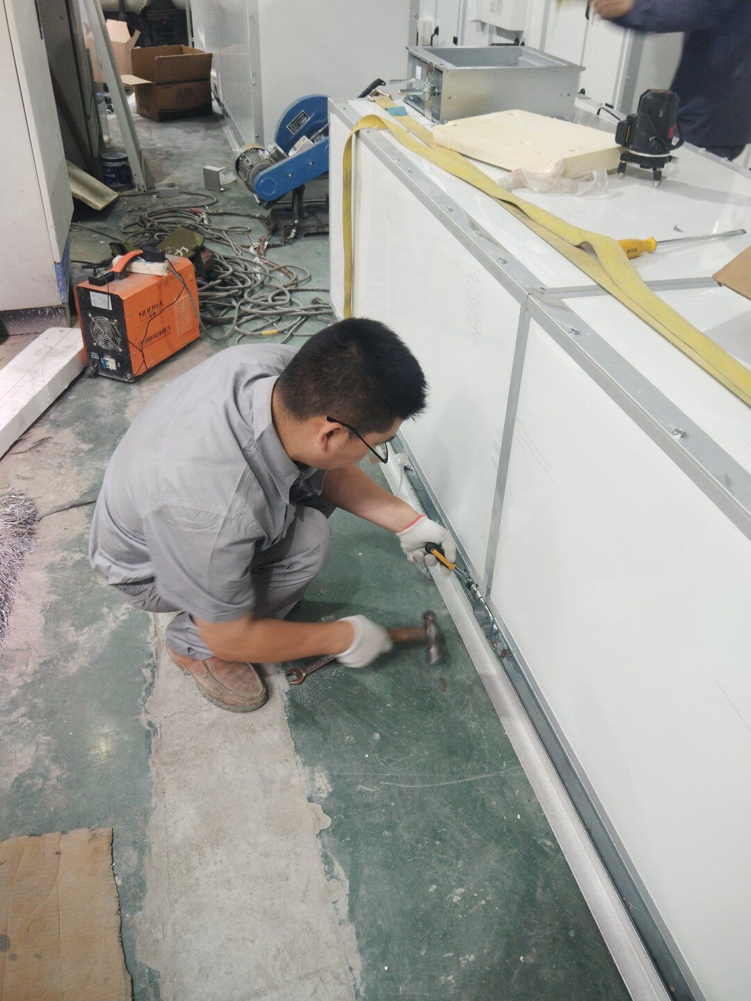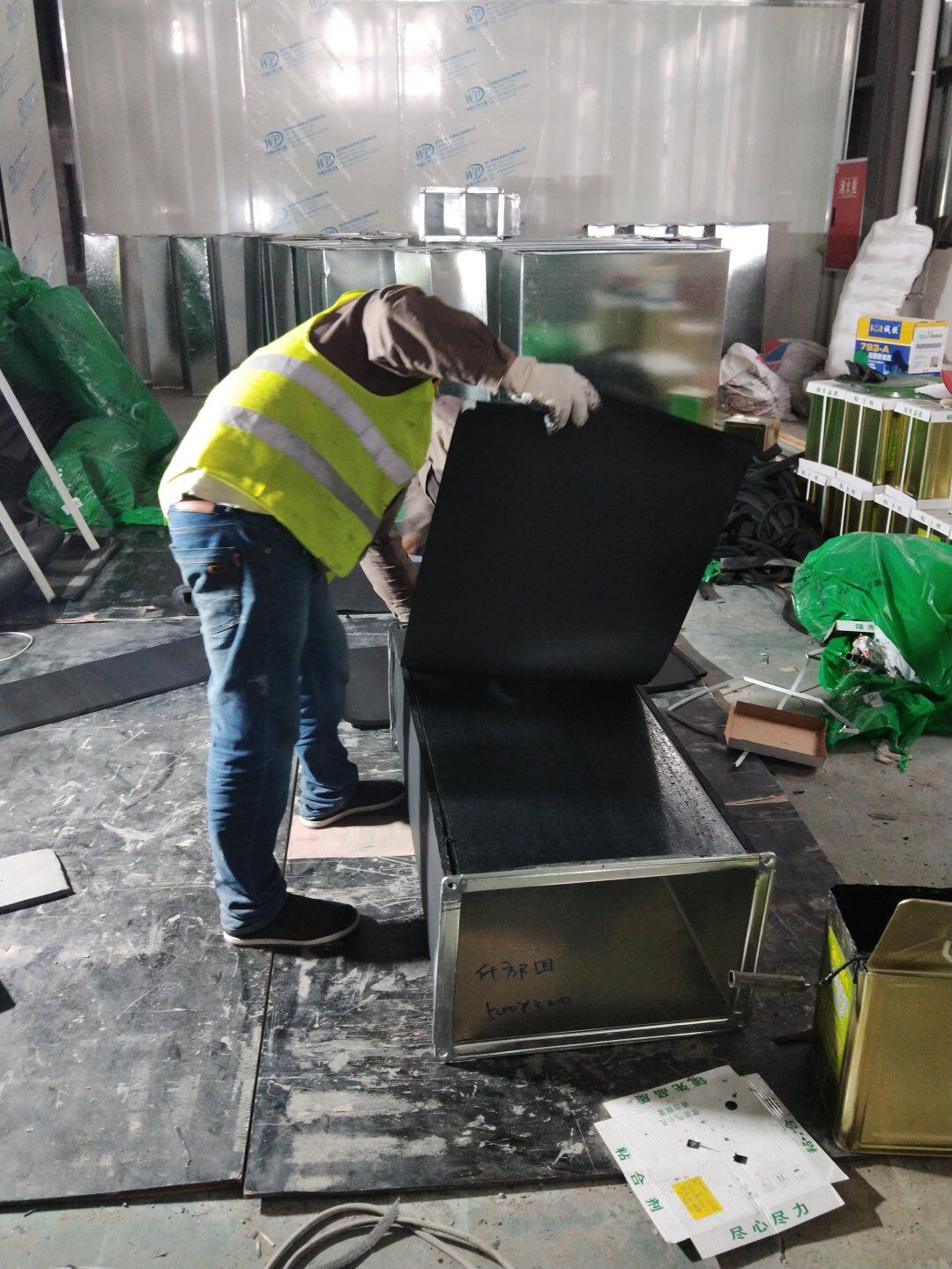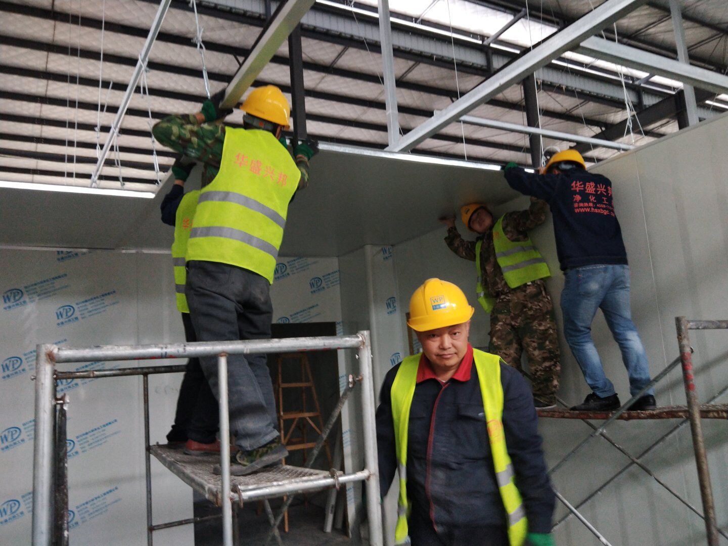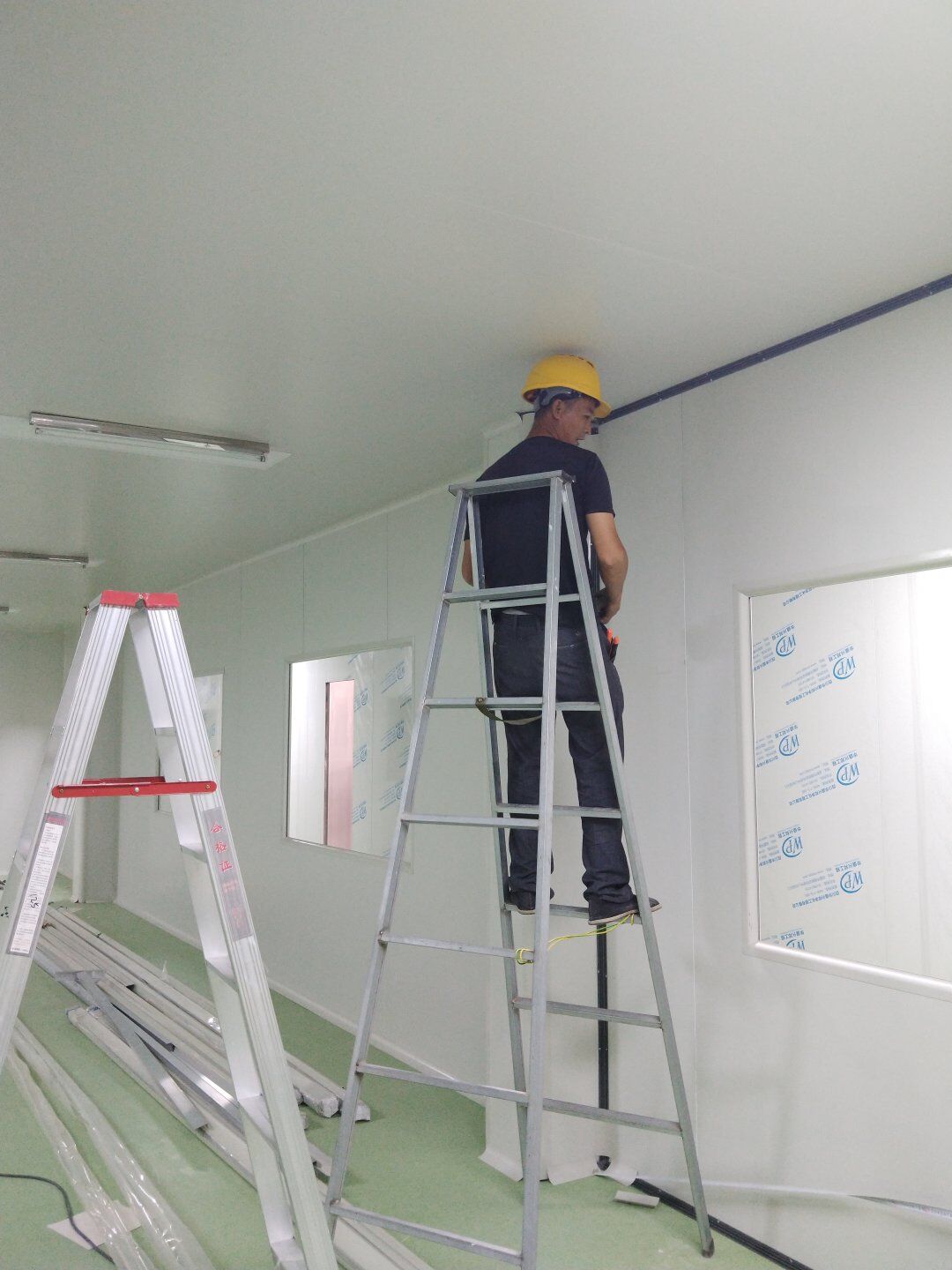 2020.4.20?濕巾廠門板安裝完成80%,回風夾道安裝完成40%.