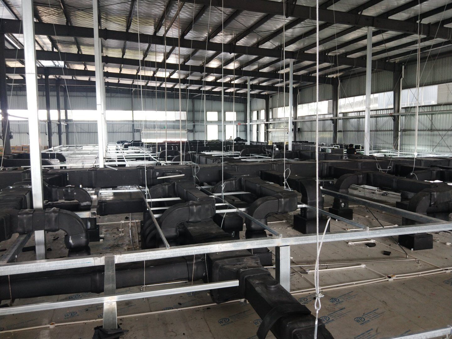 口罩廠風管主管組裝完成80%并完成相應保溫。
