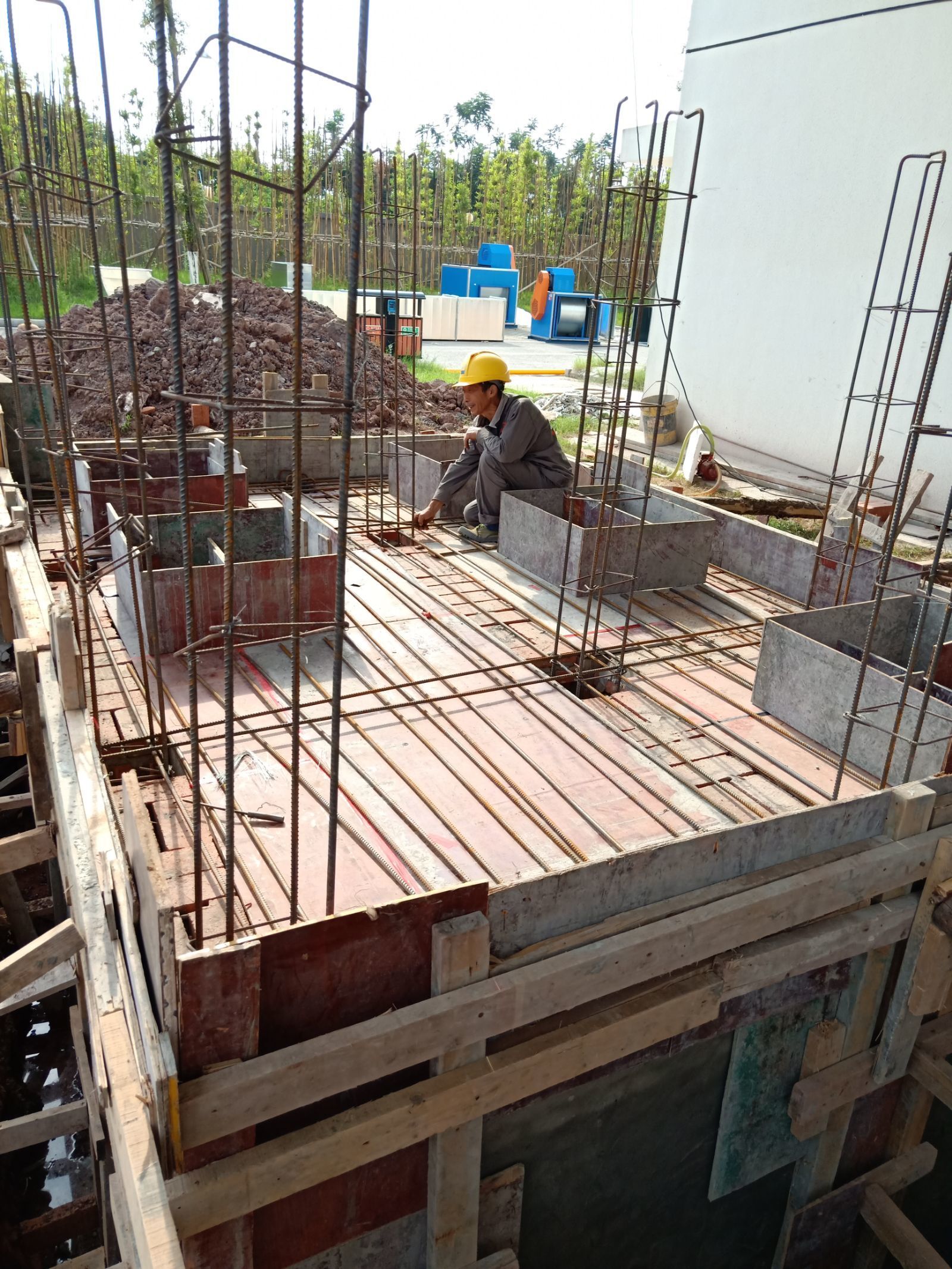 1.污水池回填施工 2.污水池二層平臺柱子關模施工 3.水電安裝 4.圓弧膠條施工 5.墻磚施工