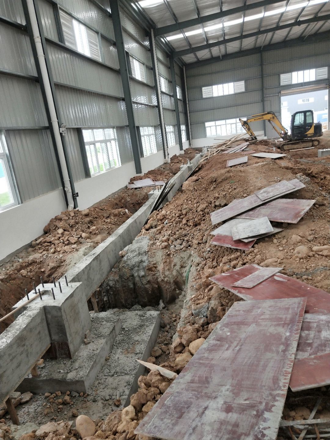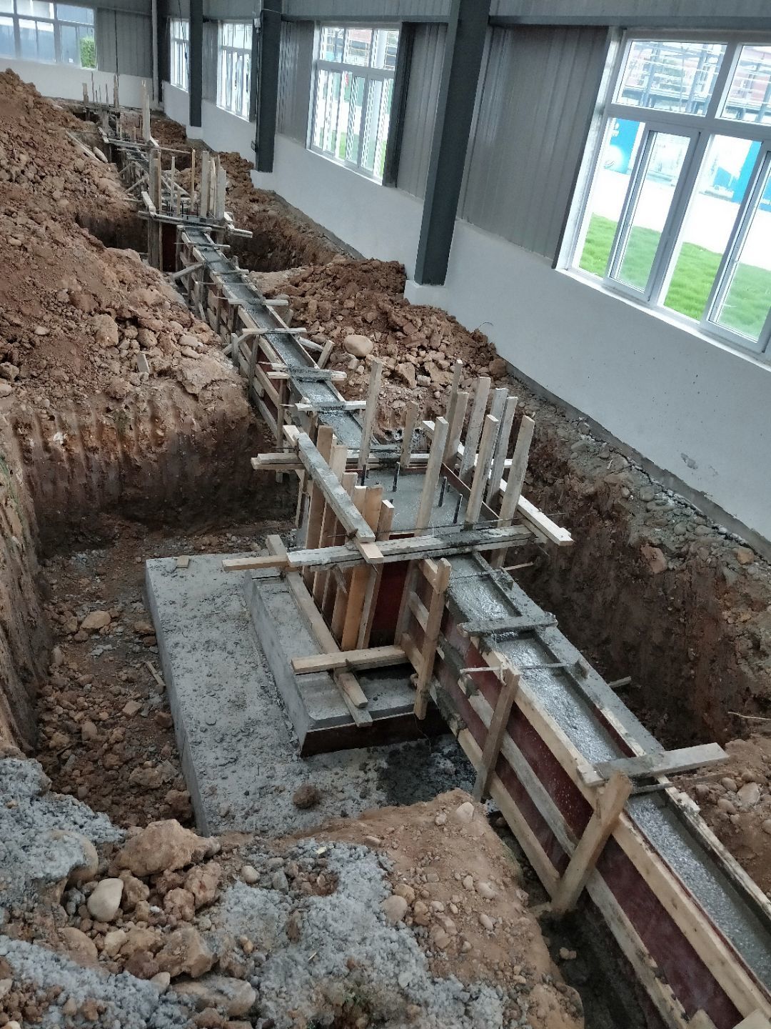 1,一樓加氣塊砌筑完成40%, 2,二樓臨時增加實體墻抹灰完成90%, 3,材料轉運二樓, 4,設備基礎預支養護。