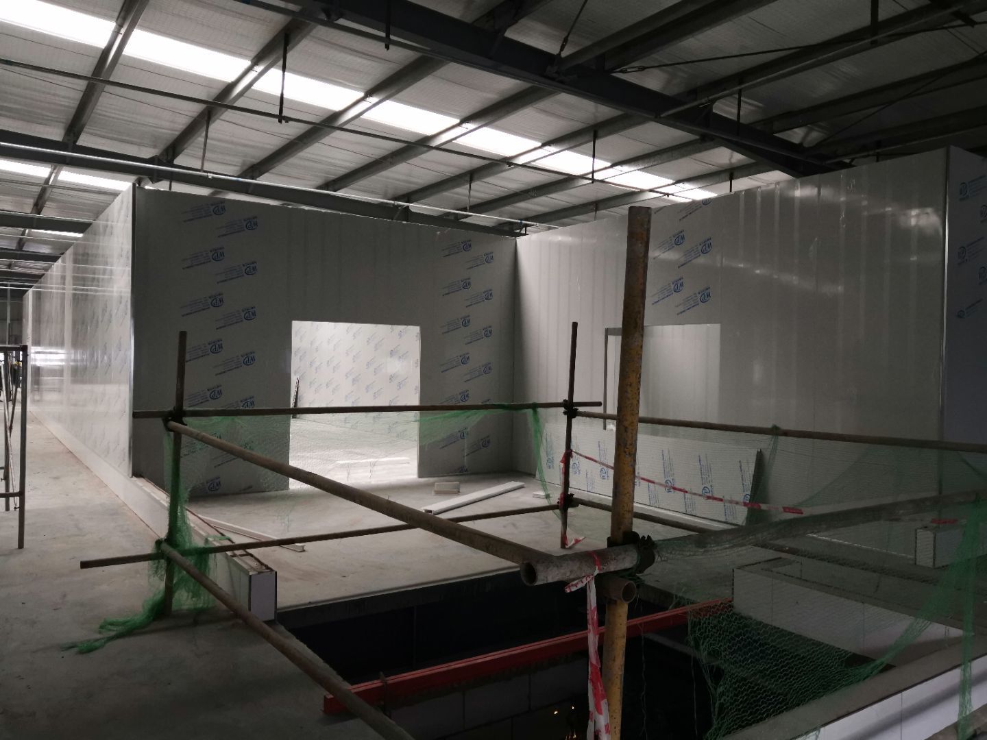 1,乳膠漆進場施工, 2,彩鋼水電收尾, 3,場地全面清理。