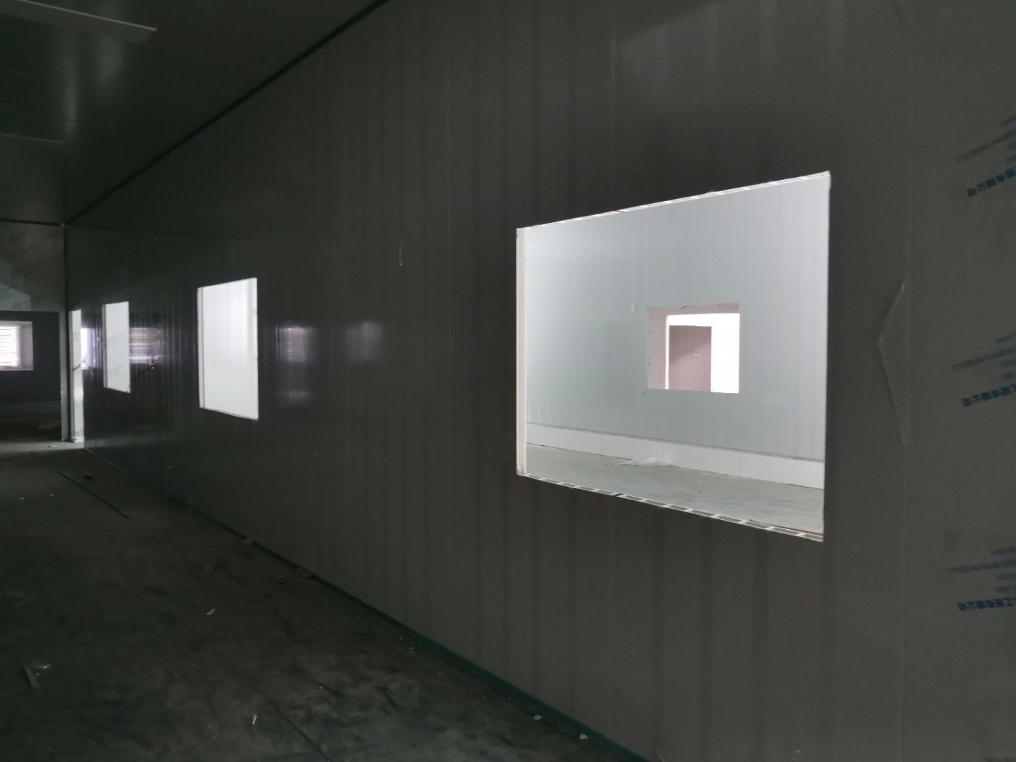 1,防火門安裝完成, 2,一樓彩鋼墻板完成90%,增項除外, 3,一樓衛生間貼磚完成50%, 4,水電安裝完成70%。
