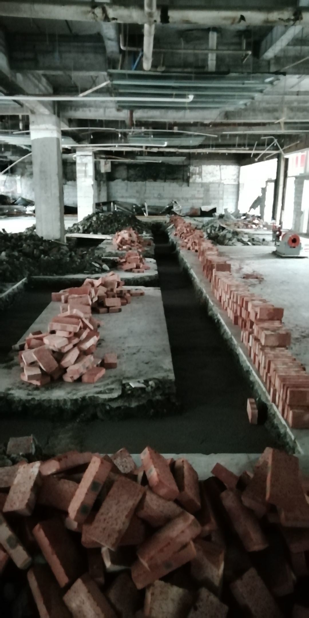 車間排水溝、擋水墻施工,車間地面鋪磚