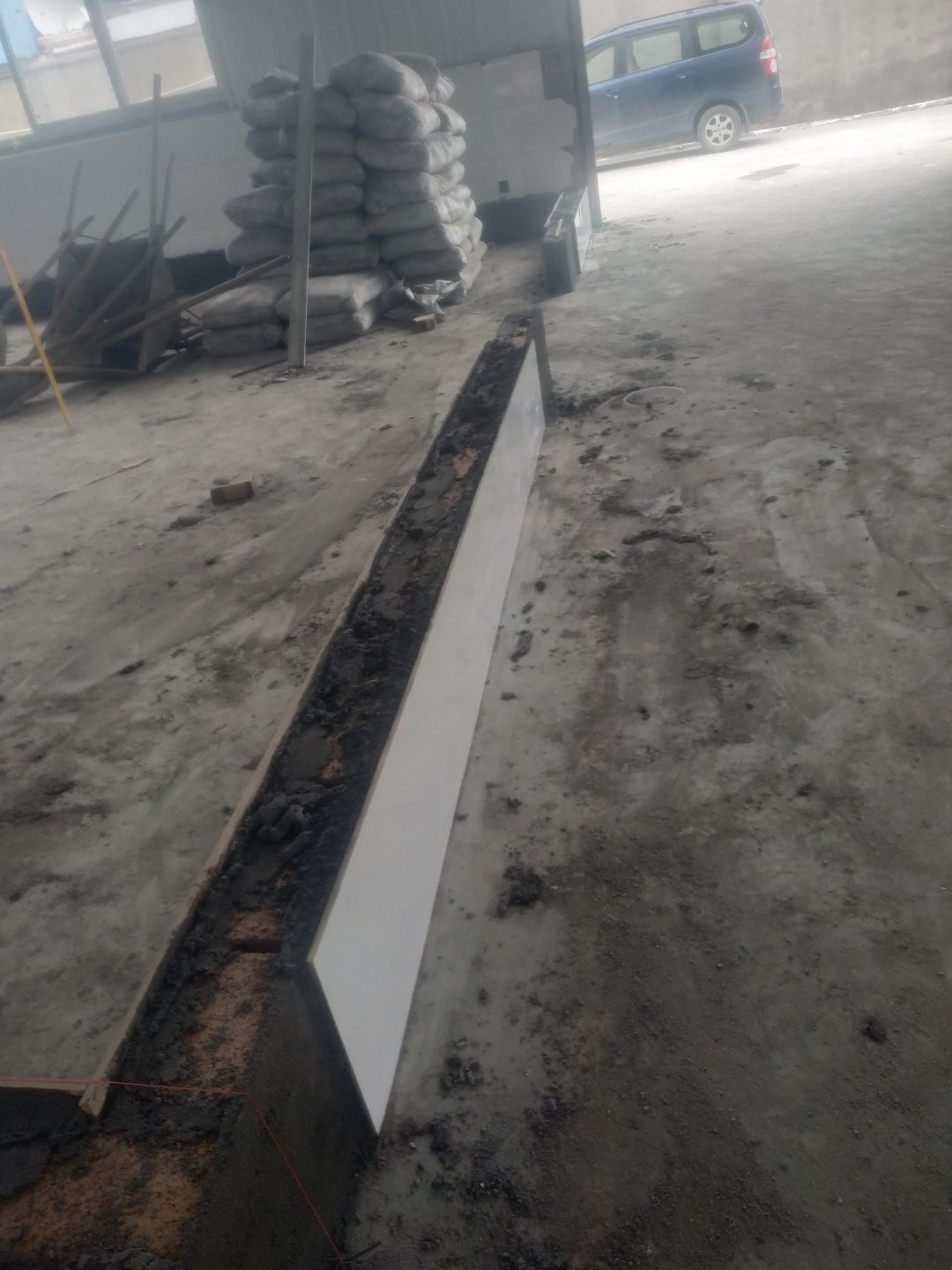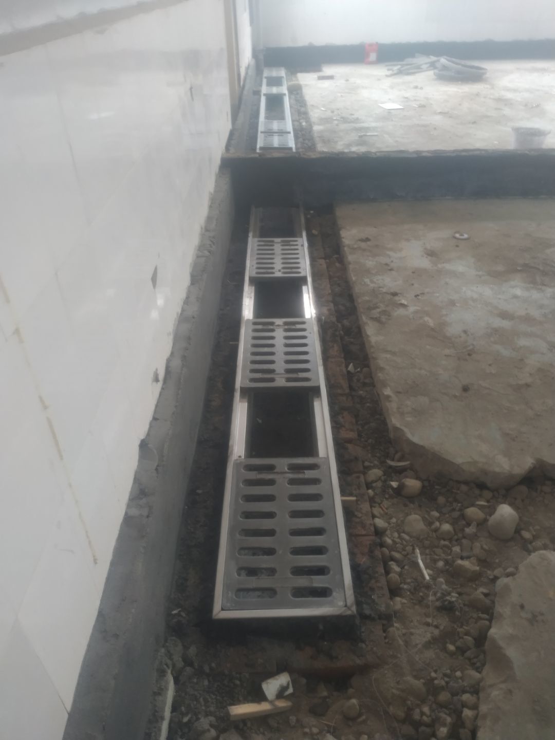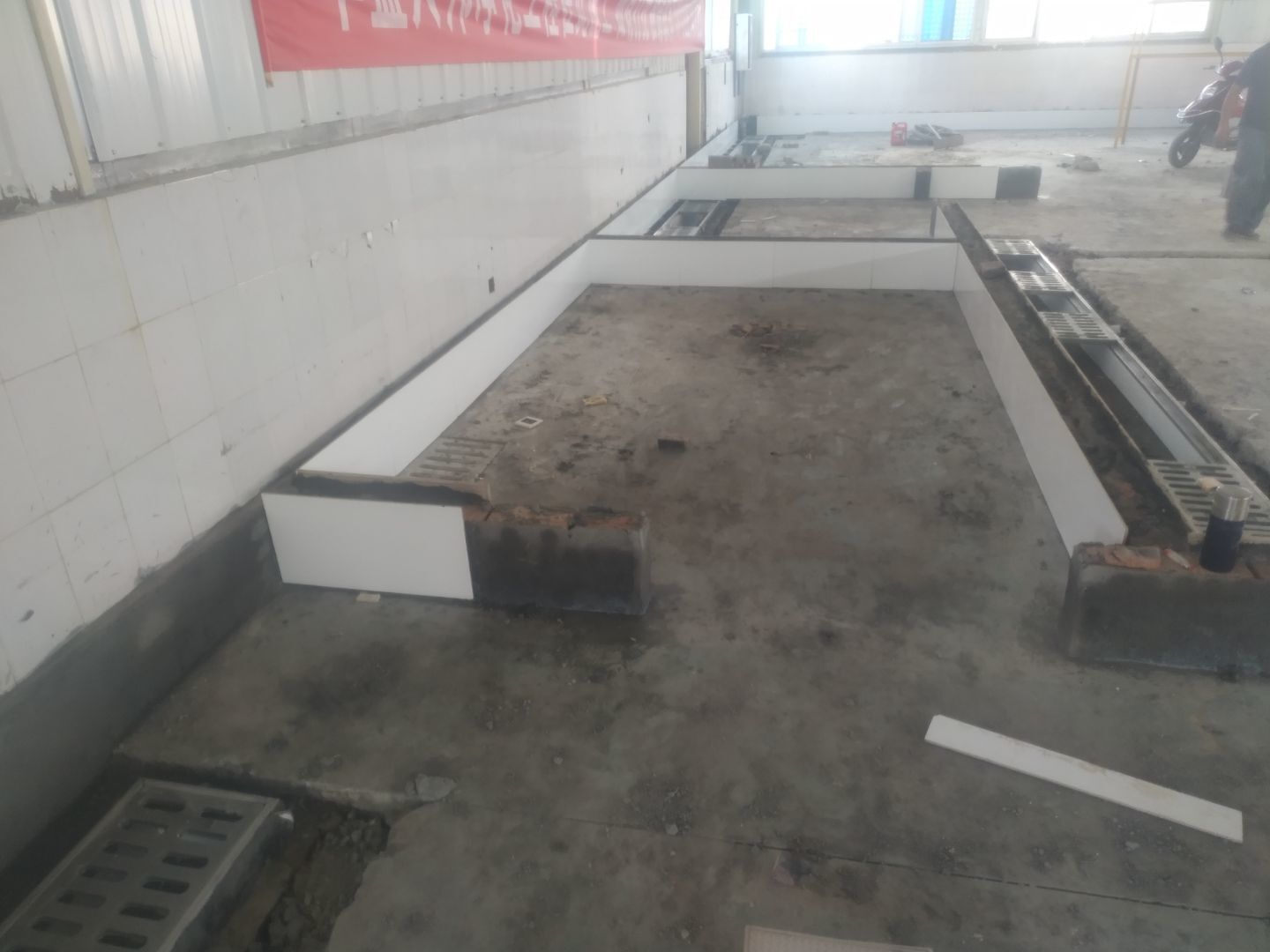 排水溝不銹鋼折邊件安裝,擋水墻貼磚施工,凍庫墻板安裝施工