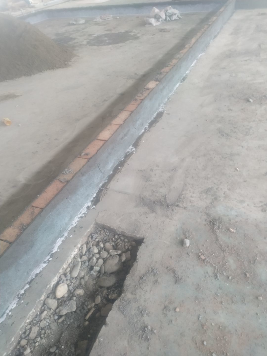 排水溝立面貼磚完成,排水溝折邊件安裝完成35%,擋水墻施工,擋水墻貼磚。