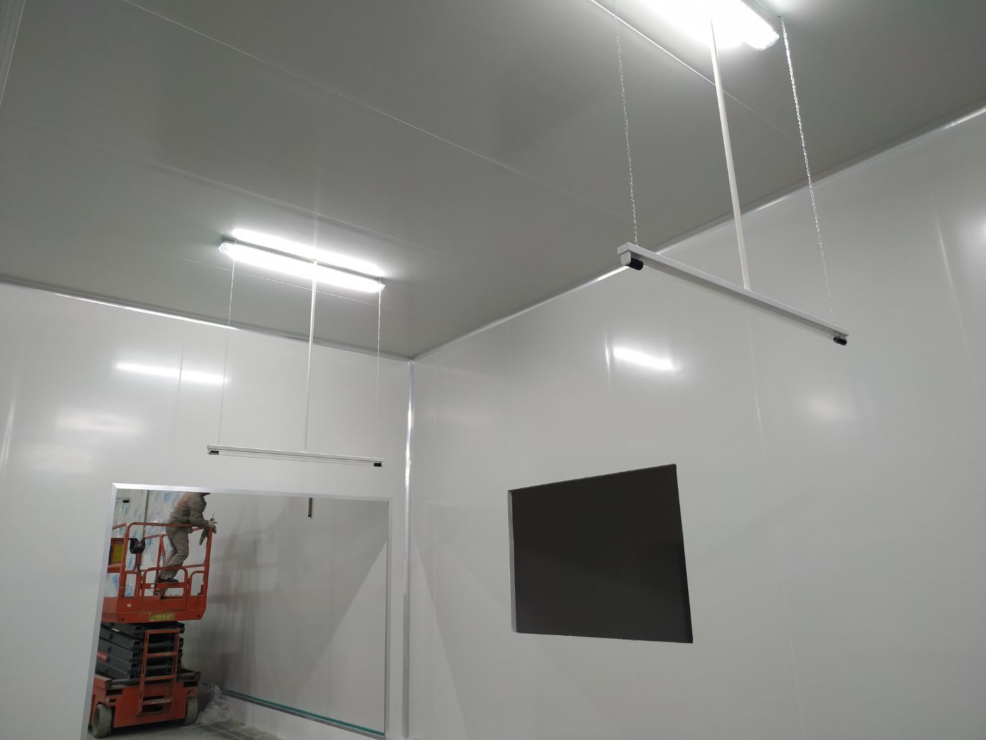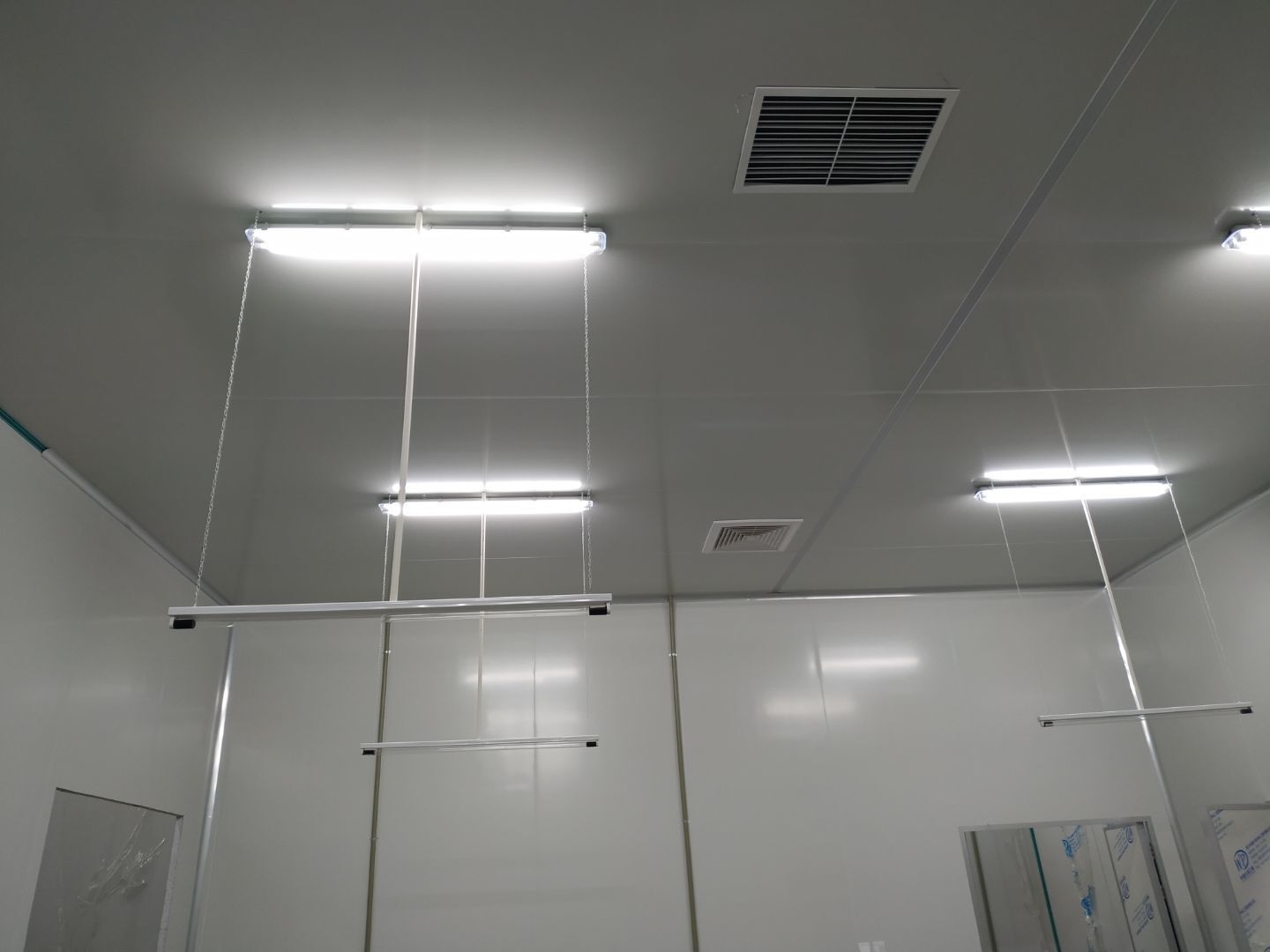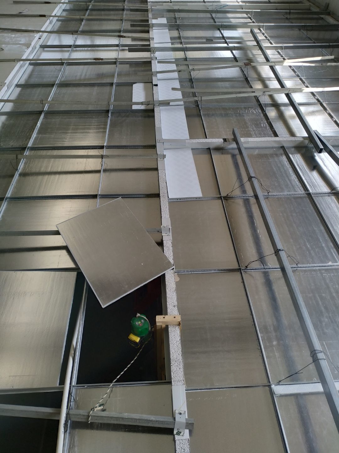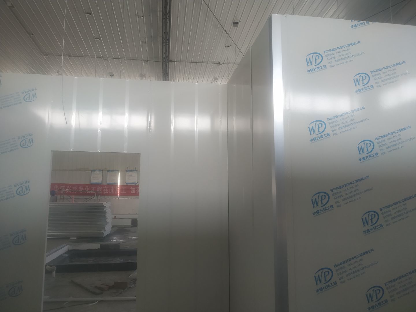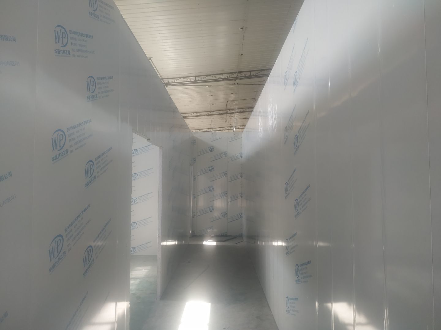 頂板安裝完成95%,新增排水溝安裝完成80%(剩余內包材消毒殺菌和地磚同步安裝),燈具安裝完成80%,撕膜打膠完成45%,圓弧安裝35%。室外排水管安裝完成,三防板安裝完成。