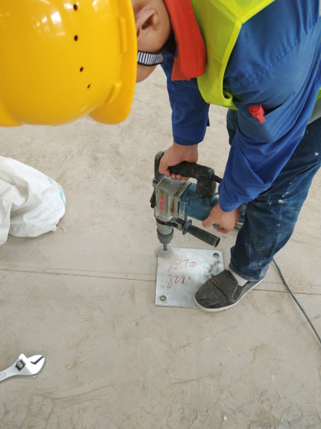 1、二次吊掛鋼構(gòu)立柱放線(xiàn)定位; 2、鋼立柱下料焊接完成,柱腳板安裝完成; 3、臨電布設(shè)完成。