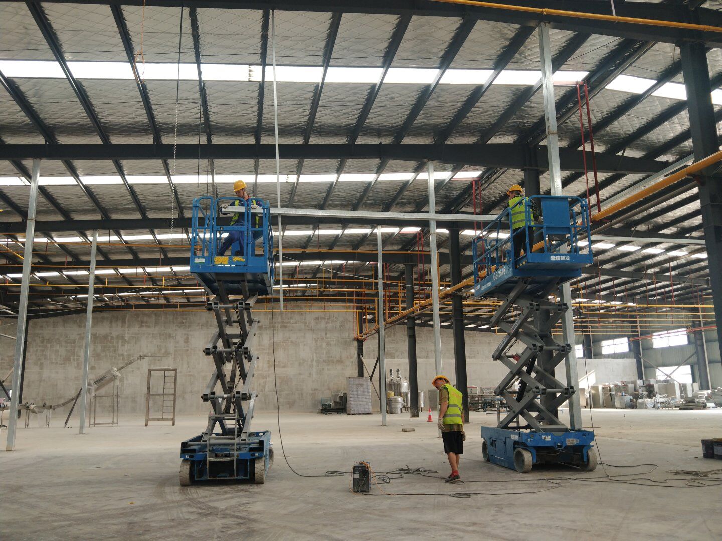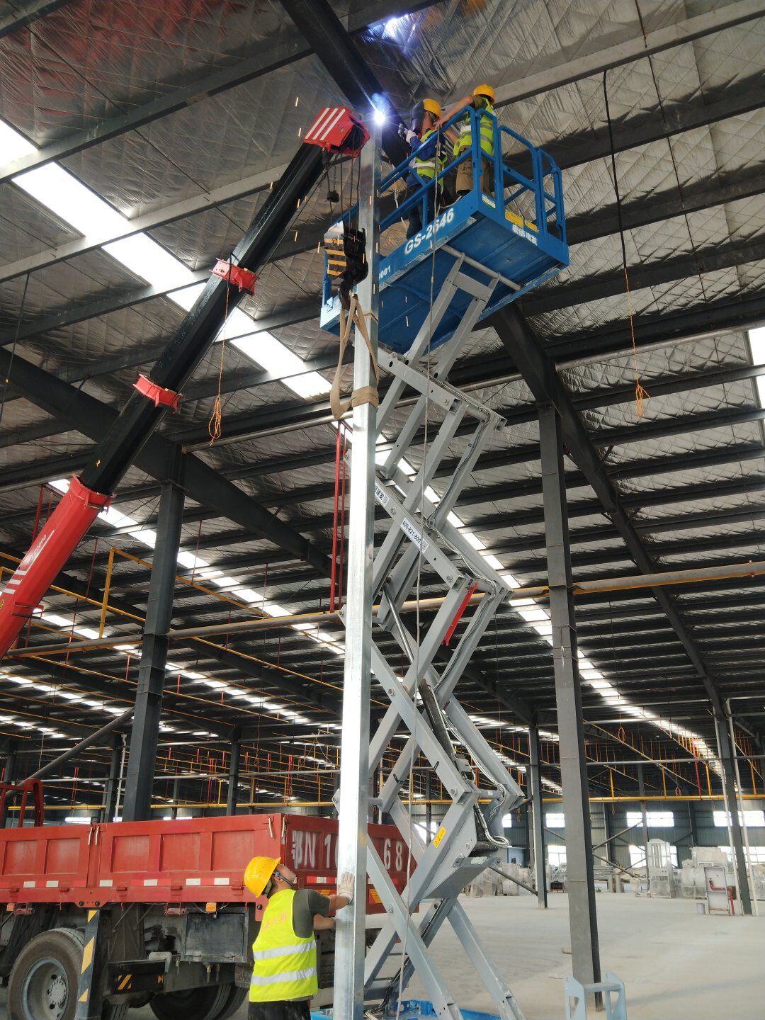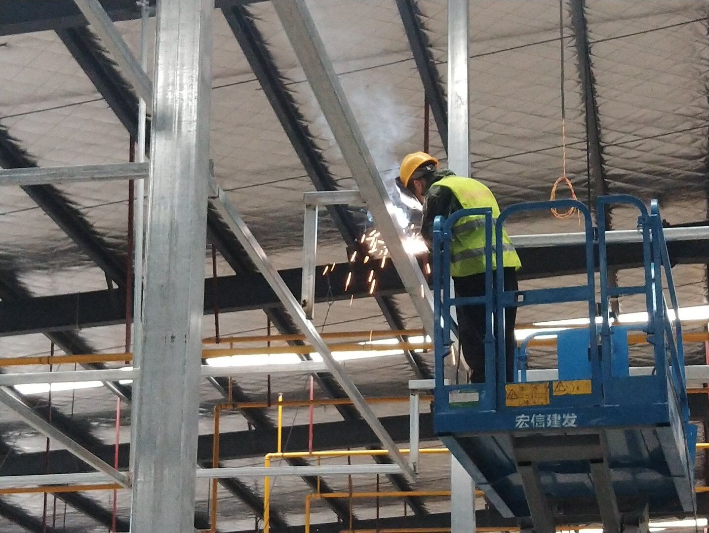 1、二次鋼構(gòu)連立柱橫梁完成,其鋼繩及角鋼牽引完成10%。