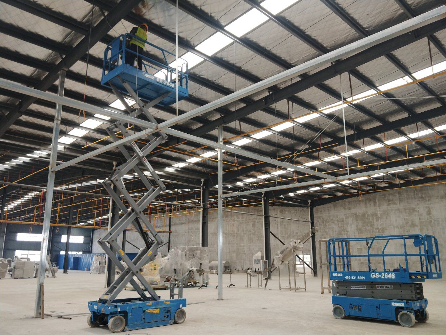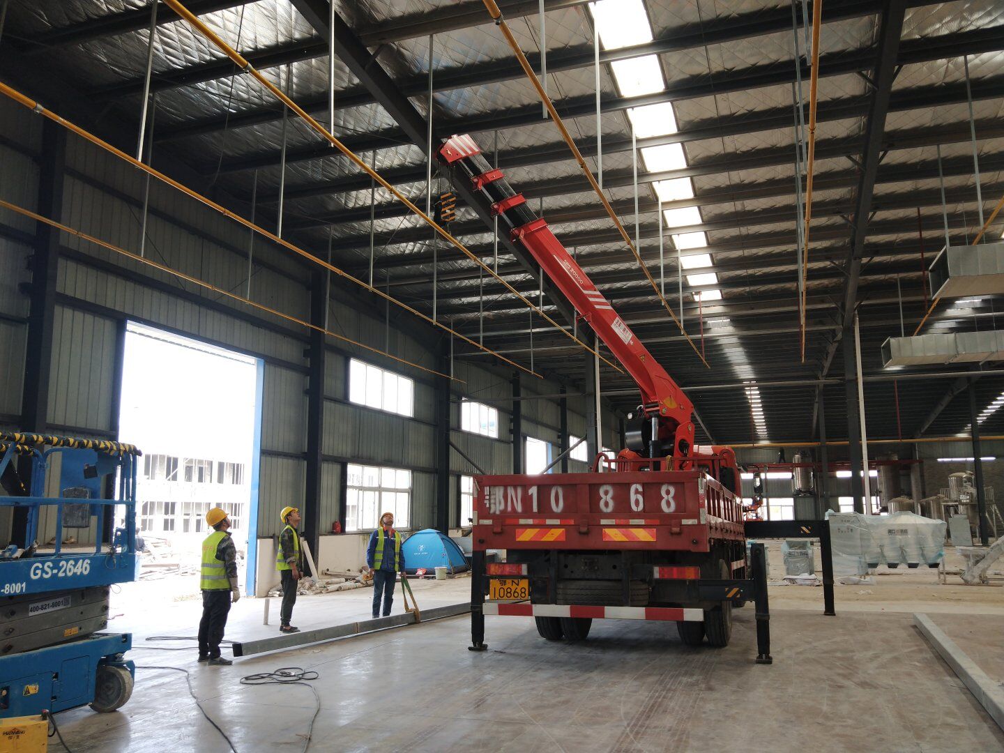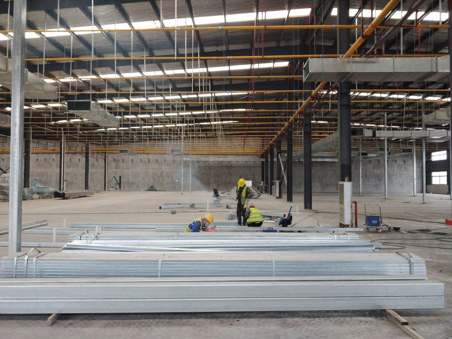 1,工礦燈安裝及配管穿線(xiàn)完成30% 飲片車(chē)間 1,彩鋼板頂板完成40% 2,5米高房間吸頂燈安裝完成。