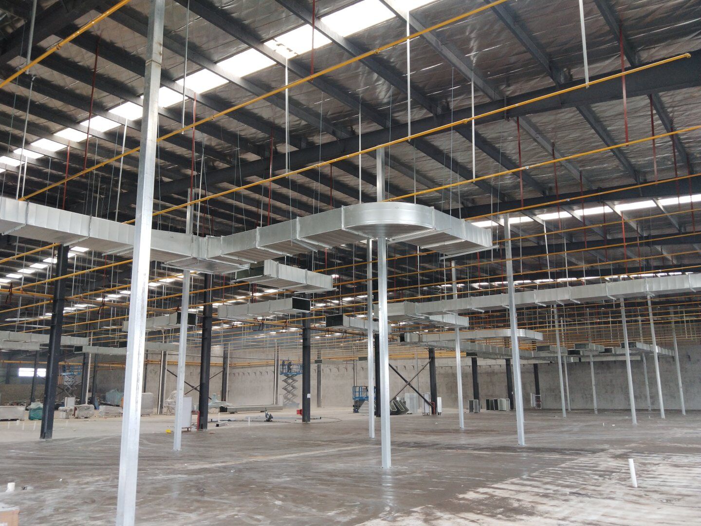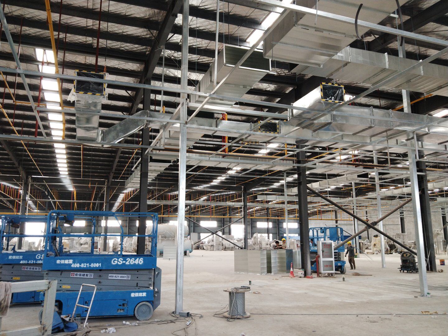 1,回風(fēng)夾道包板完成,圓弧完成50%; 2,風(fēng)管支管吊裝完成60%; 飲片車(chē)間: 1,二次鋼構(gòu)完成60%。