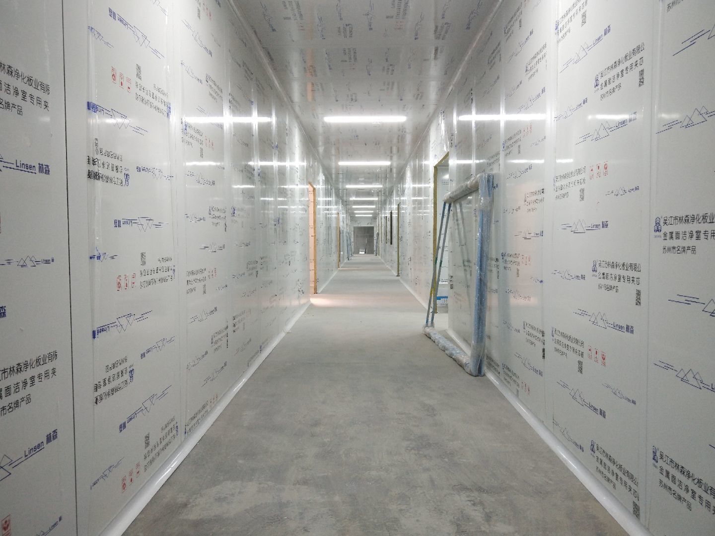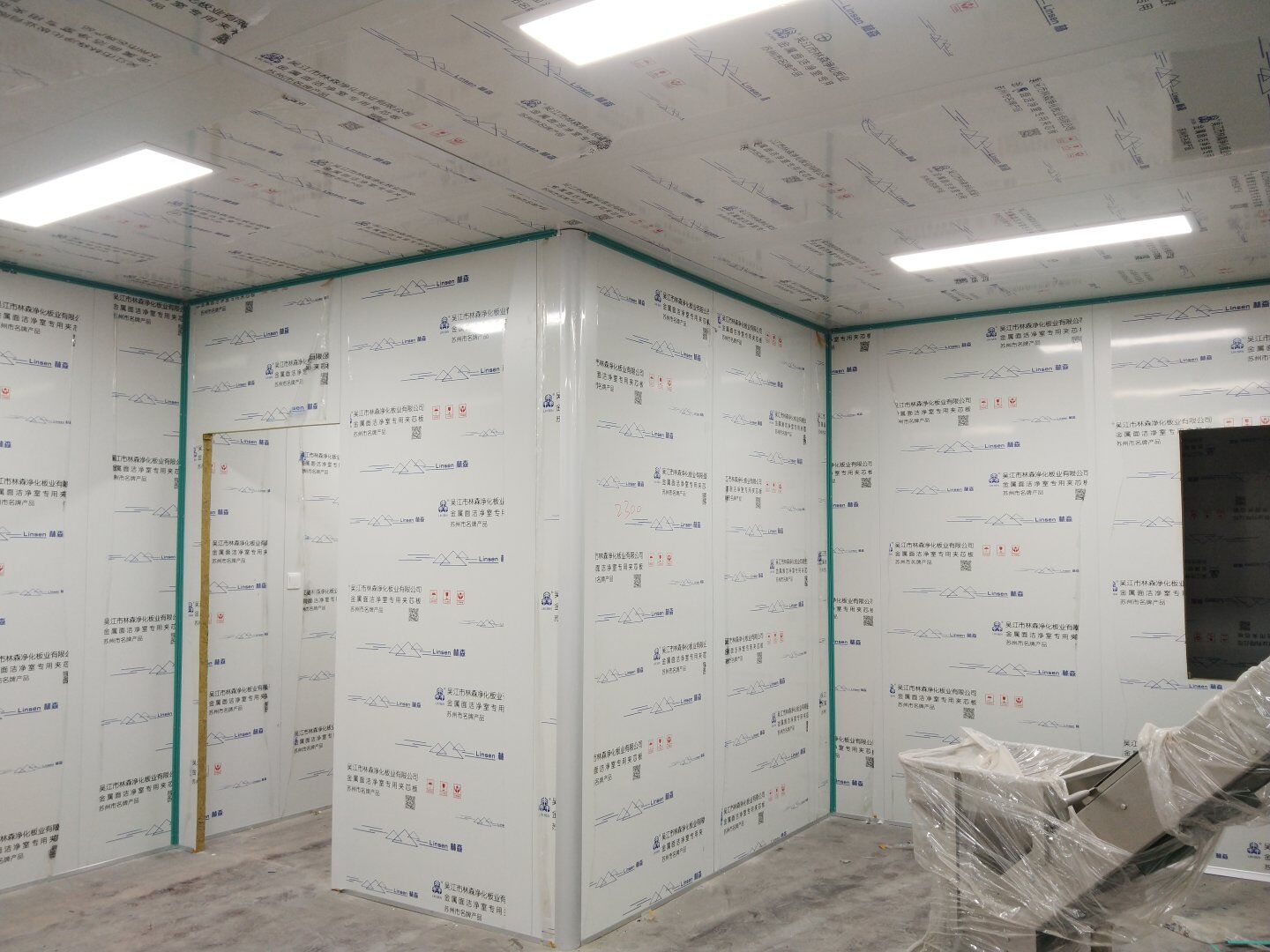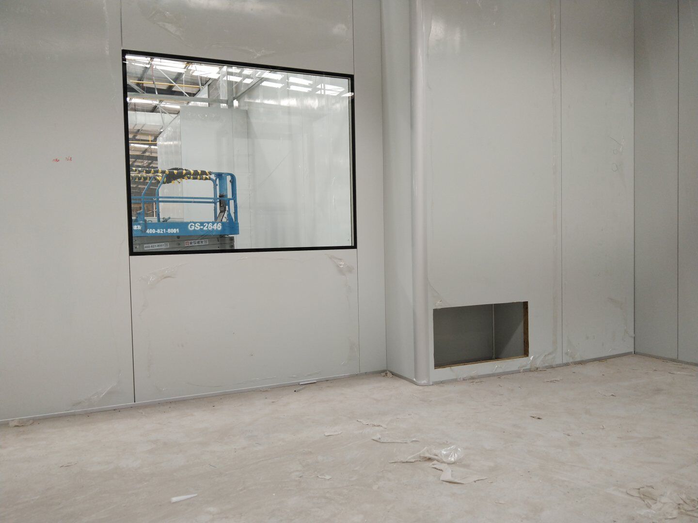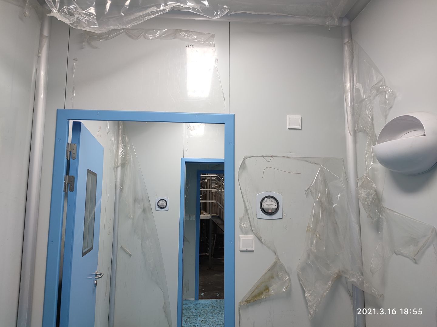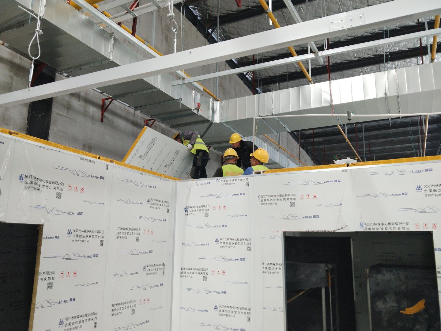 1,彩鋼板墻板完成75% 2,回風(fēng)夾道安裝,撕膜,打膠完成15% 3,潔凈窗安裝完成60%。