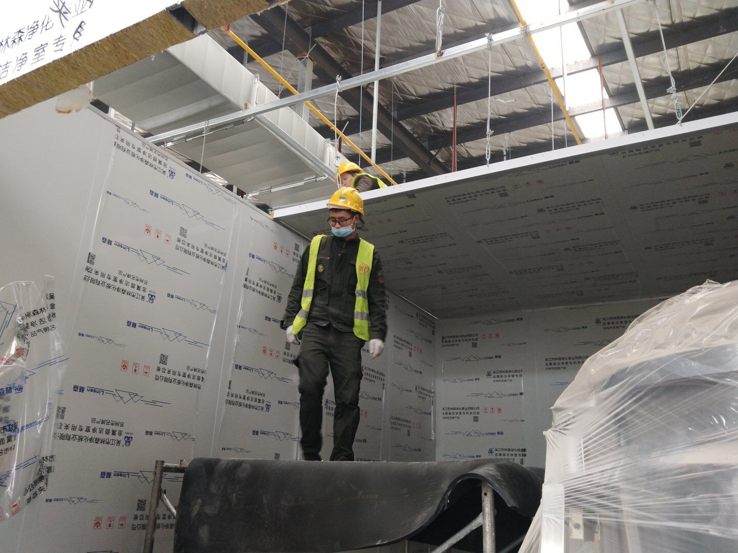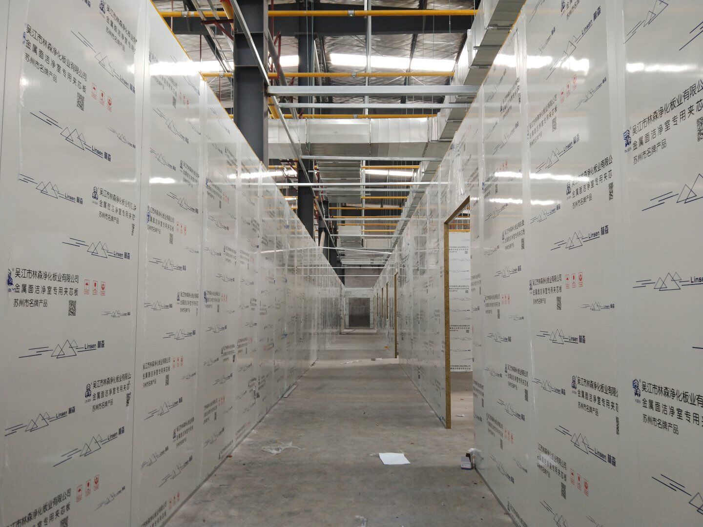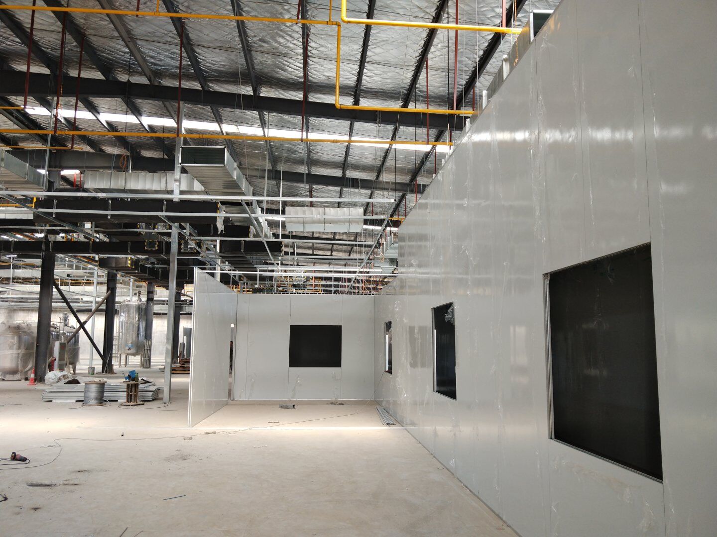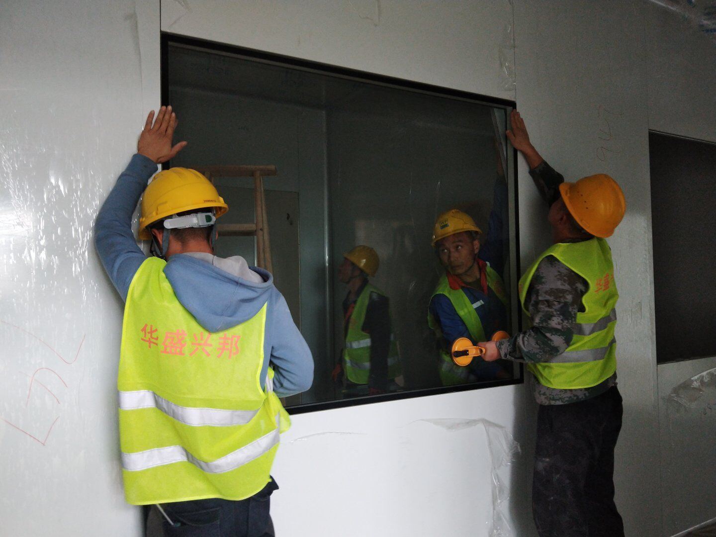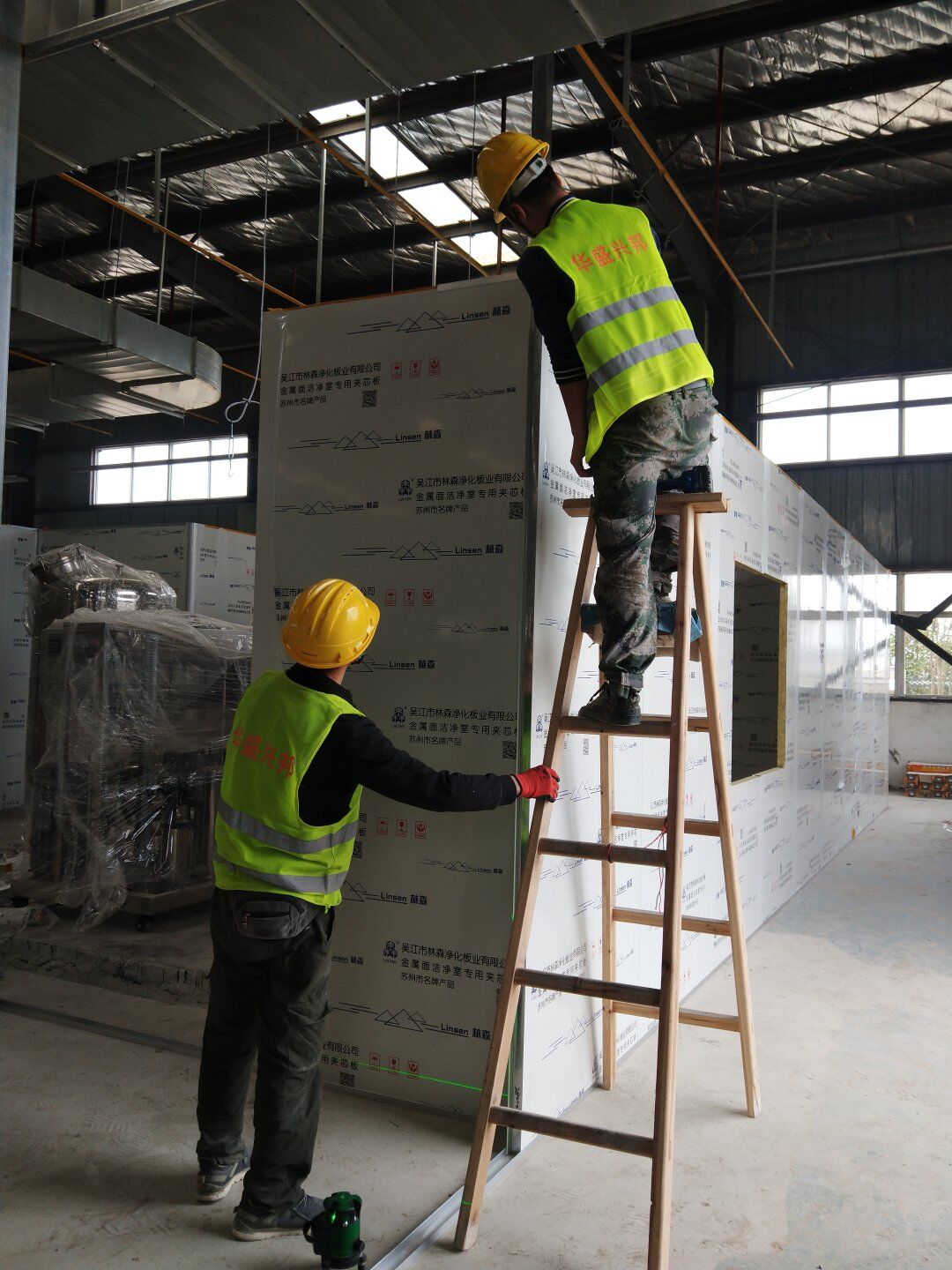 1,彩鋼板墻板完成75% 2,回風(fēng)夾道安裝,撕膜,打膠完成15% 3,潔凈窗安裝完成60%。