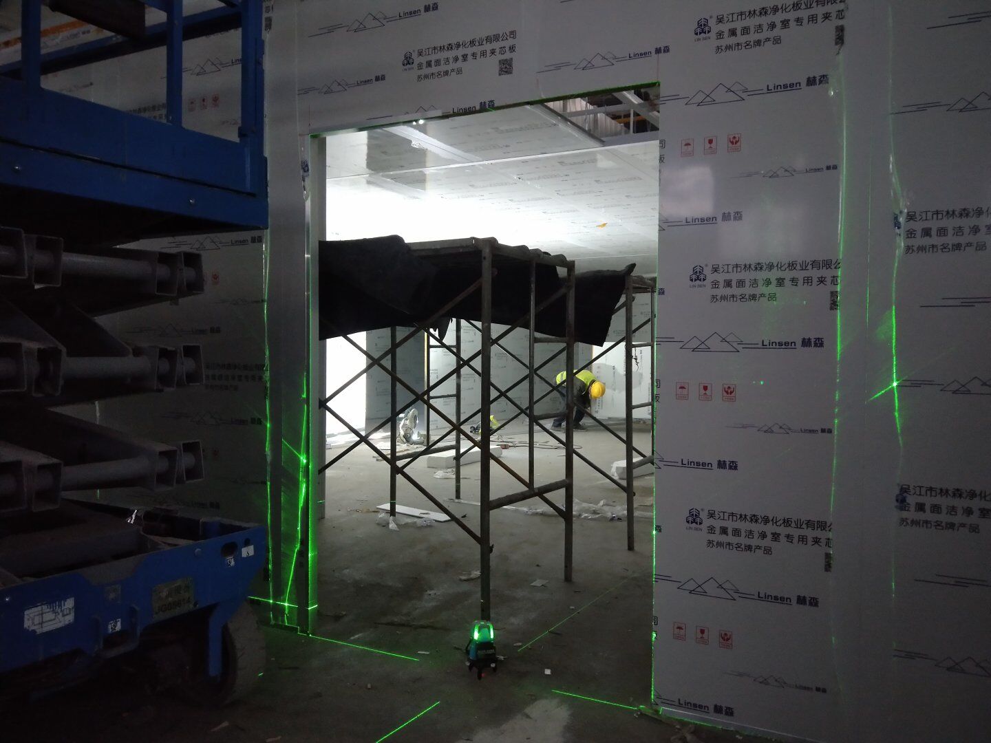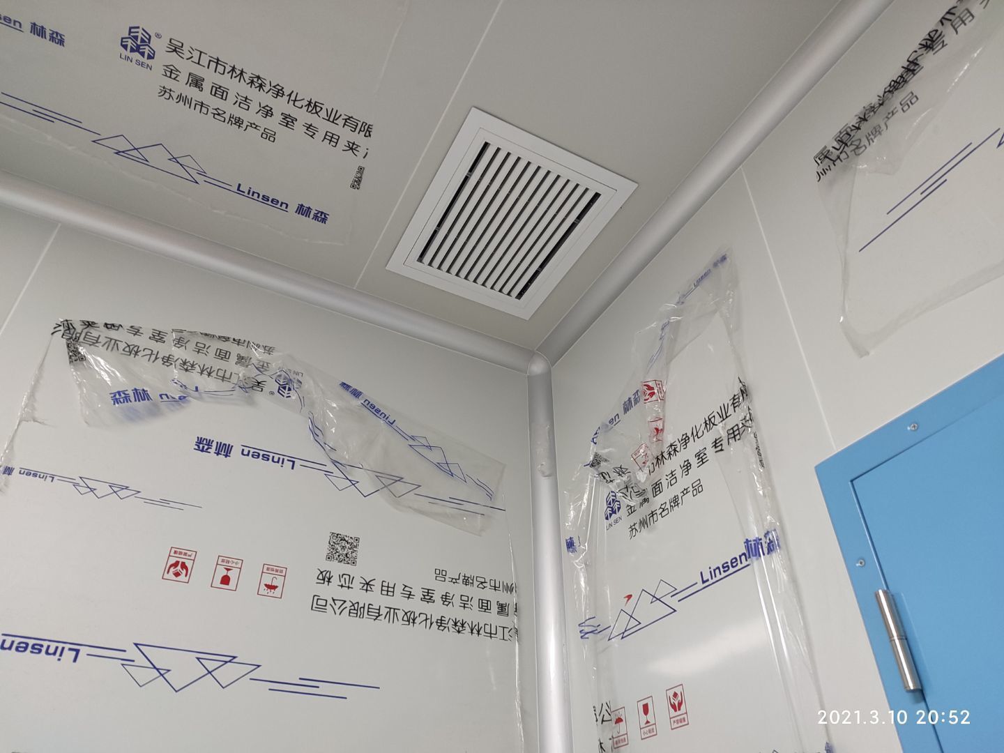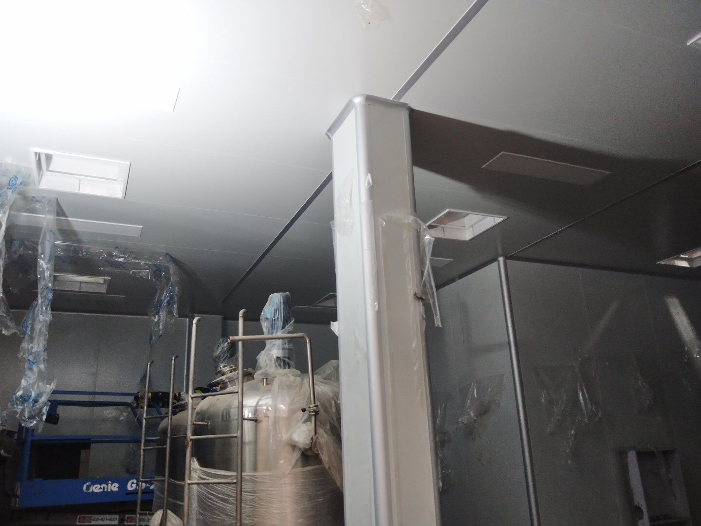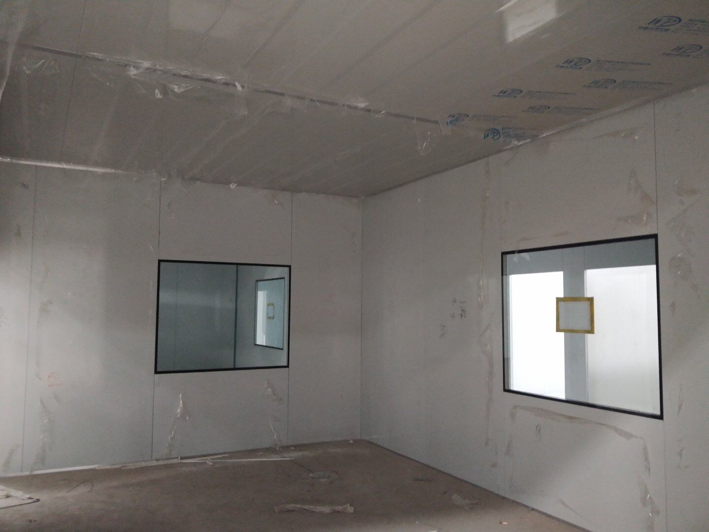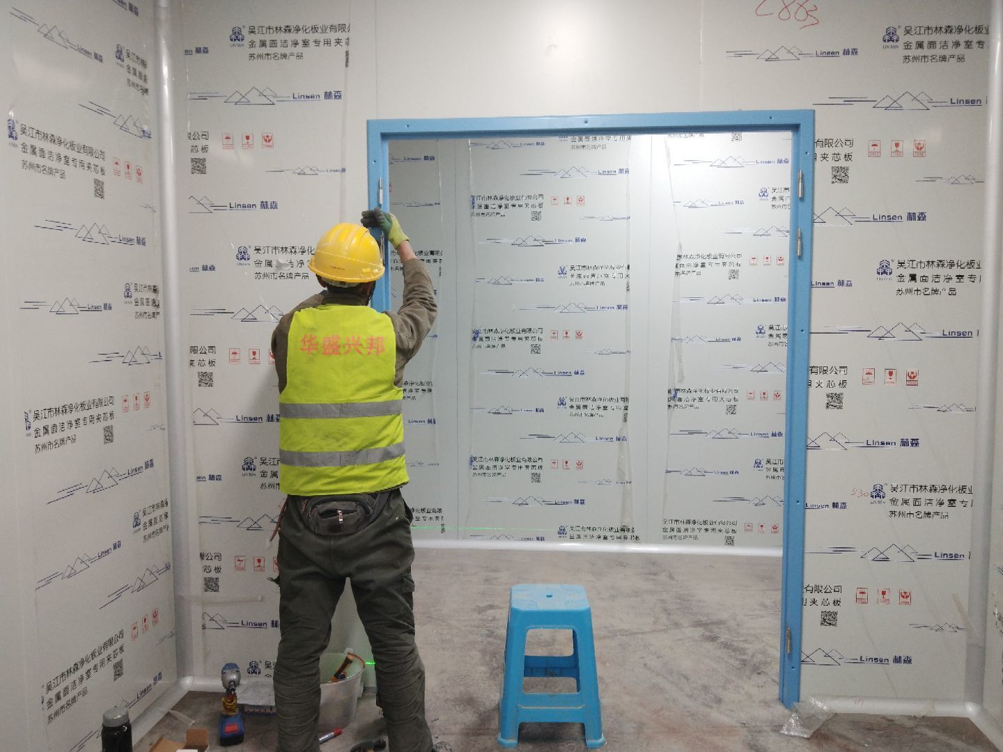 1,彩鋼板墻板完成75% 2,回風(fēng)夾道安裝,撕膜,打膠完成15% 3,潔凈窗安裝完成60%。