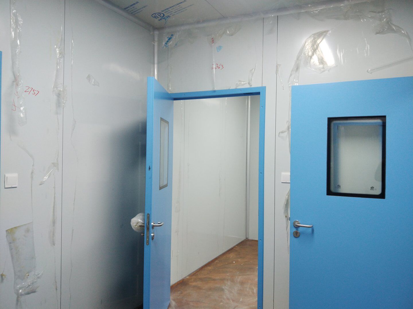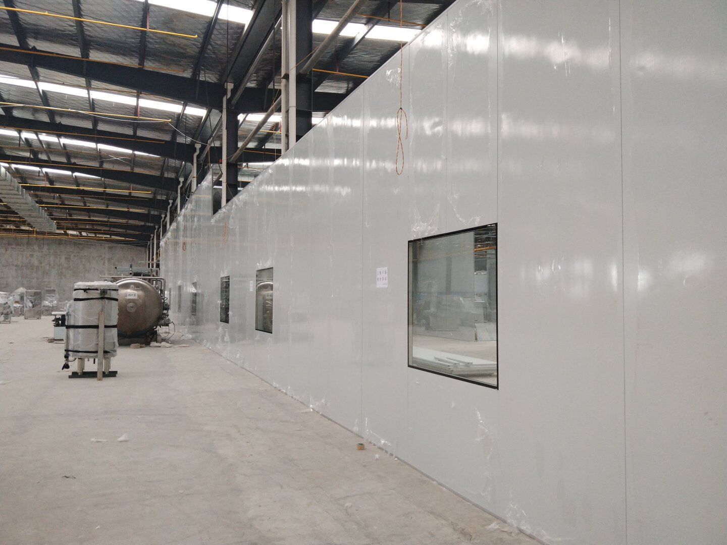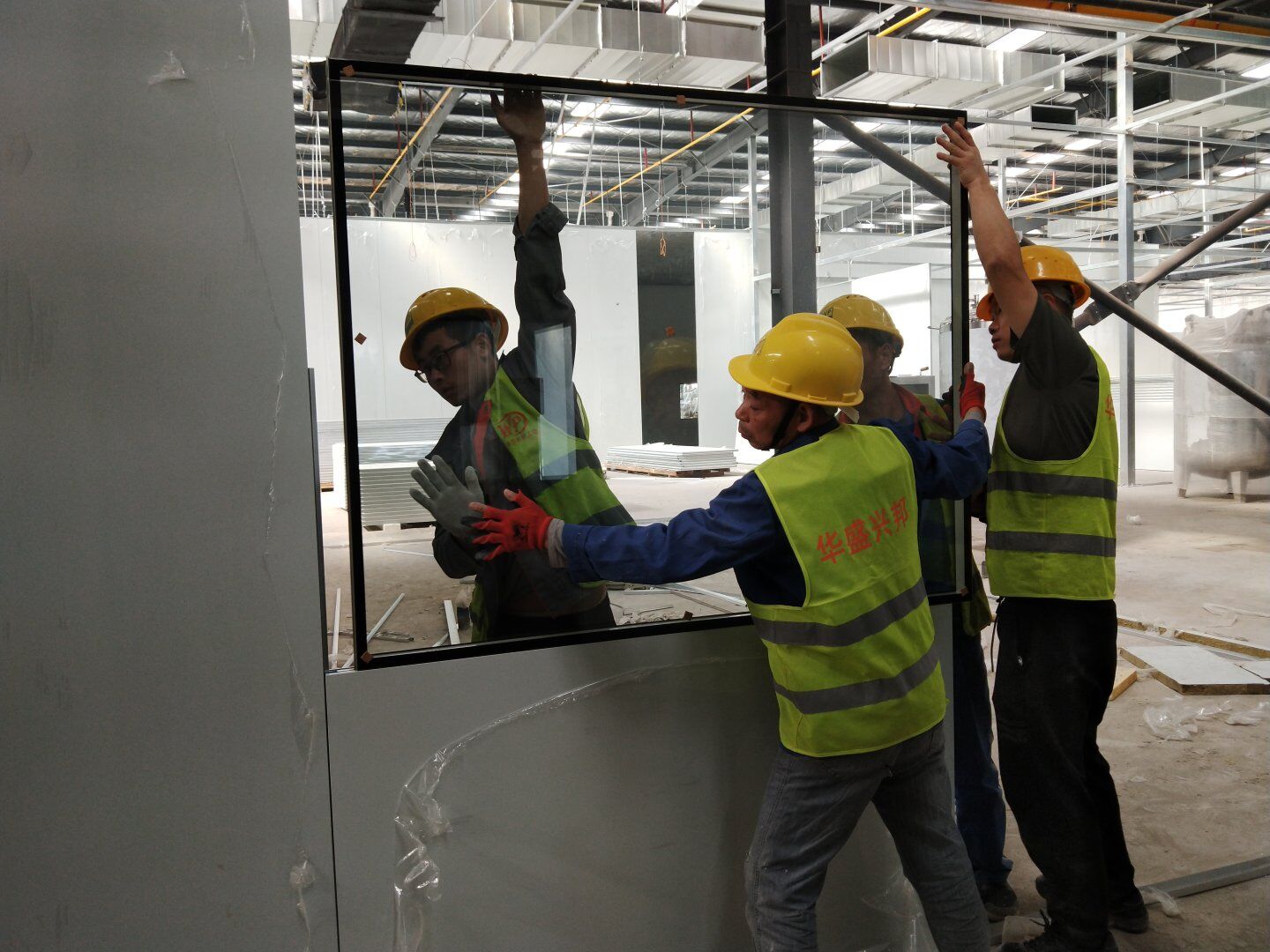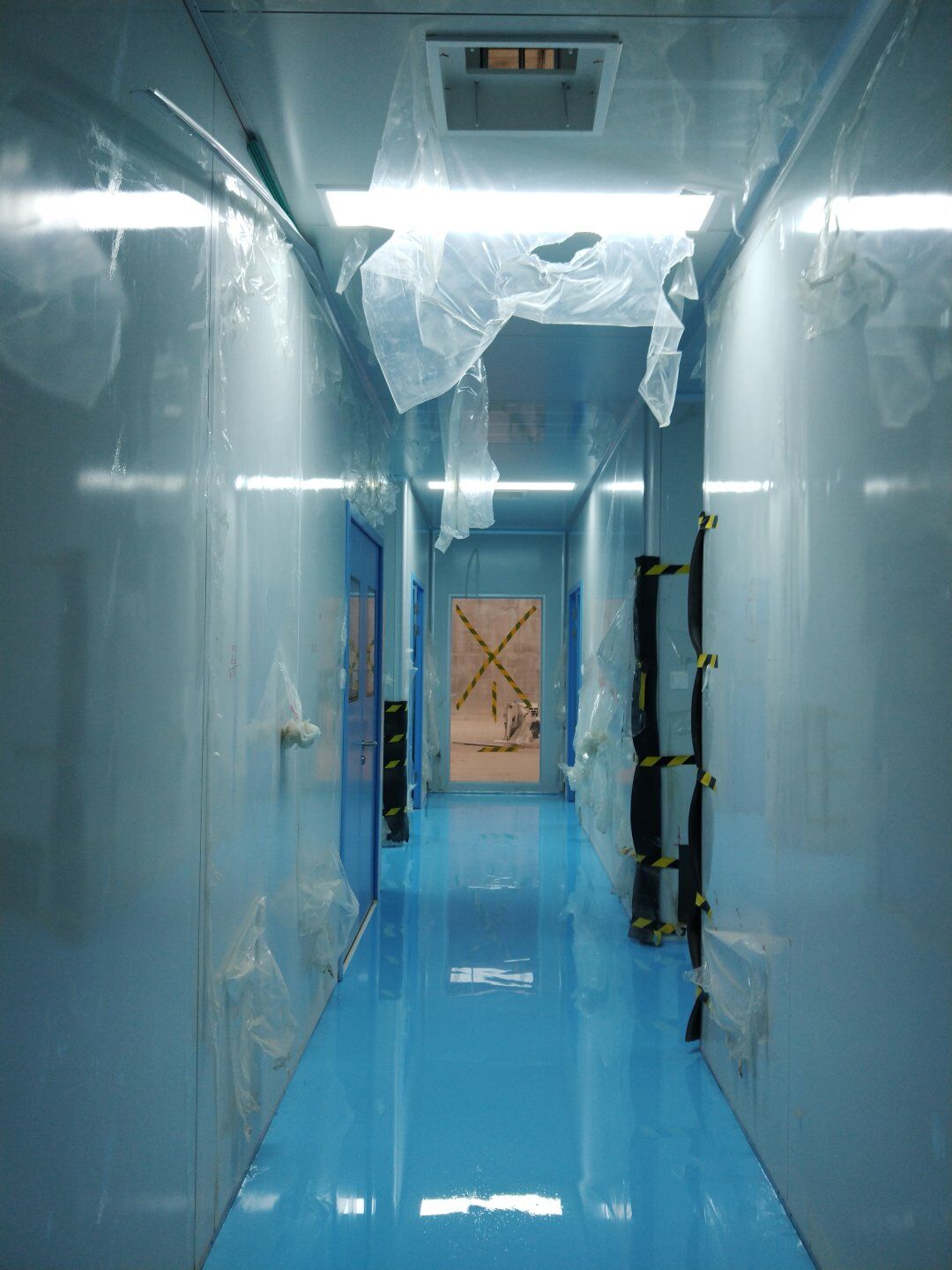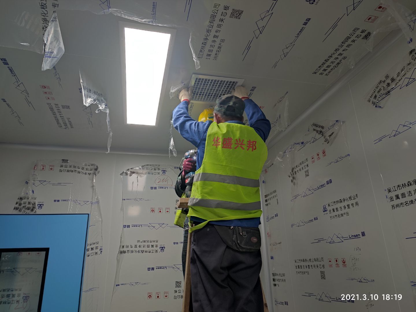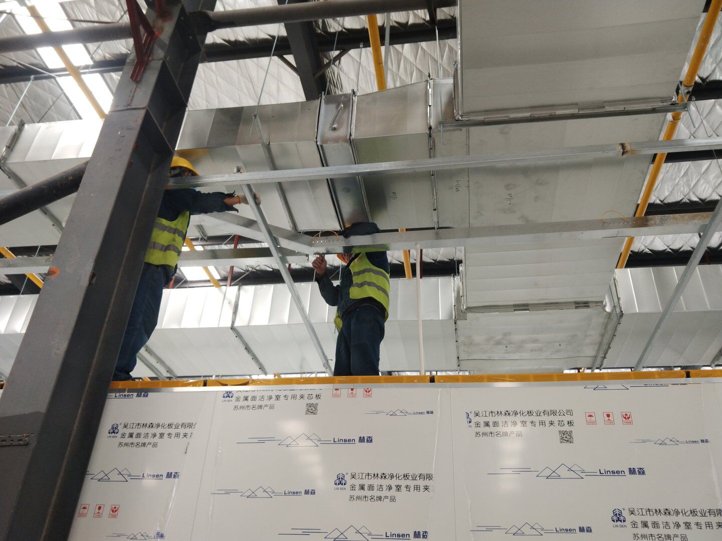 1,彩鋼板墻板完成75% 2,回風(fēng)夾道安裝,撕膜,打膠完成15% 3,潔凈窗安裝完成60%。