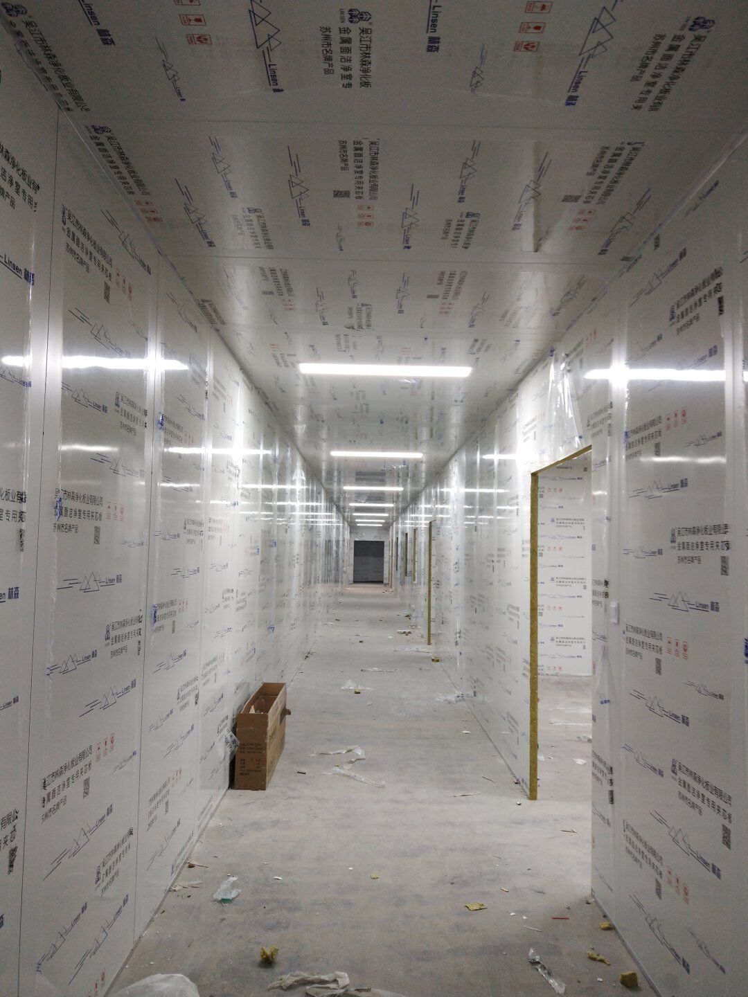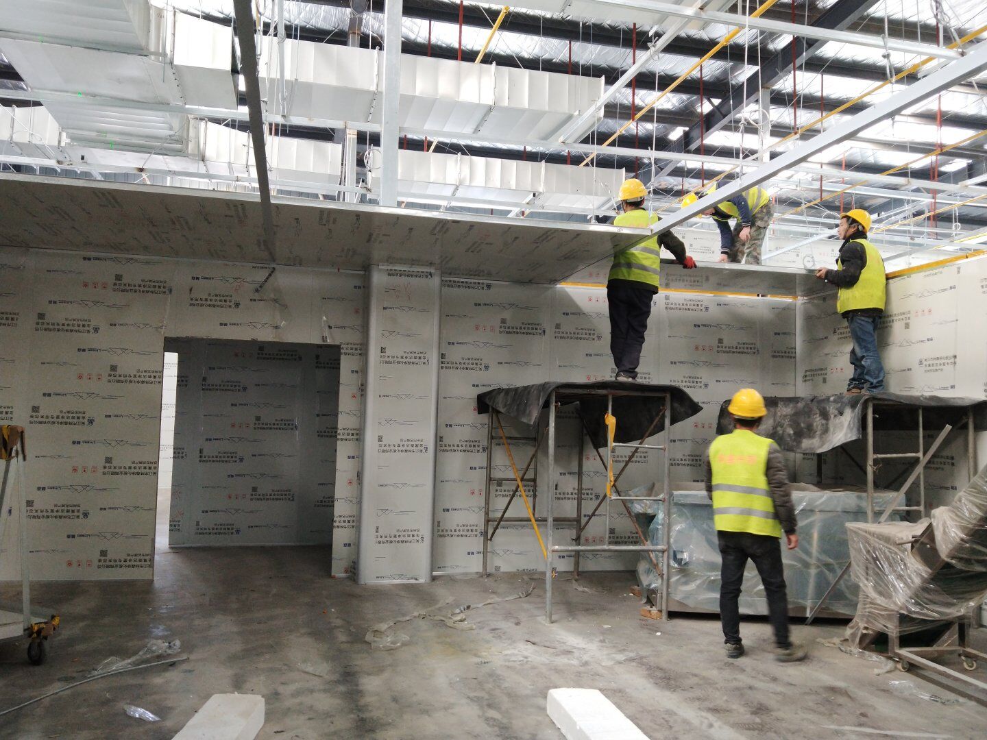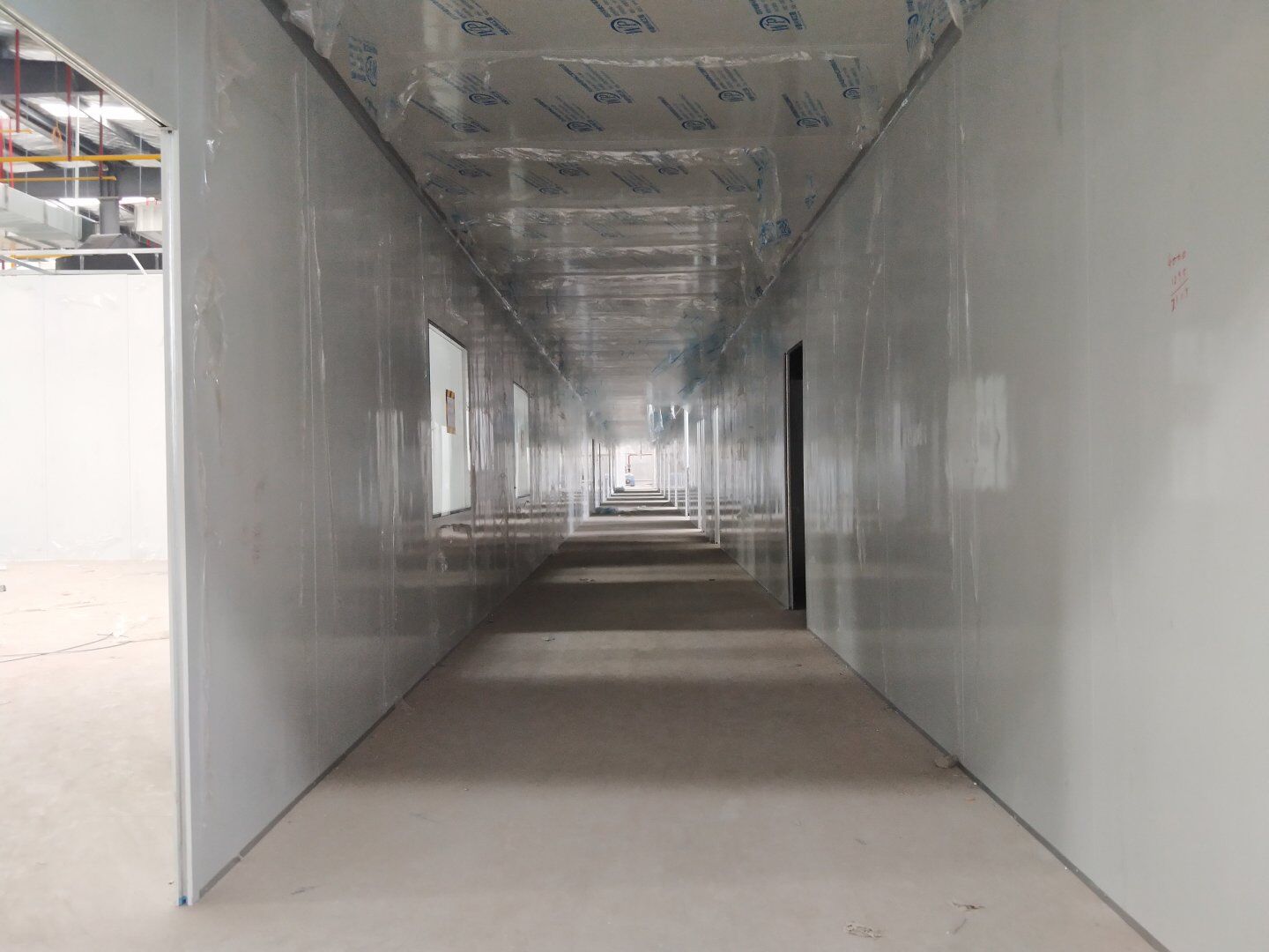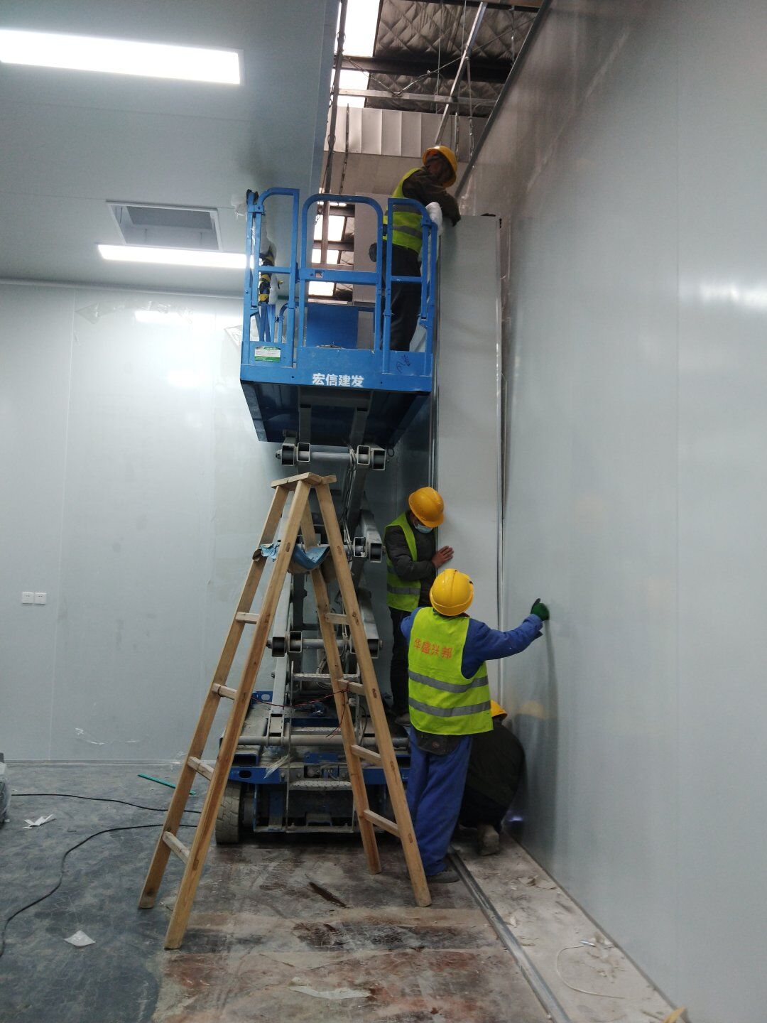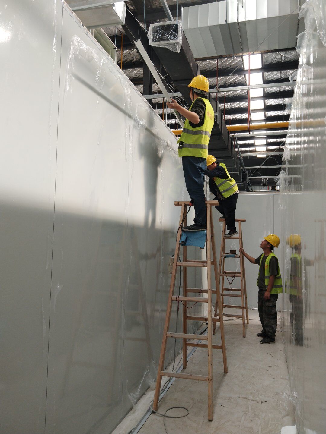1,彩鋼板墻板完成75% 2,回風(fēng)夾道安裝,撕膜,打膠完成15% 3,潔凈窗安裝完成60%。
