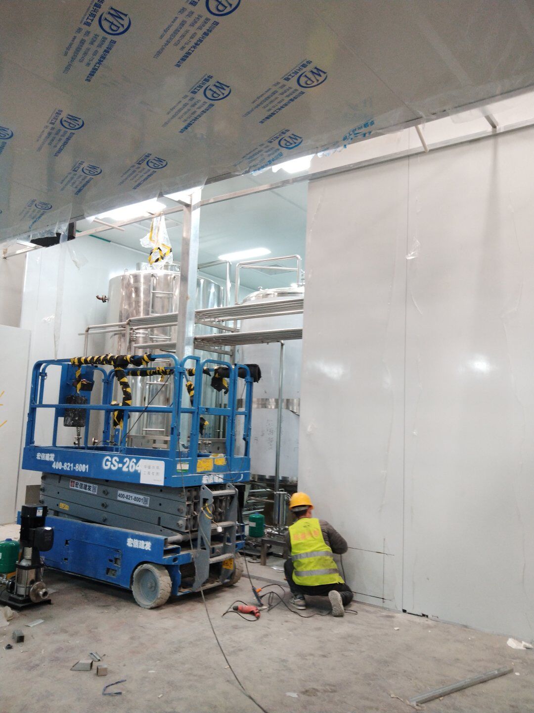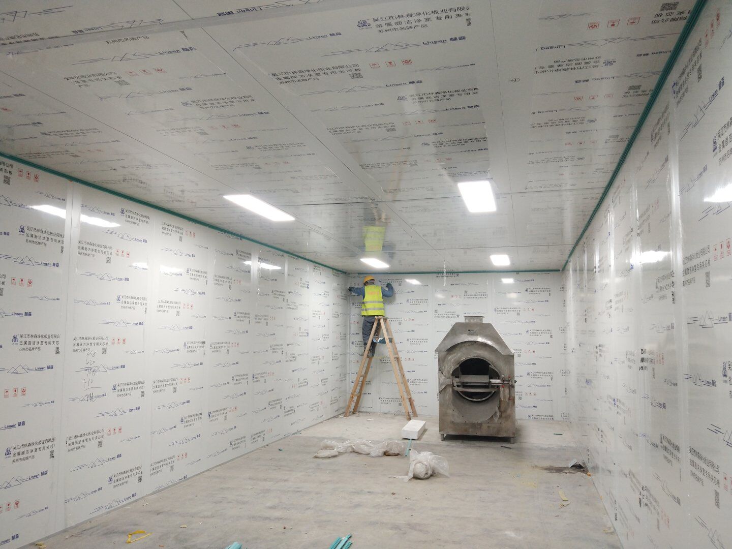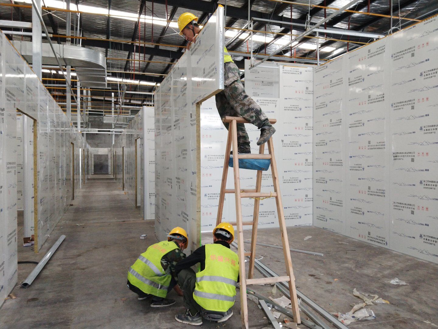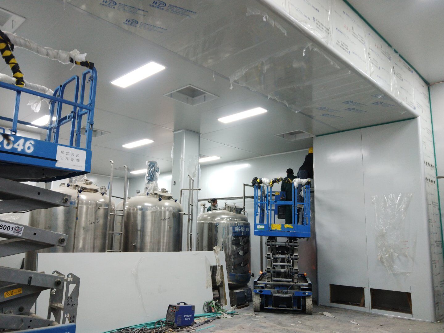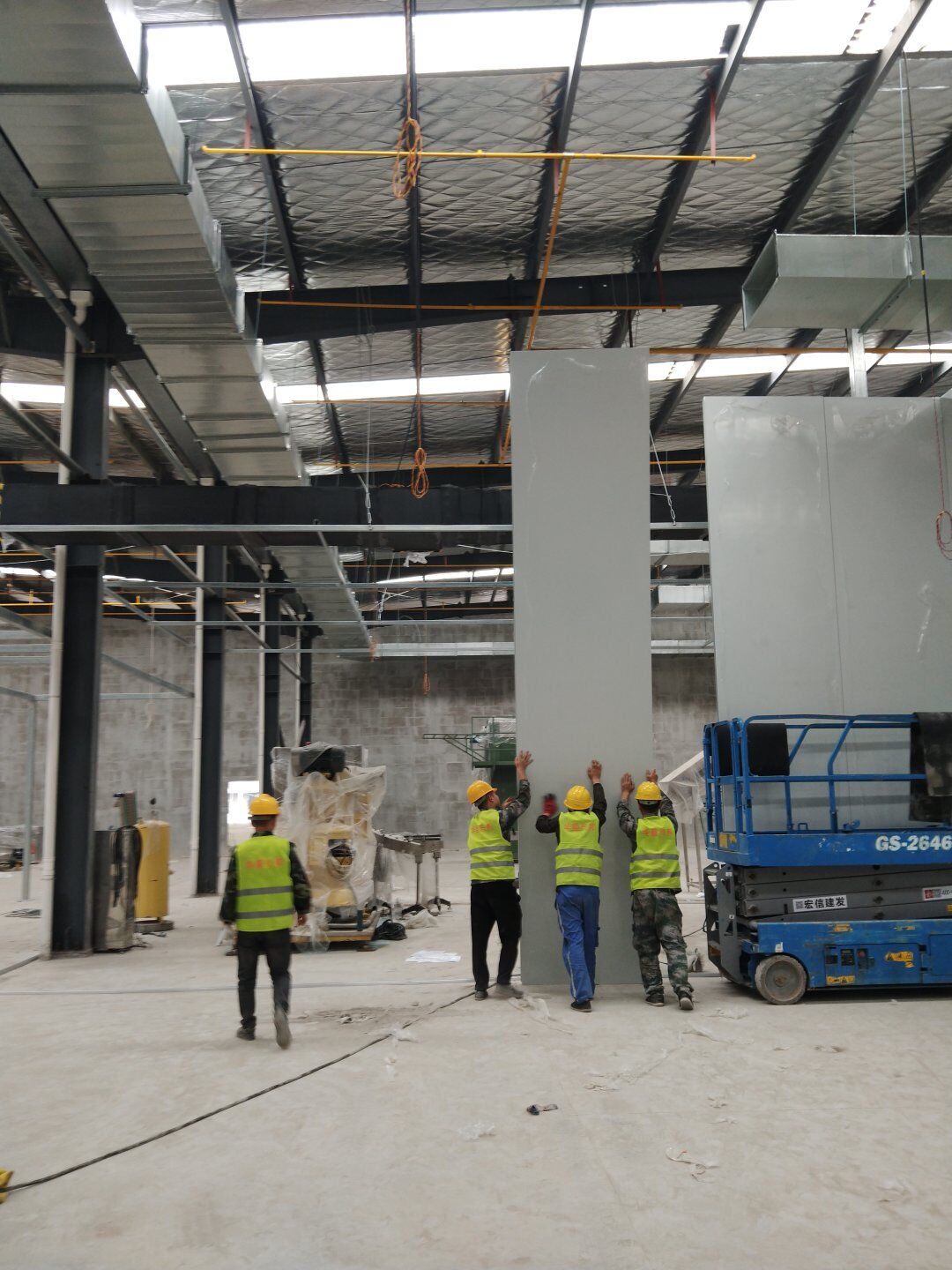1,彩鋼板墻板完成75% 2,回風(fēng)夾道安裝,撕膜,打膠完成15% 3,潔凈窗安裝完成60%。