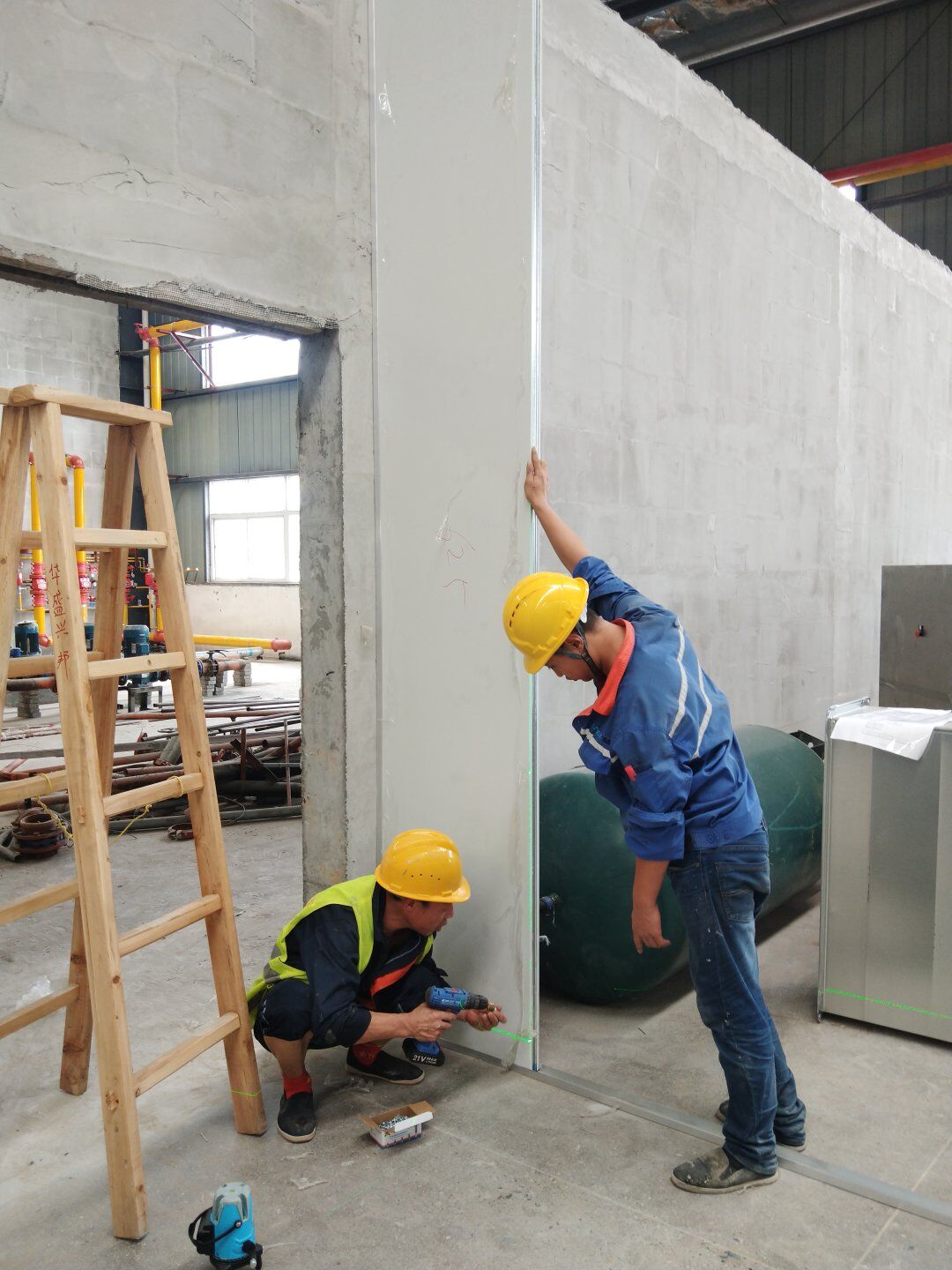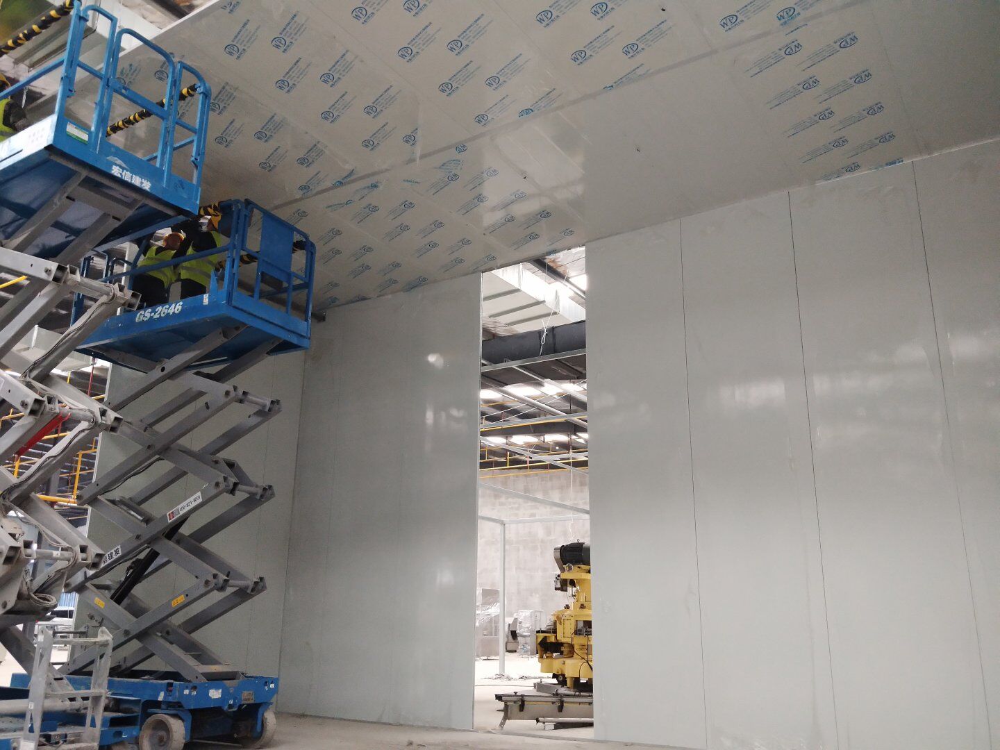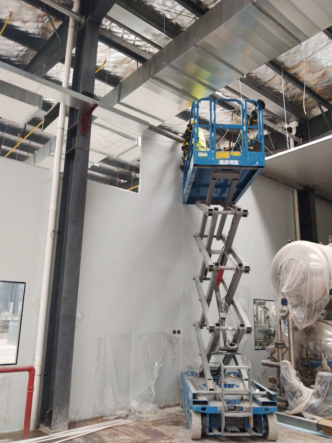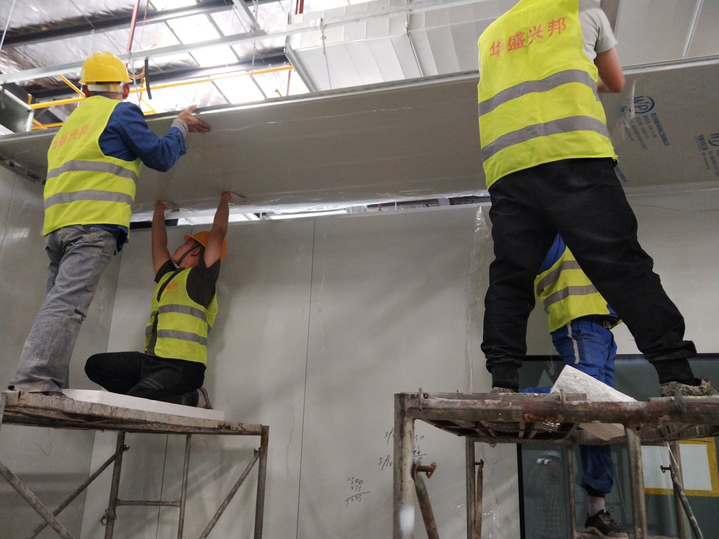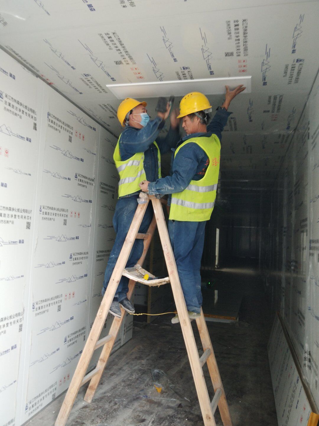 1,彩鋼板墻板完成75% 2,回風(fēng)夾道安裝,撕膜,打膠完成15% 3,潔凈窗安裝完成60%。