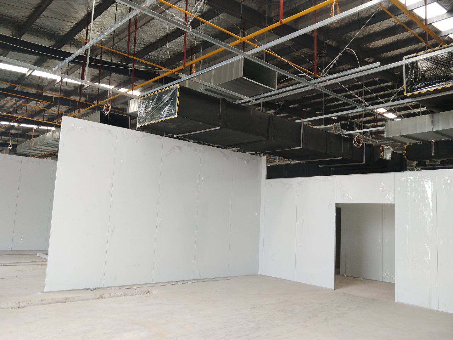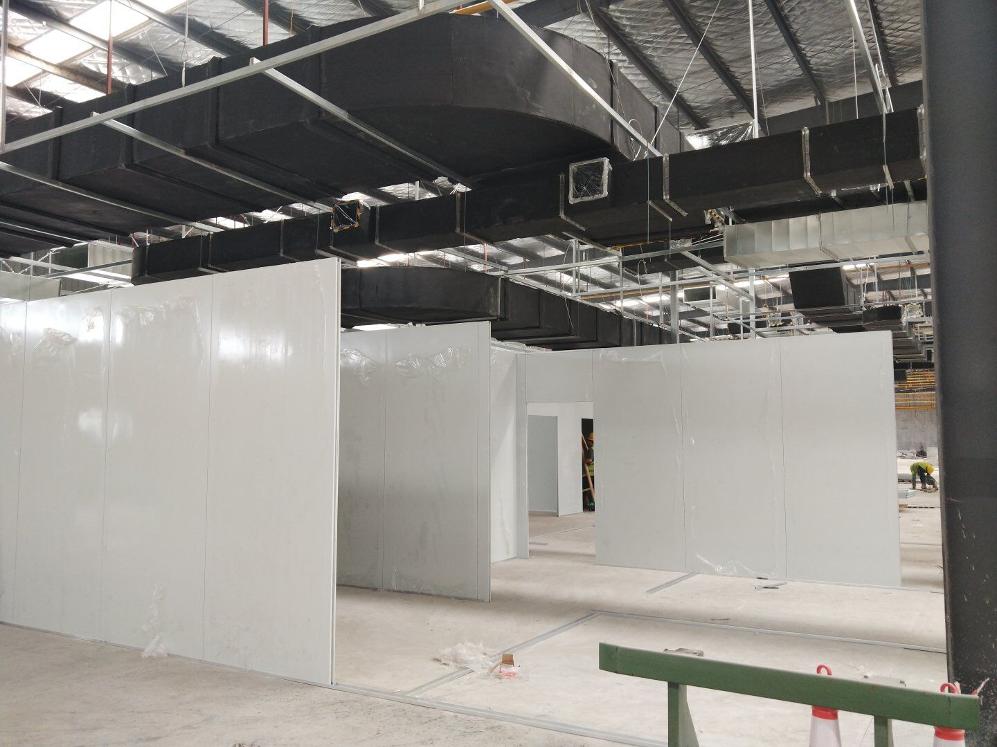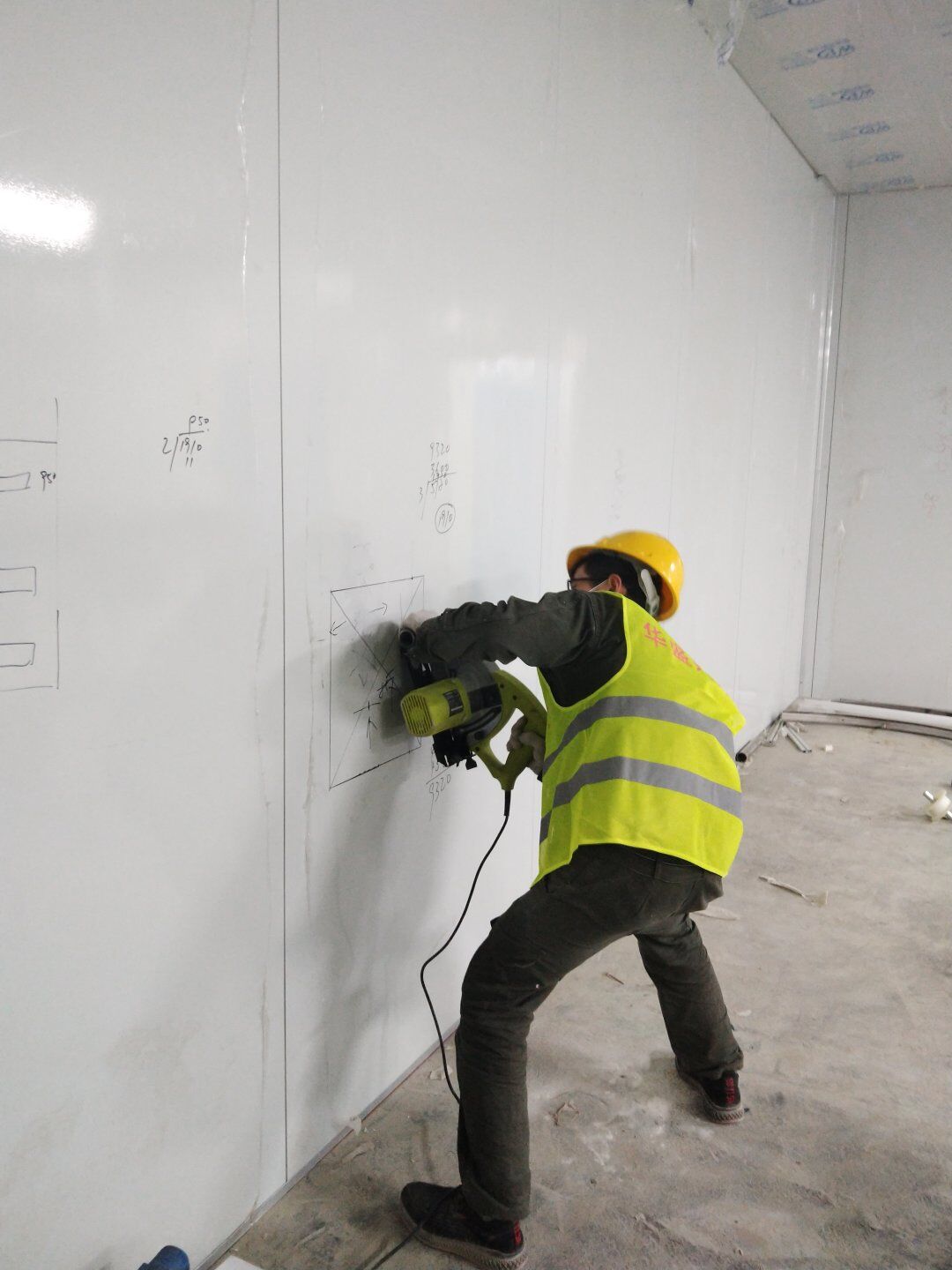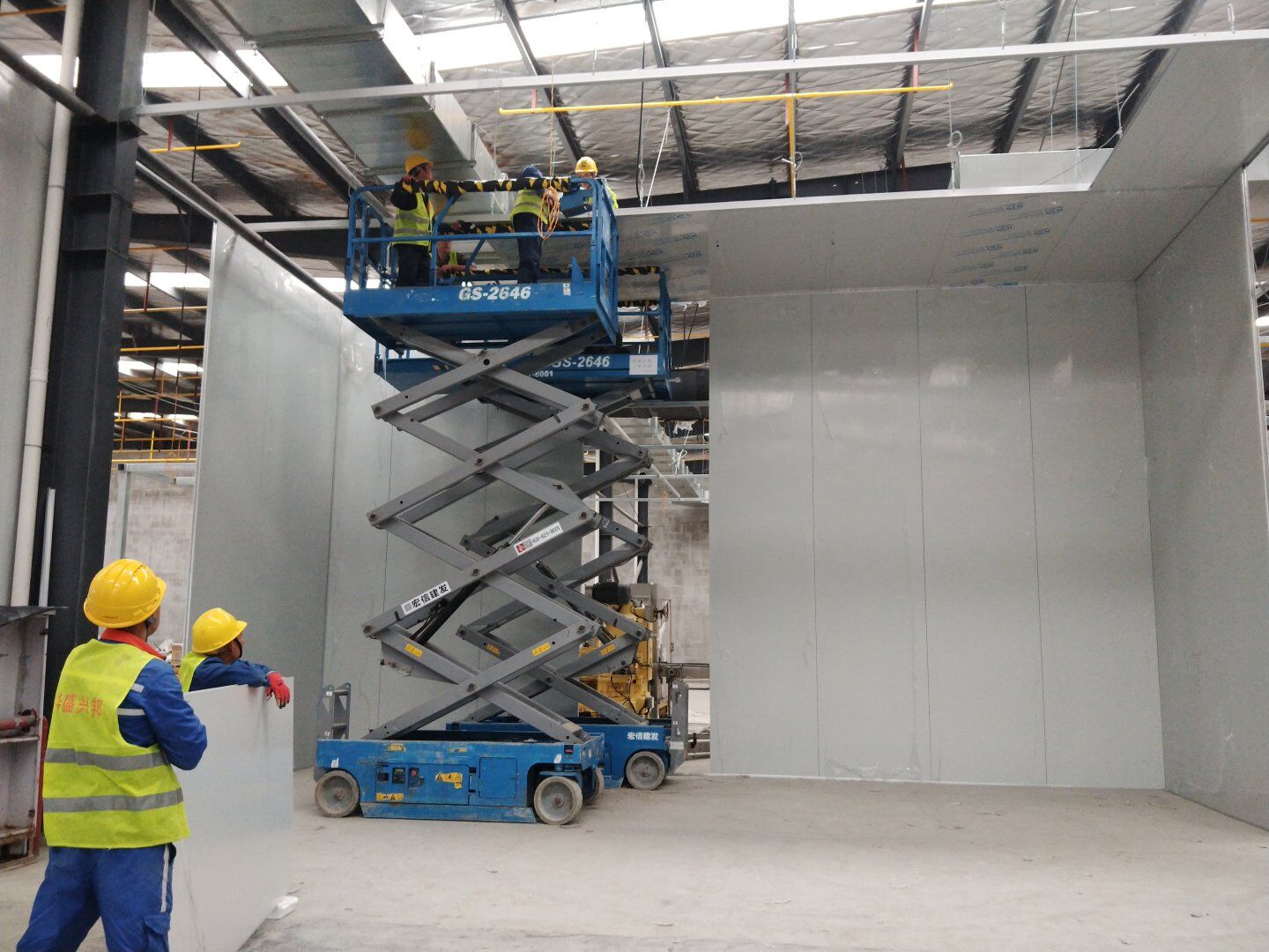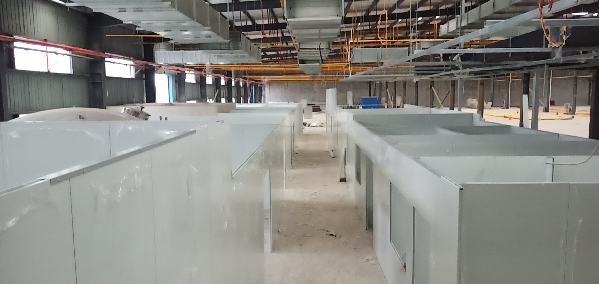 1,彩鋼板墻板完成75% 2,回風(fēng)夾道安裝,撕膜,打膠完成15% 3,潔凈窗安裝完成60%。