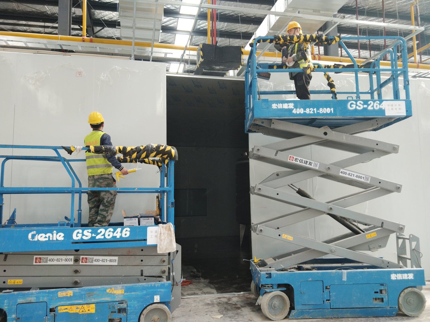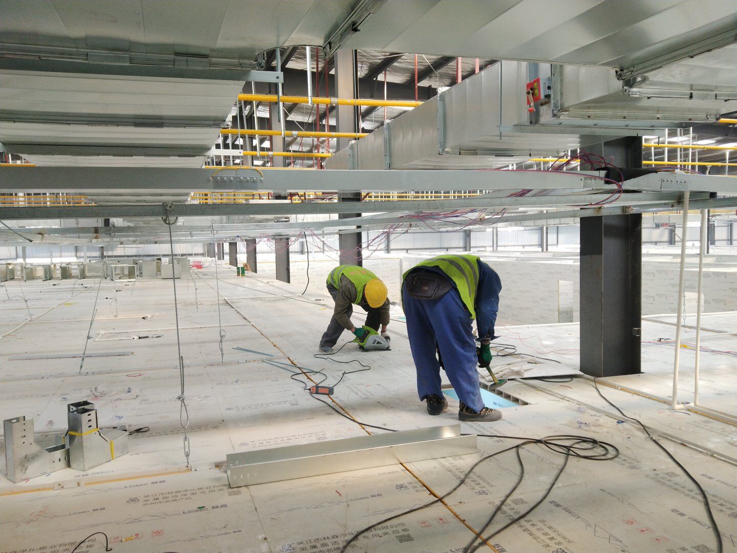 1,除設(shè)備預(yù)留通道外墻板完成, 2,頂板完成80%, 3,風(fēng)管支管扣管完成30%