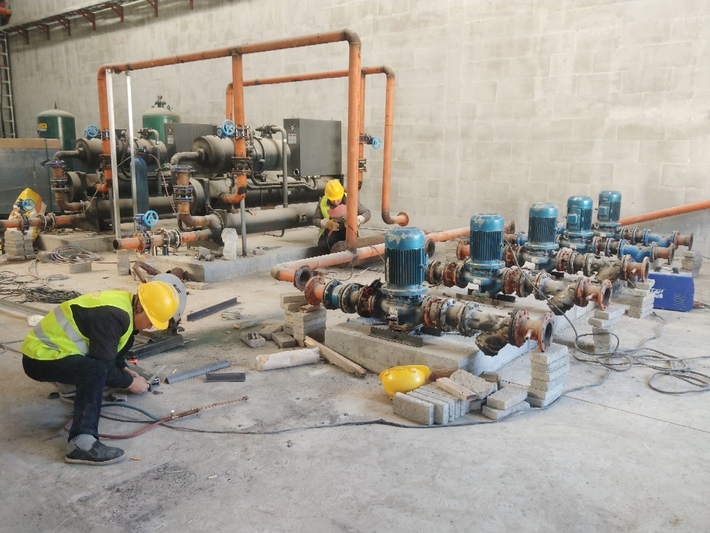 液體車(chē)間: 1,空調(diào)水管保溫完成70% 2,微壓差計(jì)安裝完成,傳遞窗安裝完成; 3,碰頭風(fēng)管按系統(tǒng)歸類(lèi)完成70%,準(zhǔn)備清洗。 飲片車(chē)間: 1,空調(diào)水管滲水處補(bǔ)漏完成,模塊機(jī)溫感探頭,水流開(kāi)關(guān)安裝完成; 2,空調(diào)風(fēng)管保溫完成75%