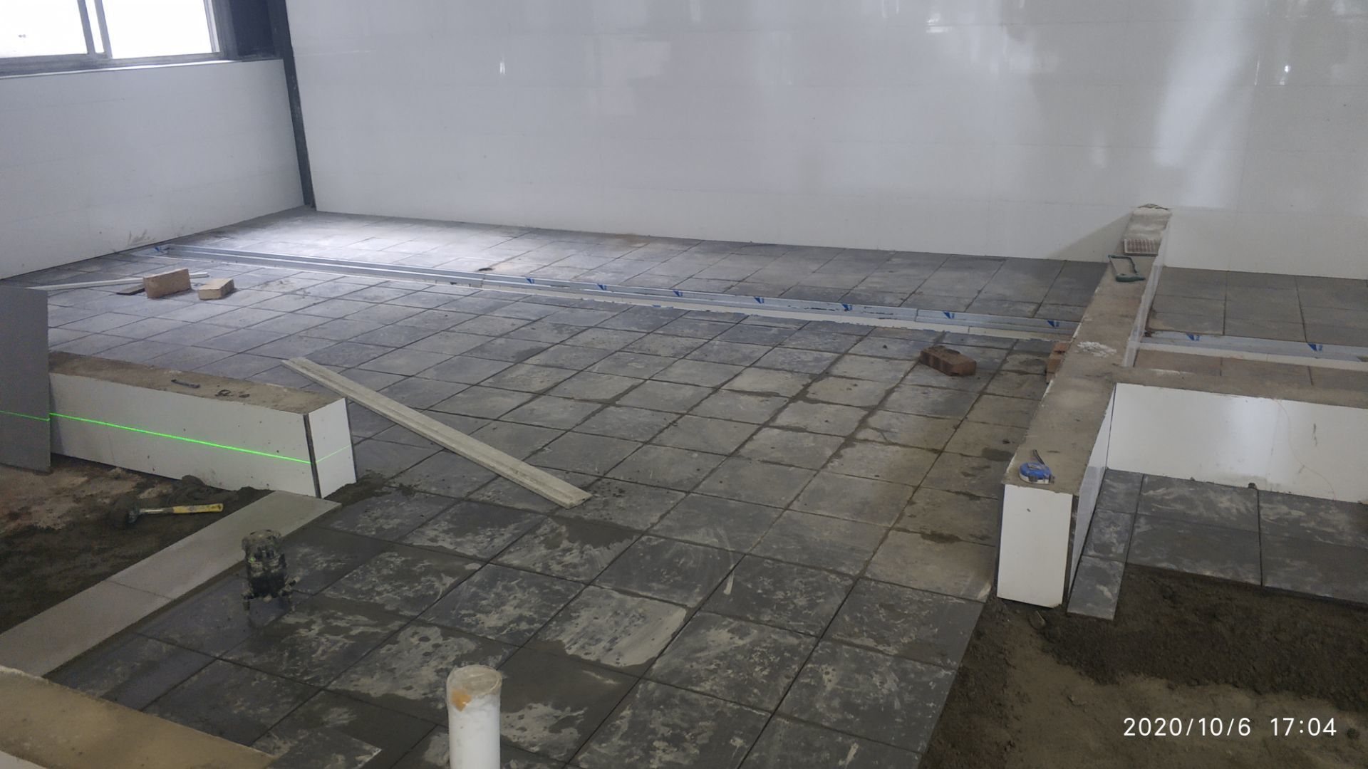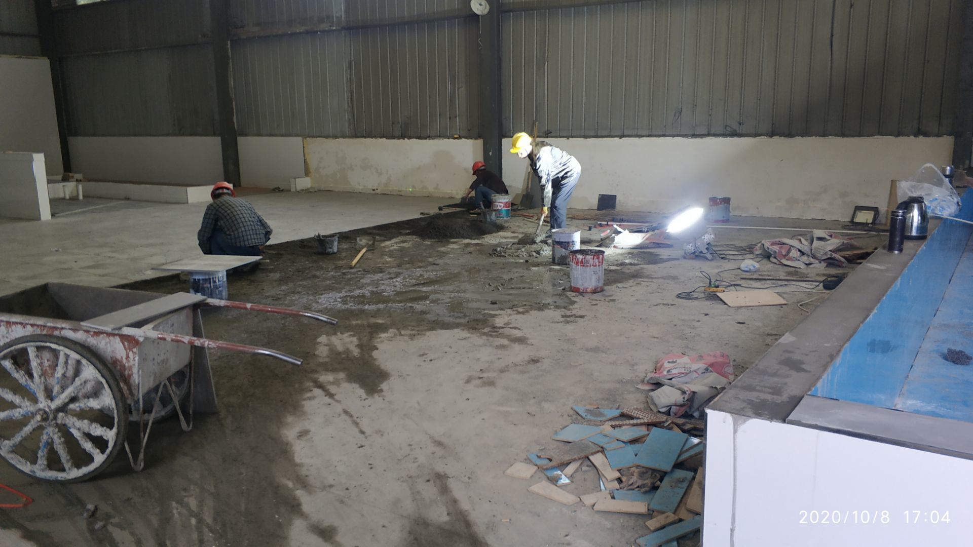1.地面瓷磚鋪貼完成百分之八十。 2.凍庫墻板安裝施工完成百分之五。