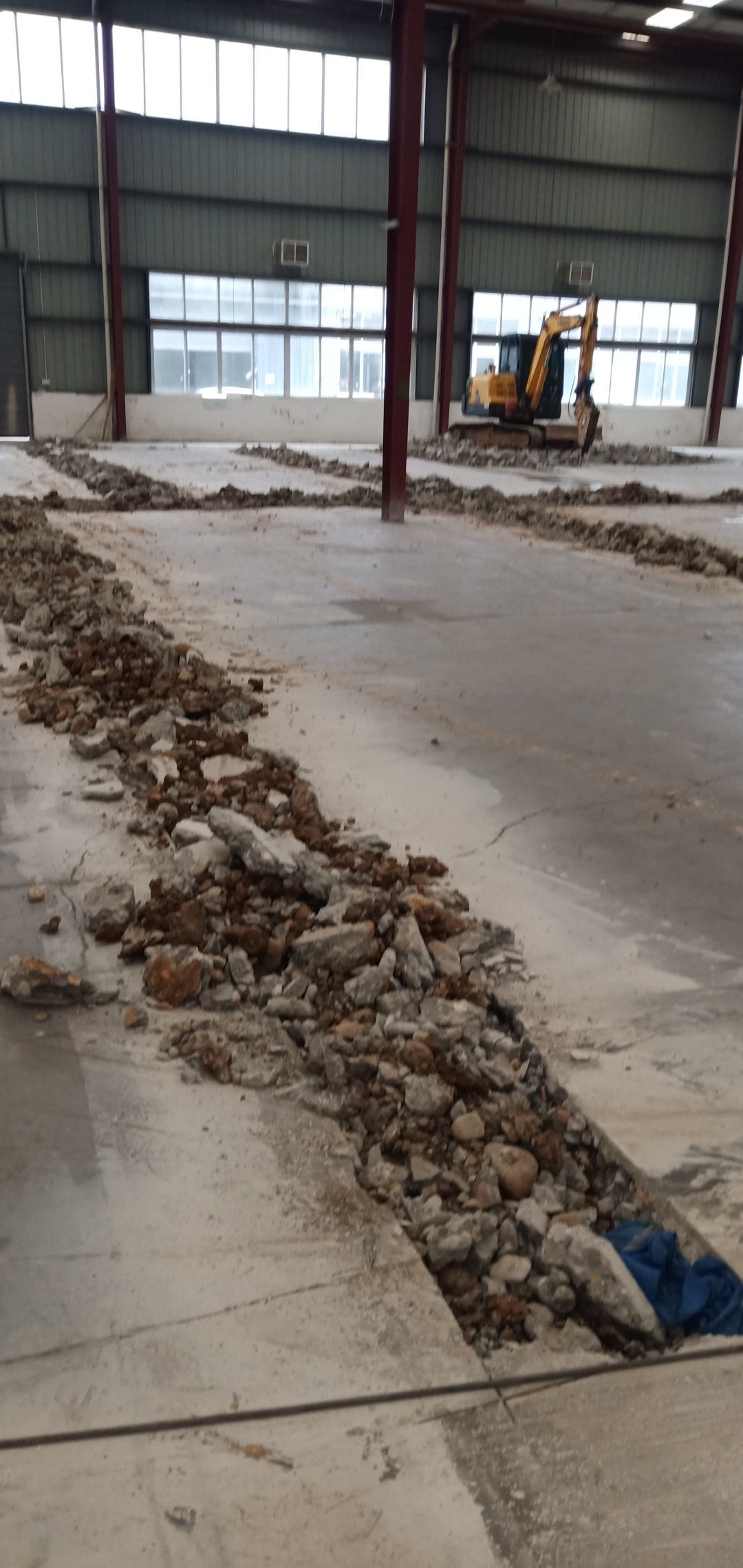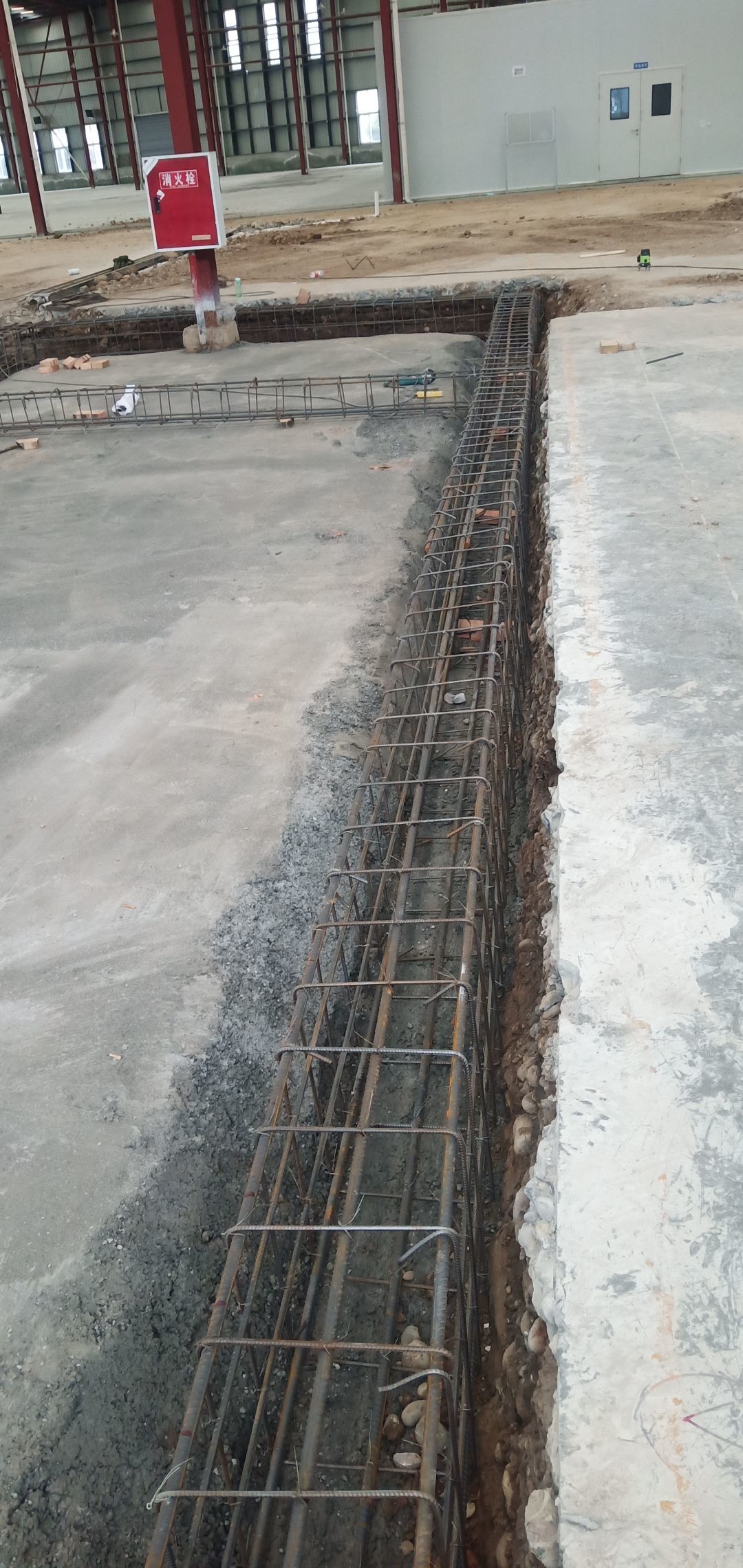 切縫施工完成,挖排水管溝施工完成,剛結構基礎施工完成