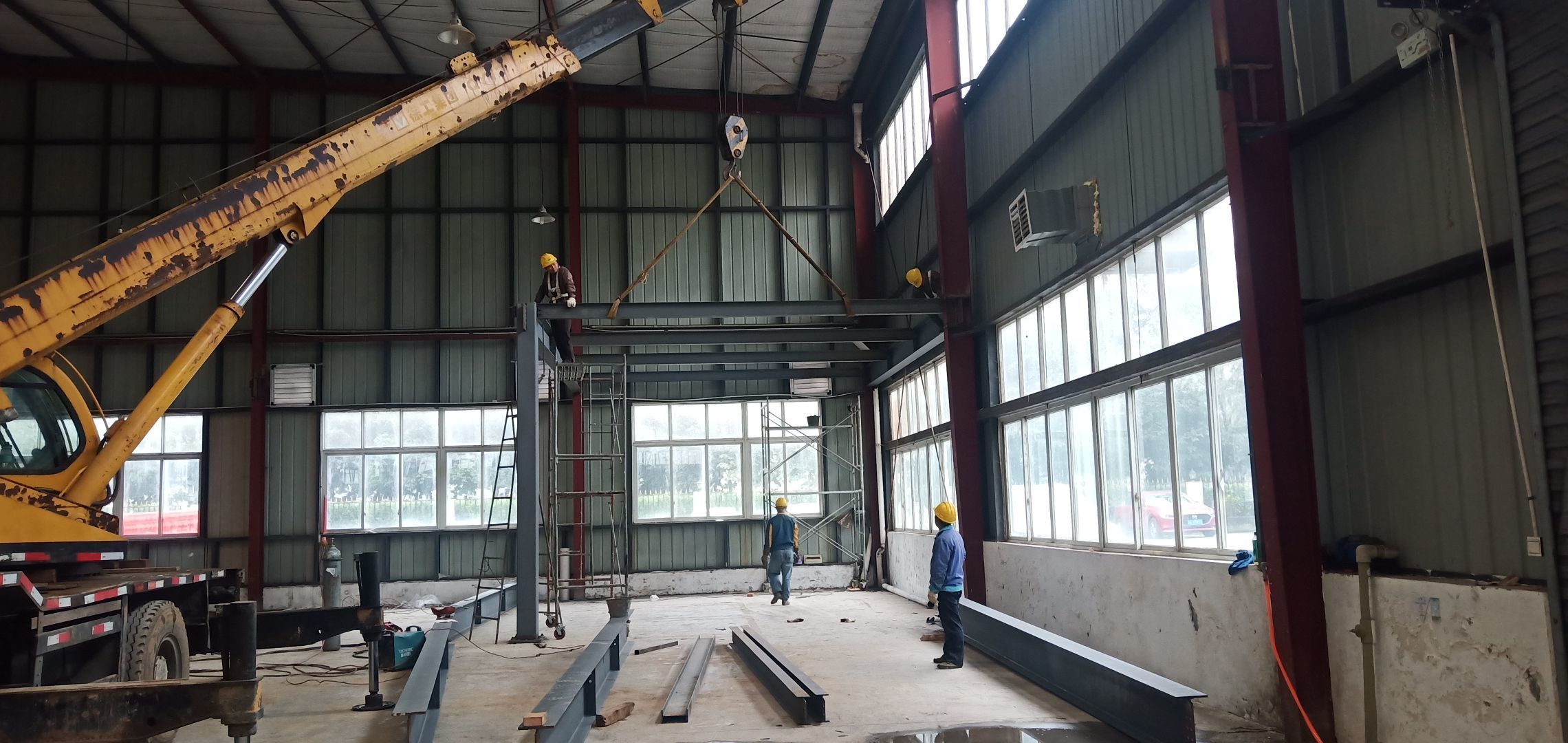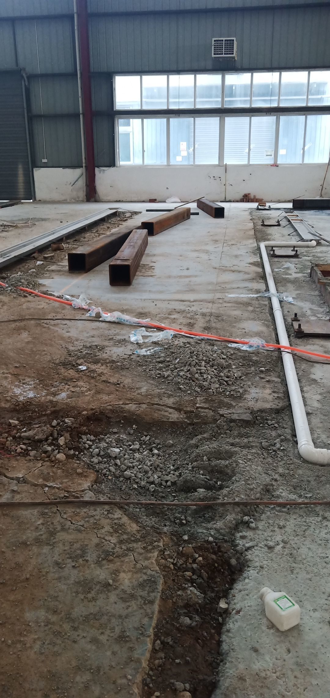 地面找平打點,辦公區槽鋼焊接,角鋼除銹刷防銹漆