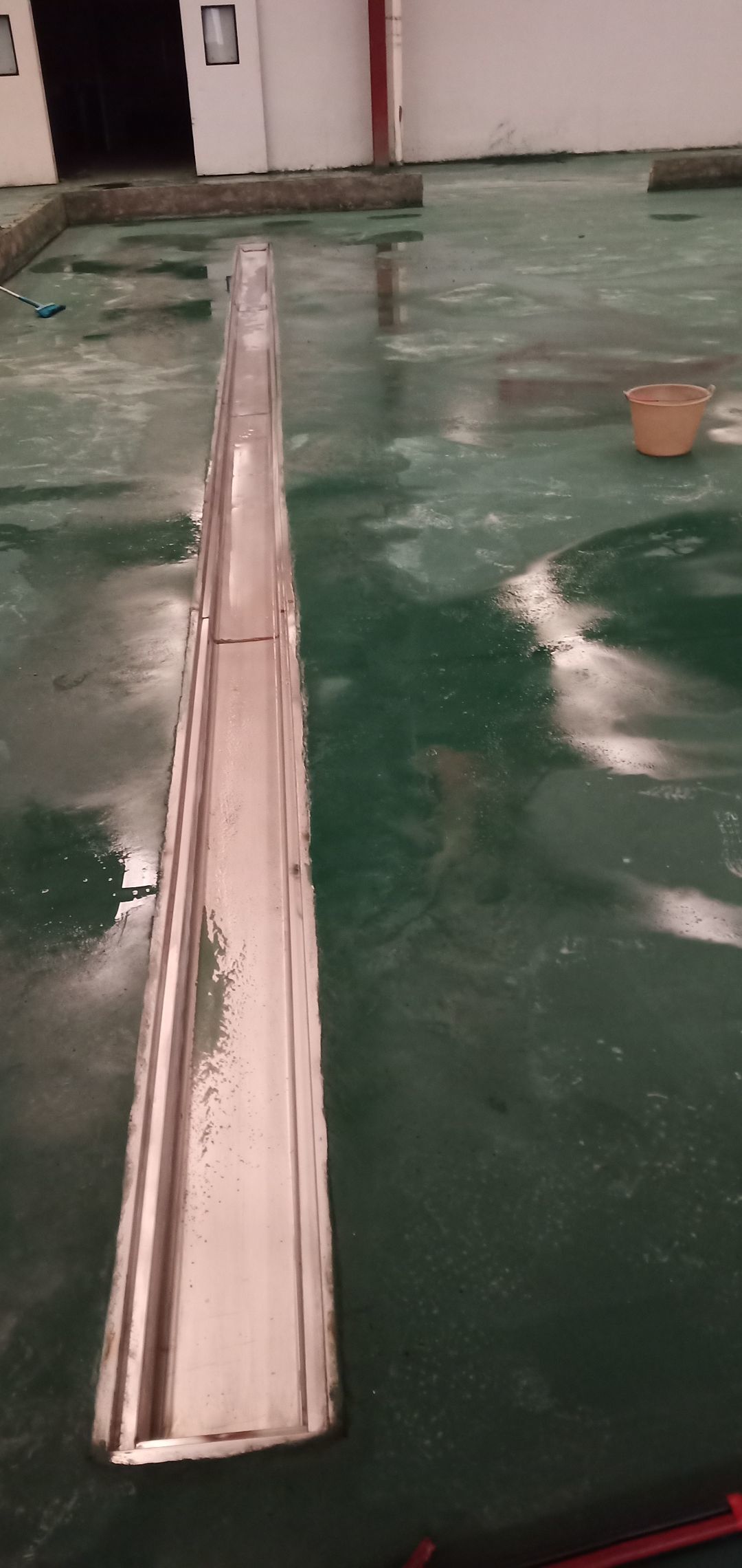 地坪收縮縫切割完成,不銹鋼排水溝清洗完成,地面養護