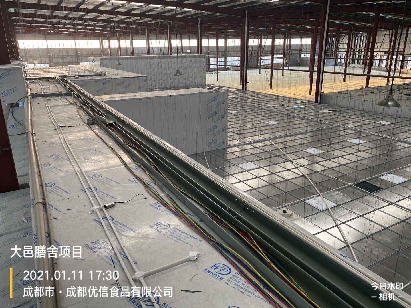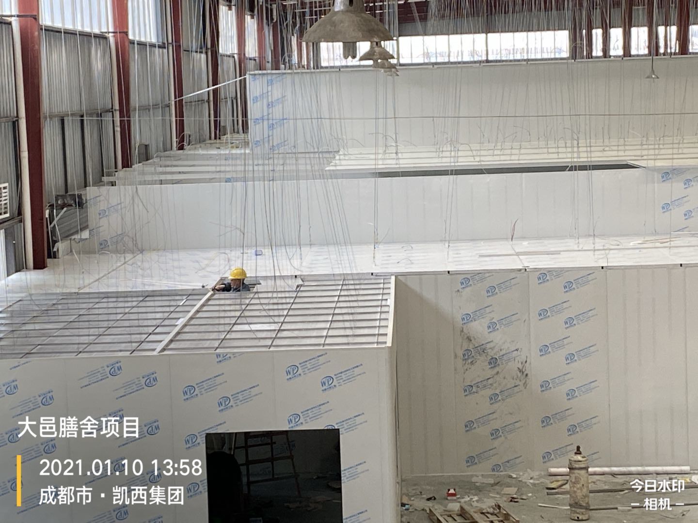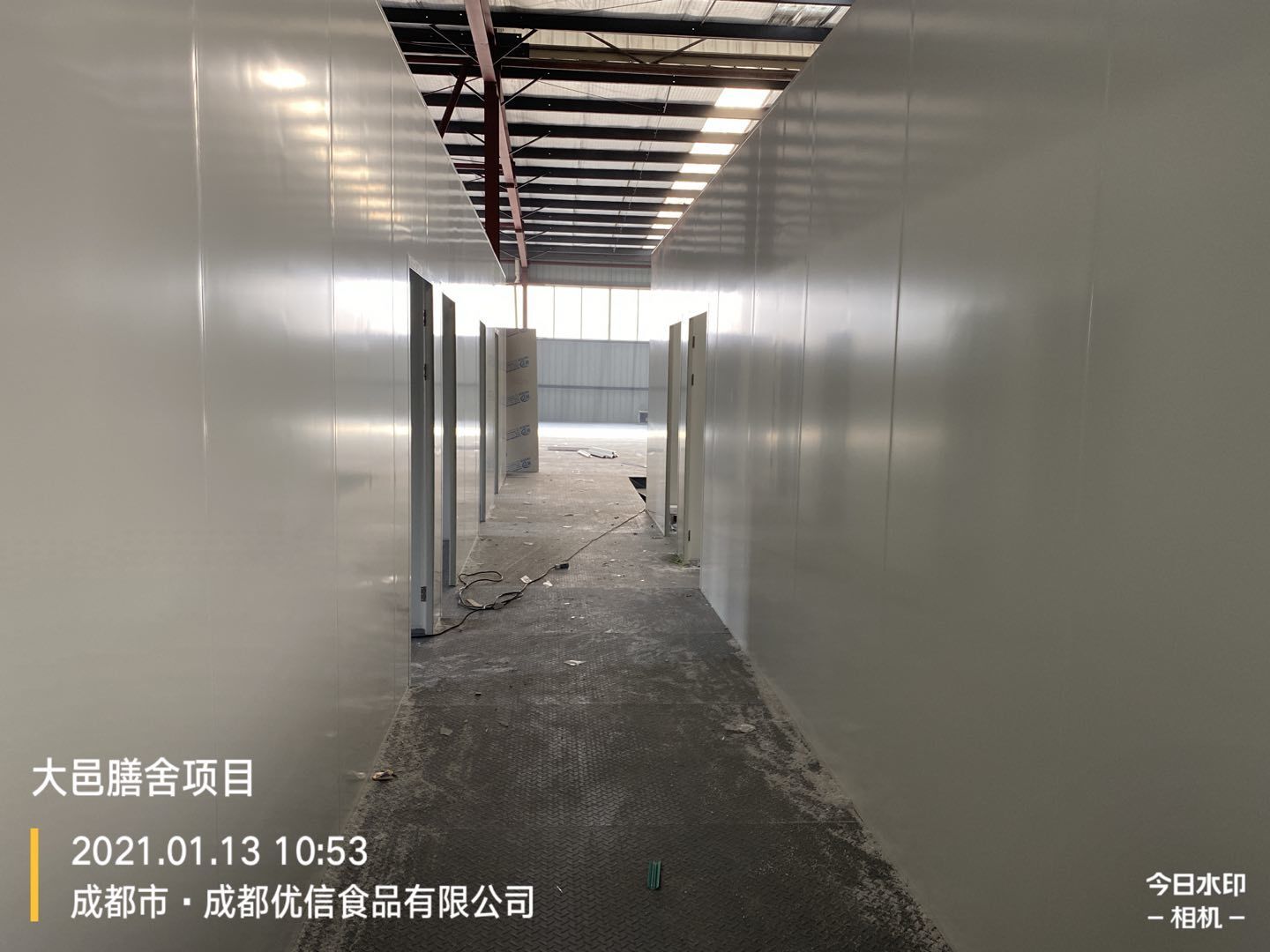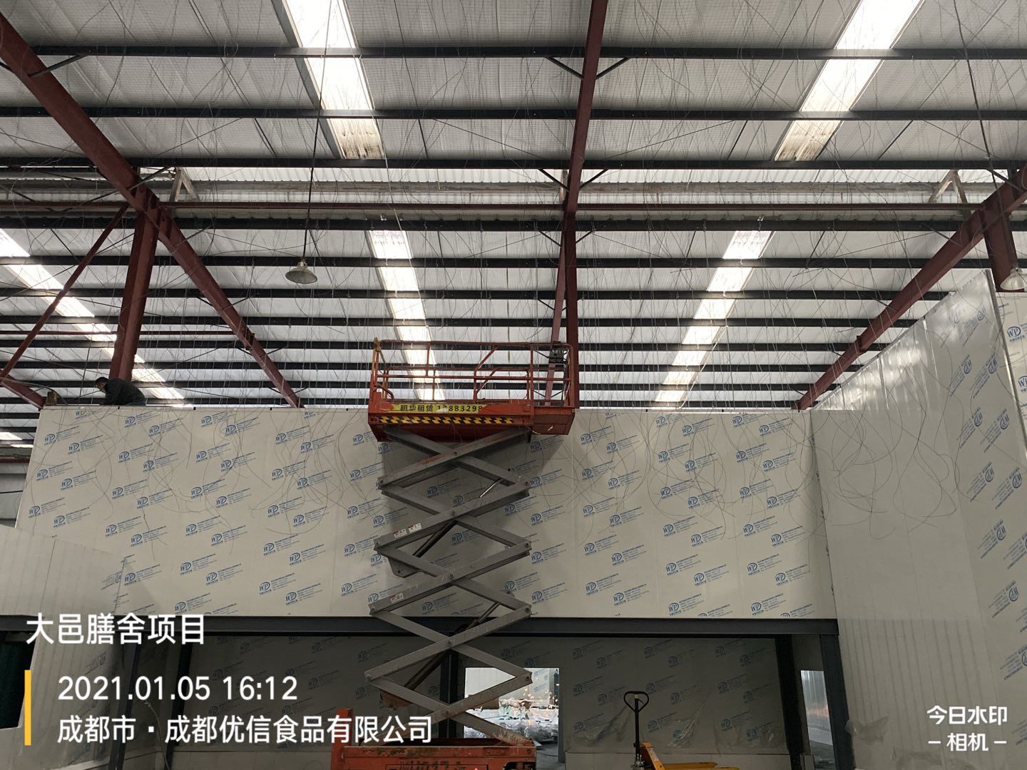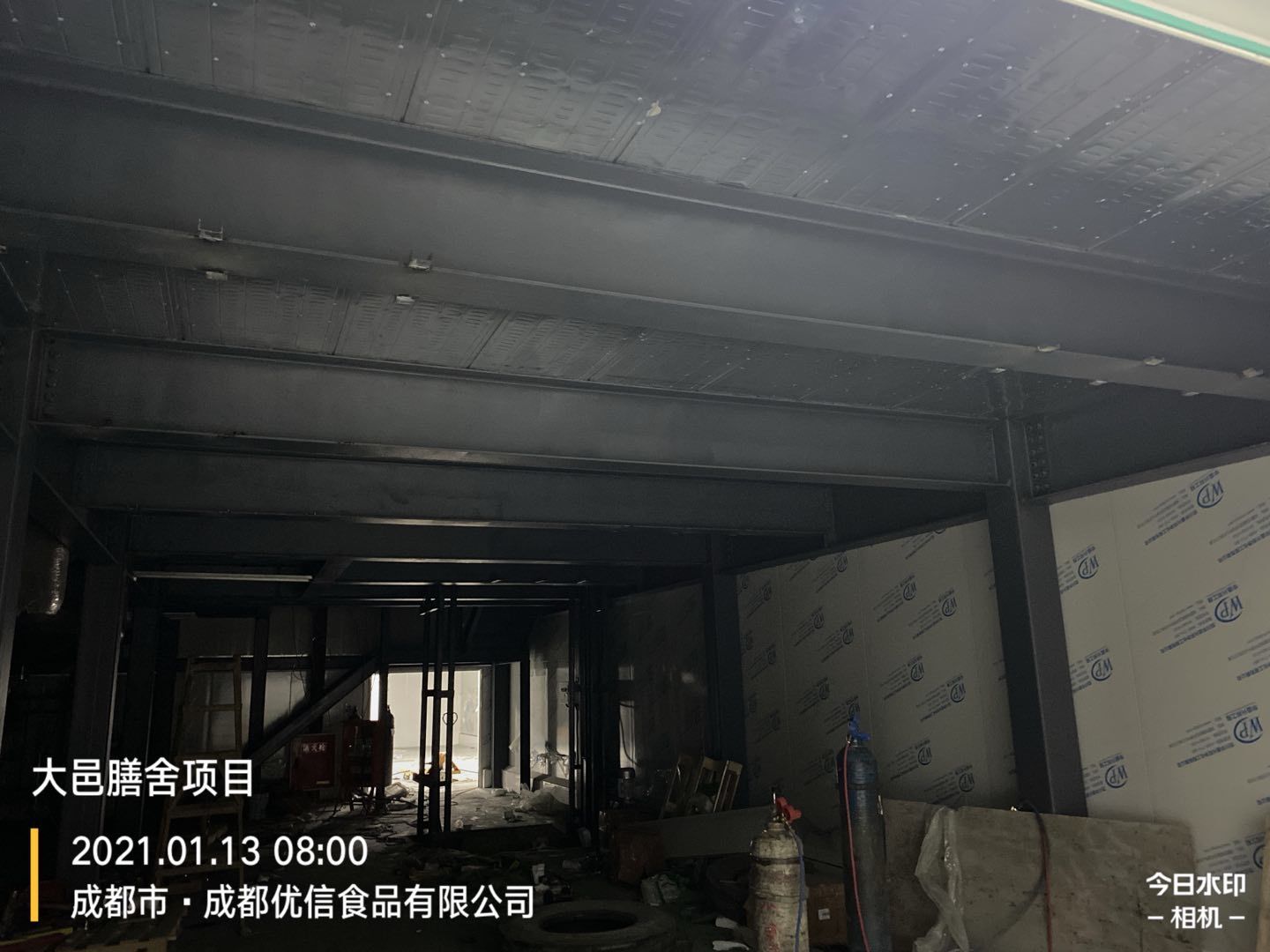 大邑膳舍食品項目:擋水墻貼磚完成90%,花紋鋼板、樓梯板到場,樓梯踏步開始焊接,彩鋼墻板立板完成5%。