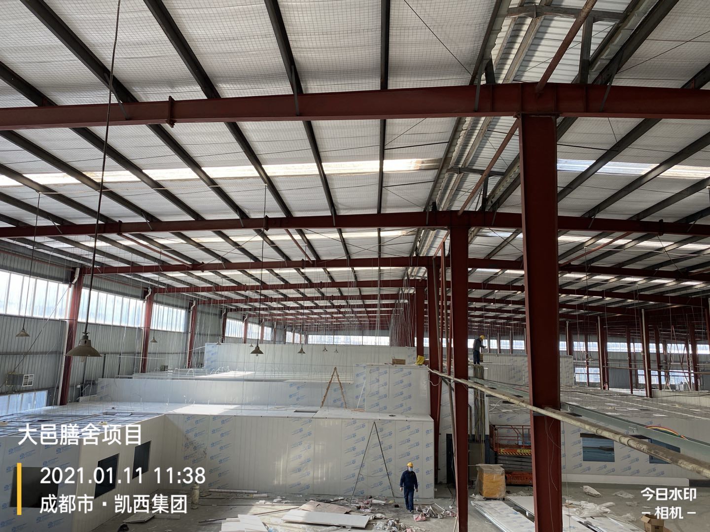 彩鋼墻板完成80%,頂板完成15%,鋼結構完成100%,