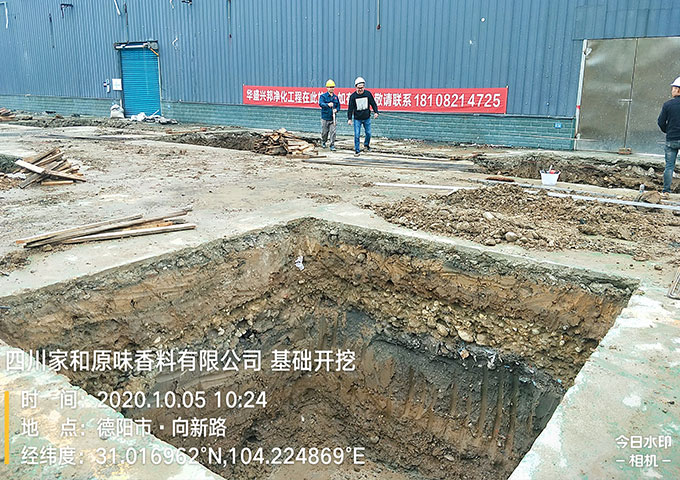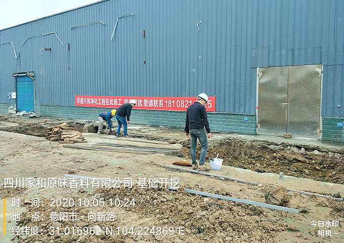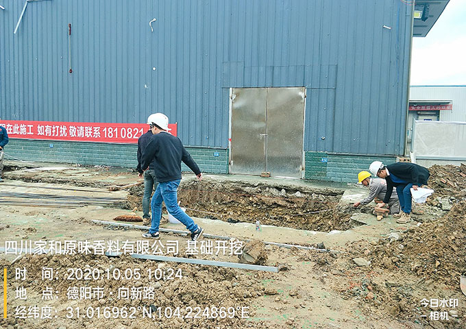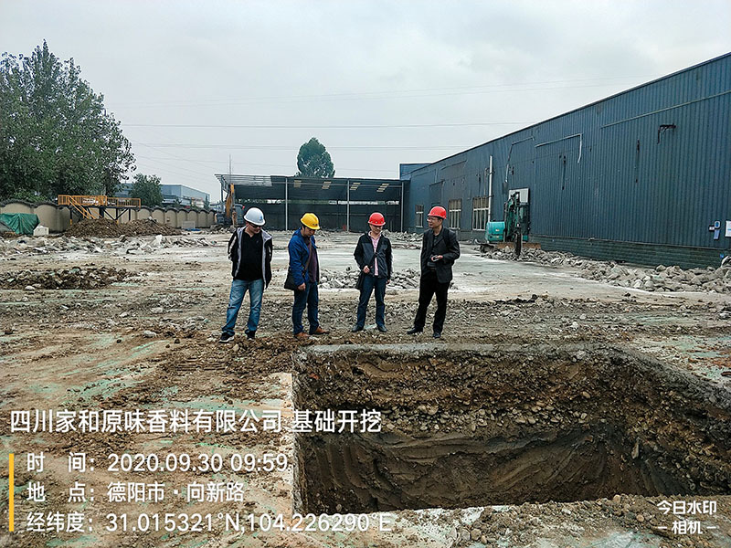 四川家和原味香料有限公司土建廠房施工現(xiàn)場(chǎng),今日工作,基礎(chǔ)開(kāi)挖