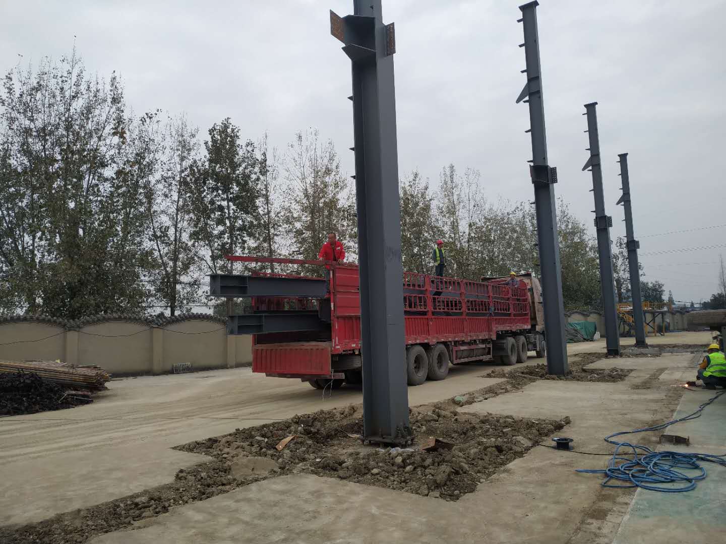 1.鋼構(gòu)材料進(jìn)場(chǎng)90%,2.鋼柱安裝完成95%。