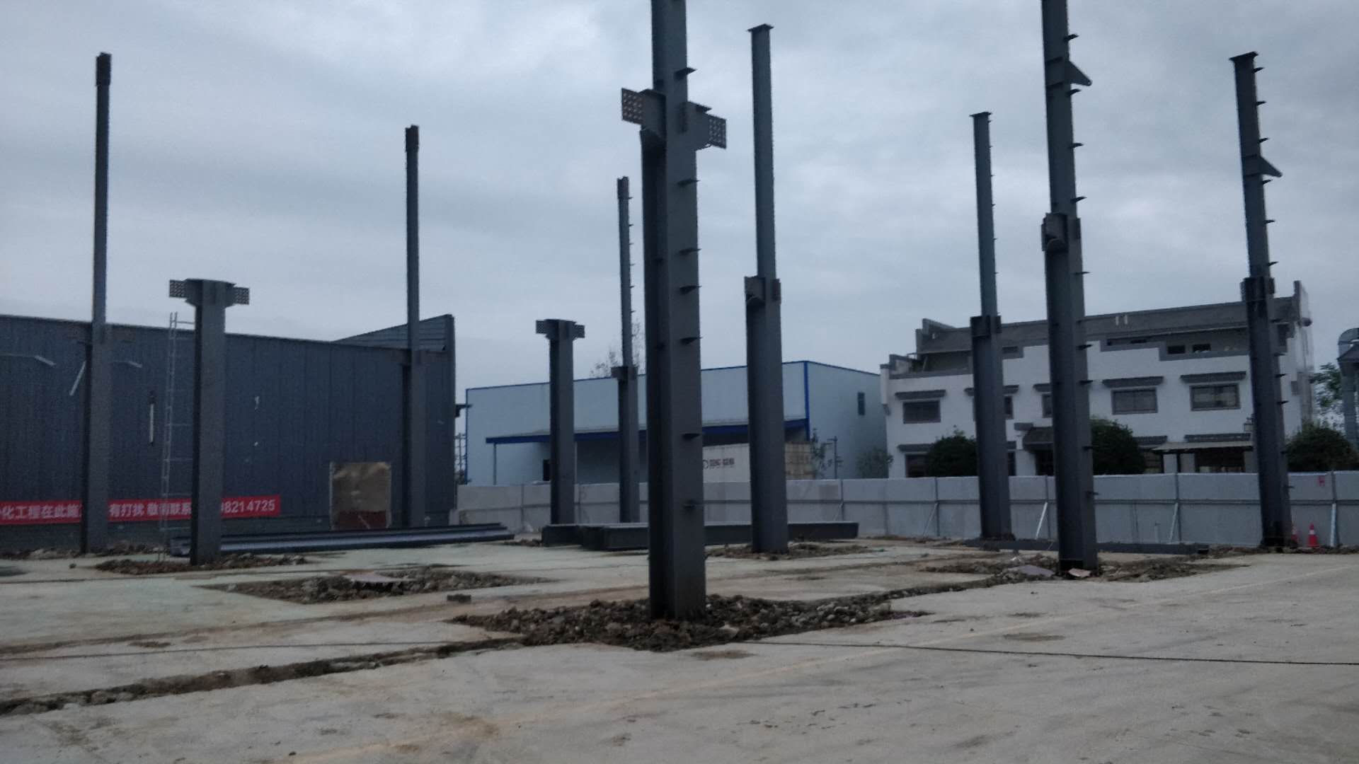 1.鋼構(gòu)廠驗(yàn)廠。2.鋼柱安裝完成10%。