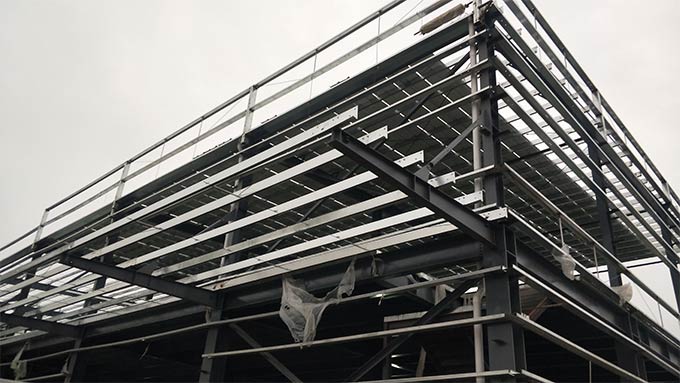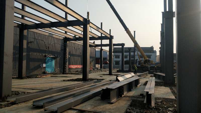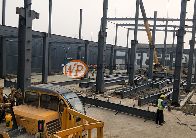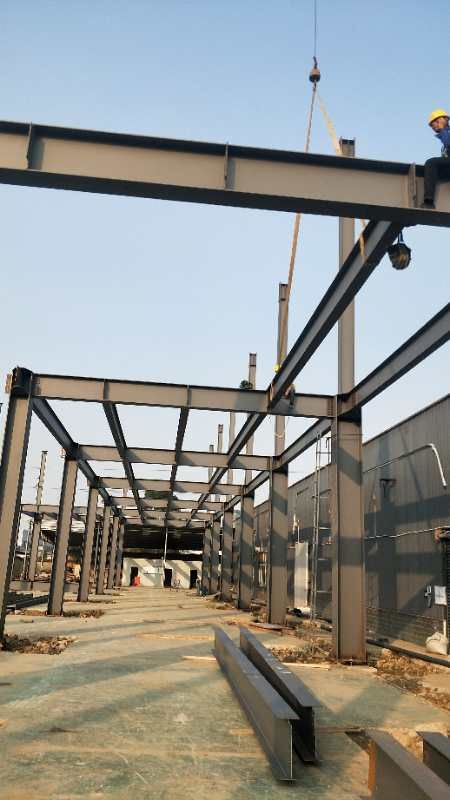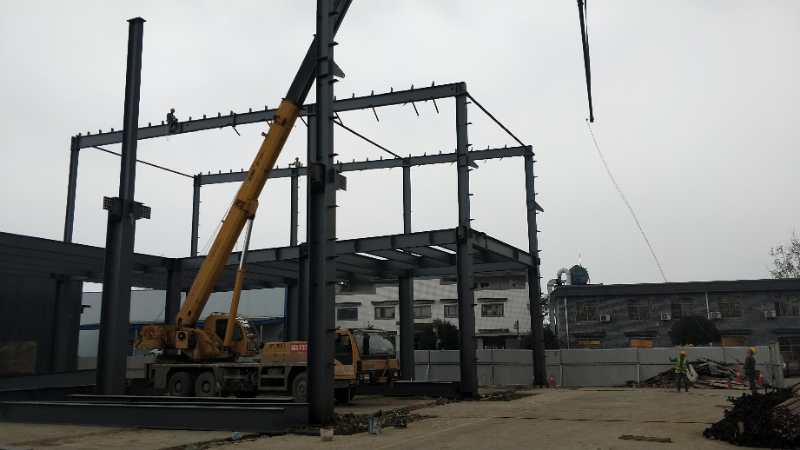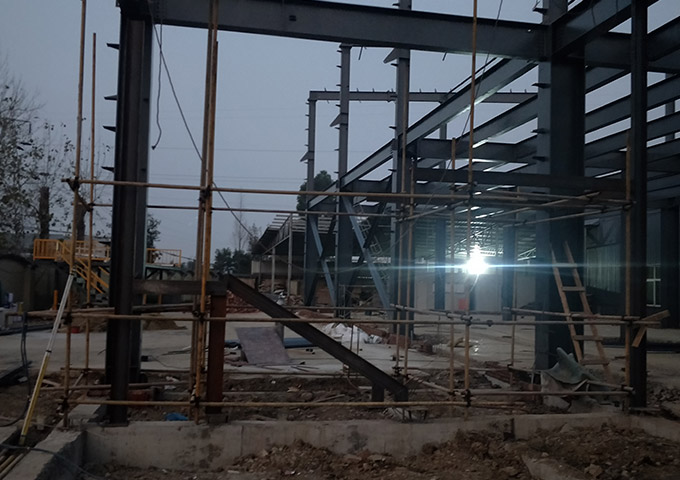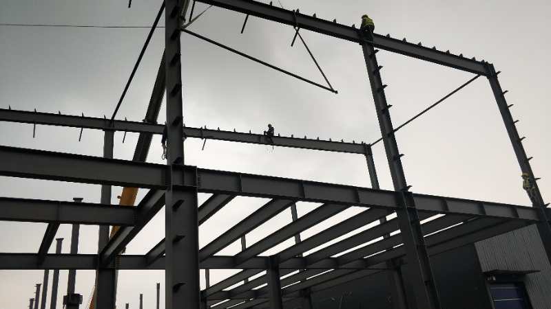 鋼構(gòu)主體結(jié)構(gòu)安裝完成。接下來(lái)整體校正,螺栓終擰,節(jié)點(diǎn)焊接,油漆工作。