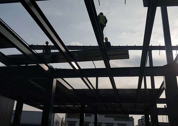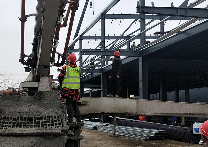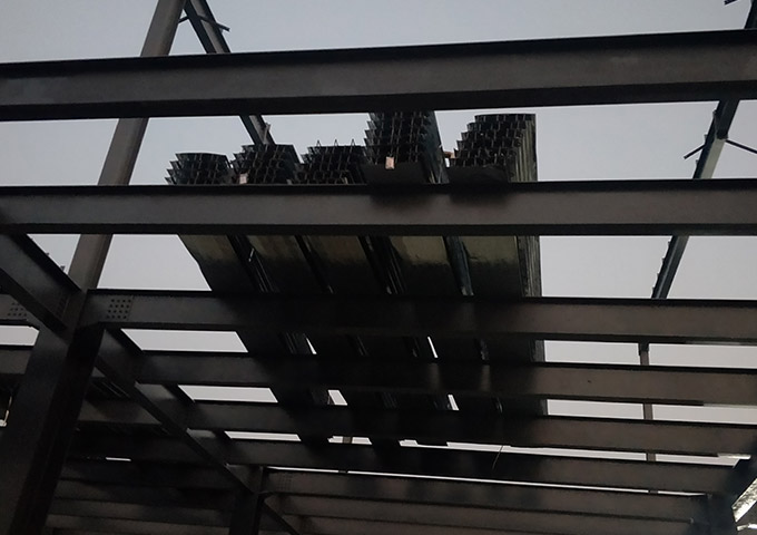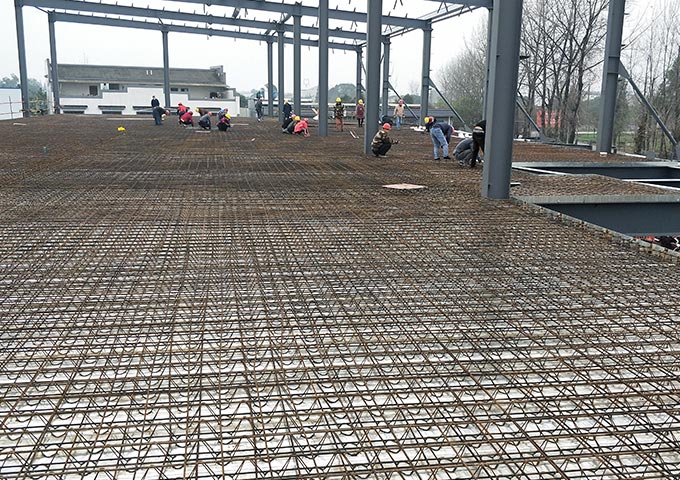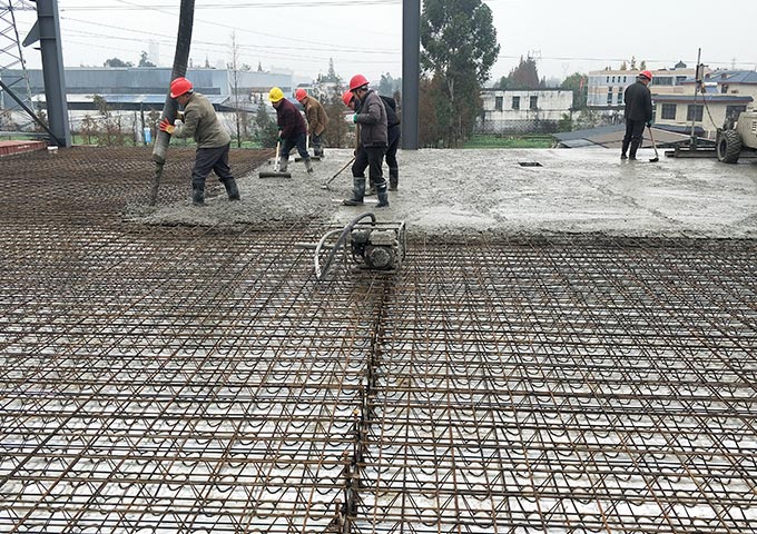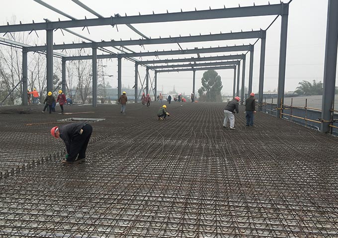 1.二層樓板混凝土完成100%;2.樓板鋼筋綁扎完成100%;3.墻檁條安裝完成20%;4.二樓水電預(yù)埋完成100%;5.二樓金剛砂完成30%